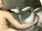 Pastello ovale su cartoncino raffigurante Leda e il cigno, XIX secolo. Cm 85x65. Firmato in basso al centro.