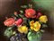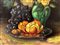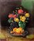 Dipinto ad olio su tela raffigurante natura morta di fiori e frutta, fine XIX...