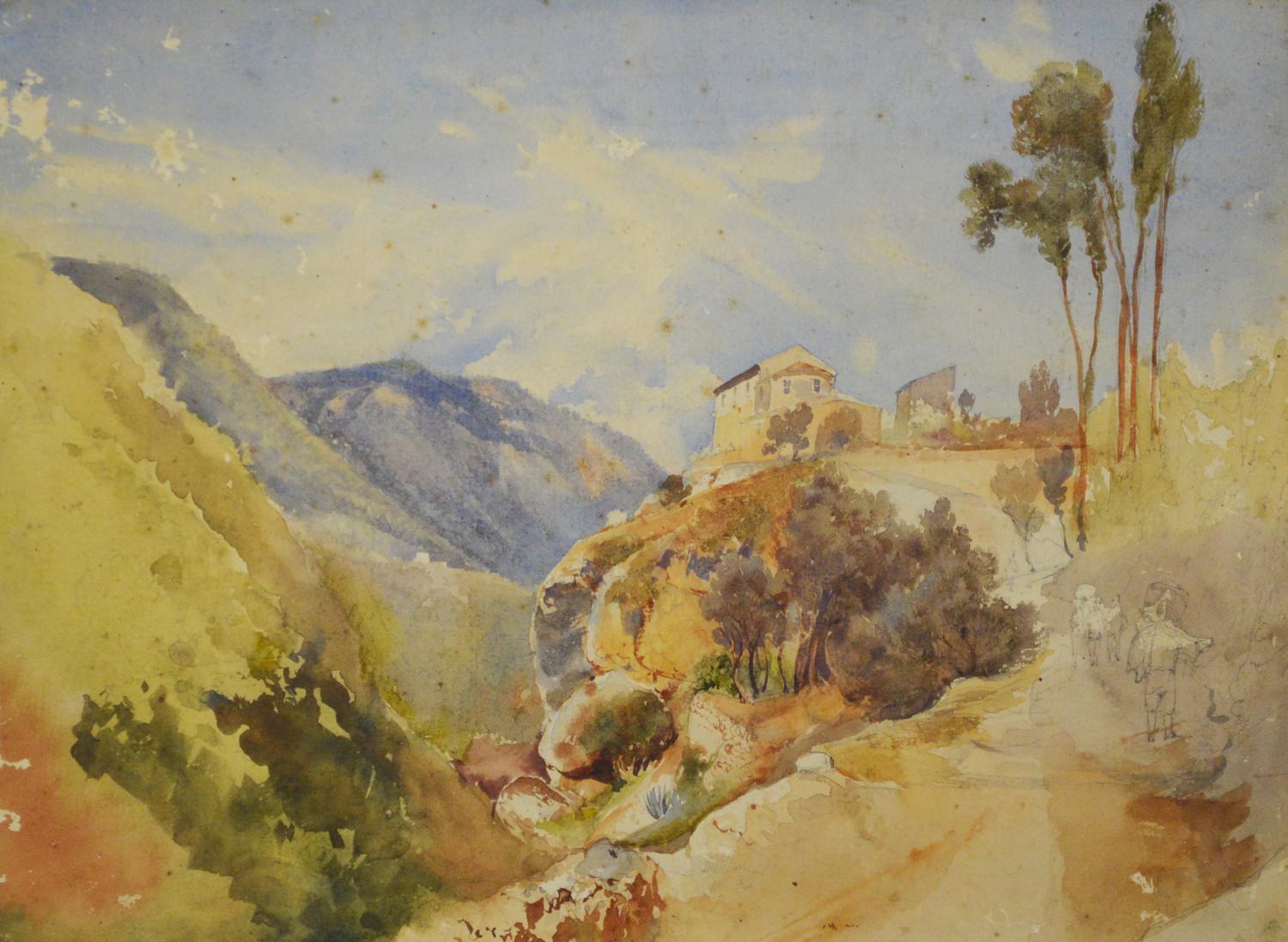 Giacinto Gigante VEDUTA acquerello e gouache su carta applicata su...
