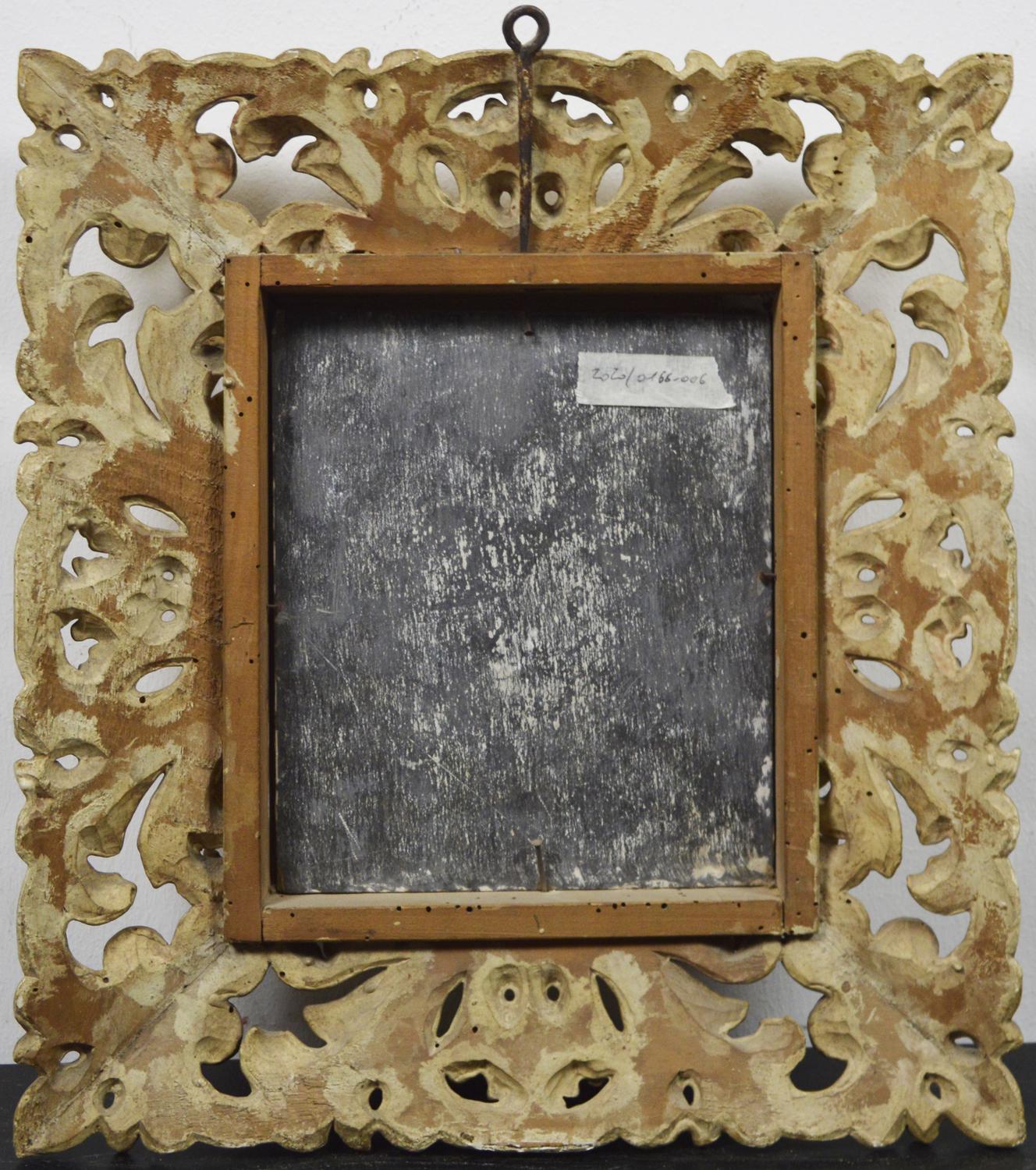 scagliola dipinta, cm 21,5x18 entro cornice coeva, cm 39x36x6