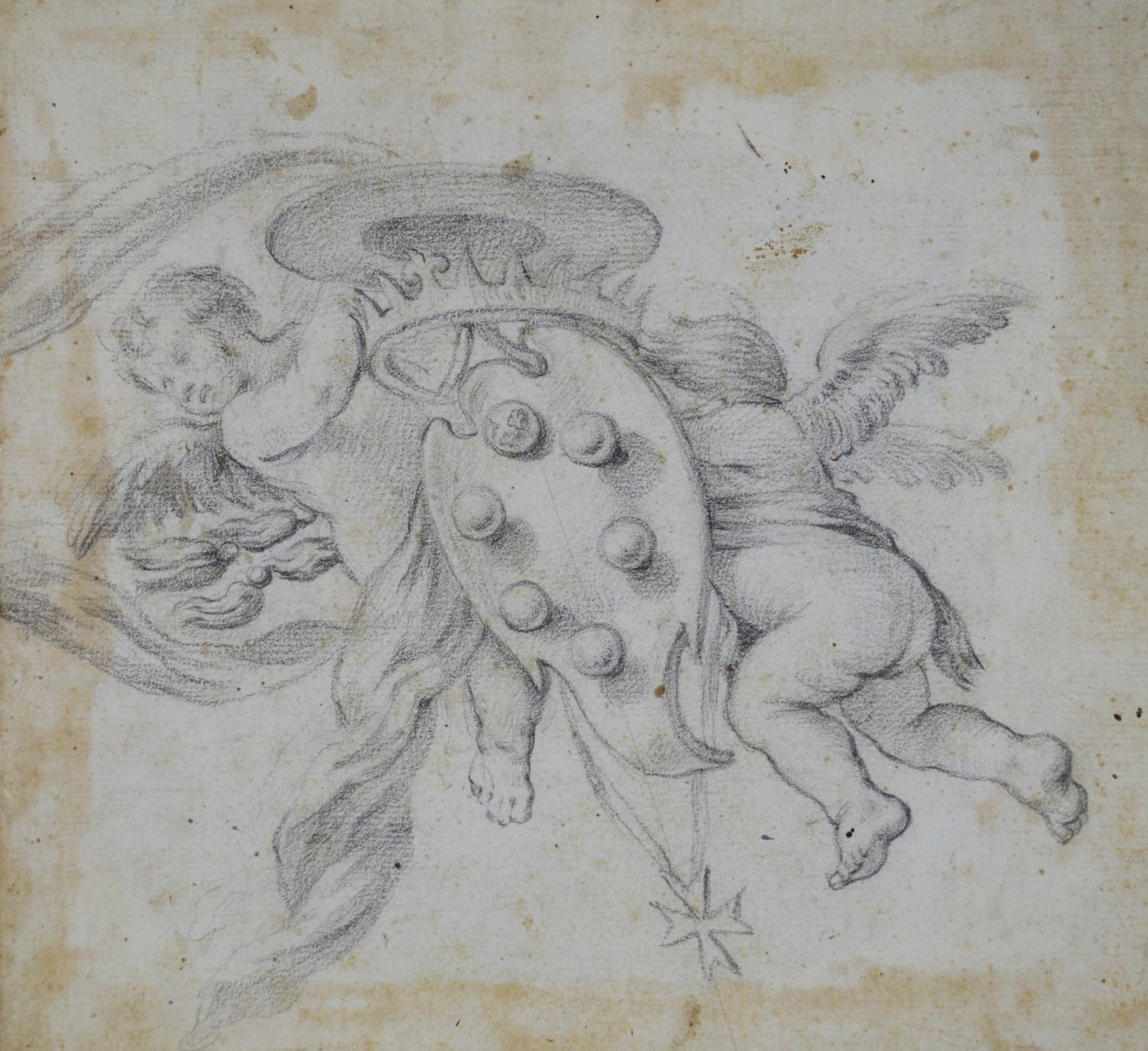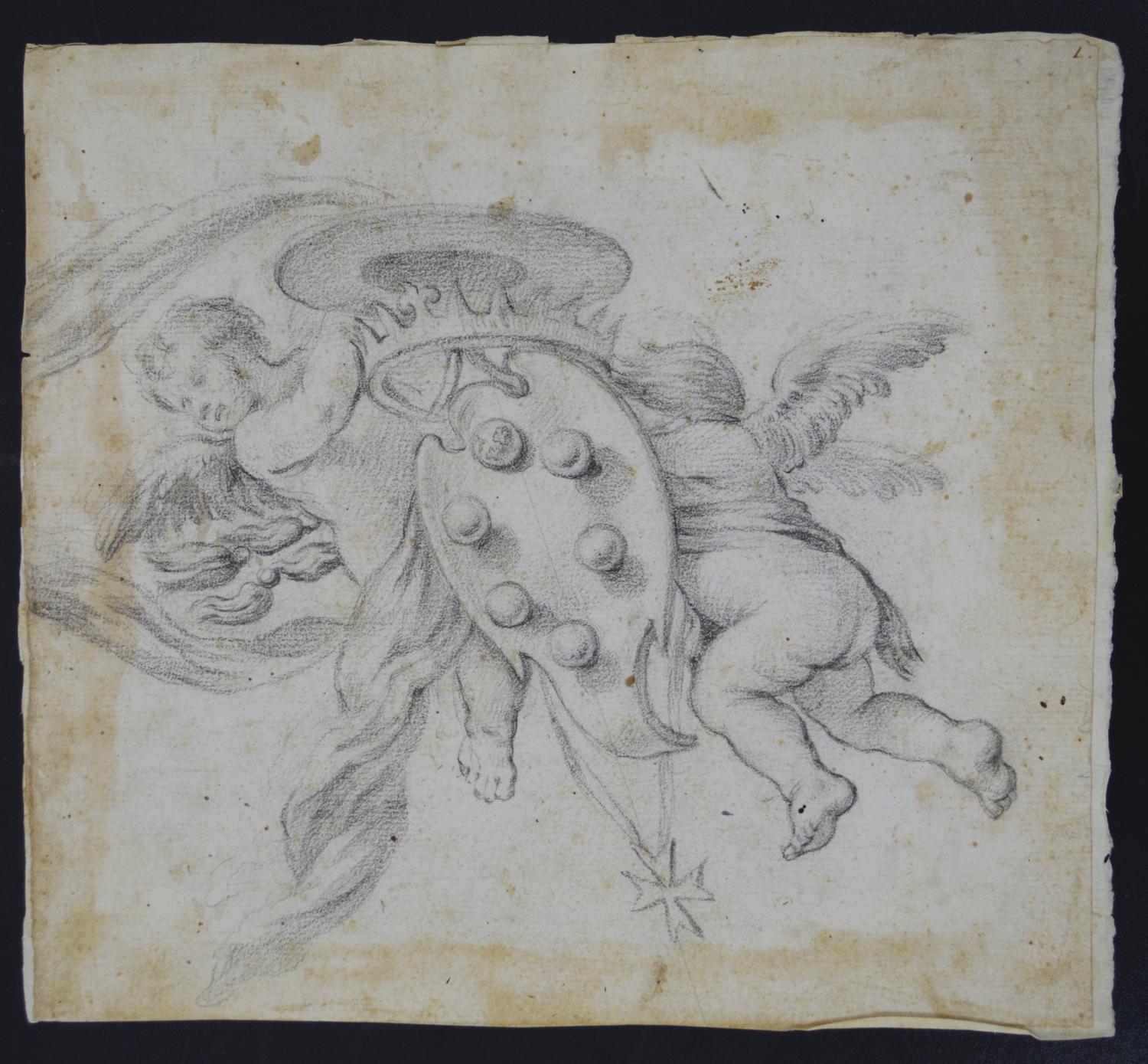 Ambito di Pier Dandini PUTTI CON STEMMA MEDICEO matita su carta, cm 24,5x27