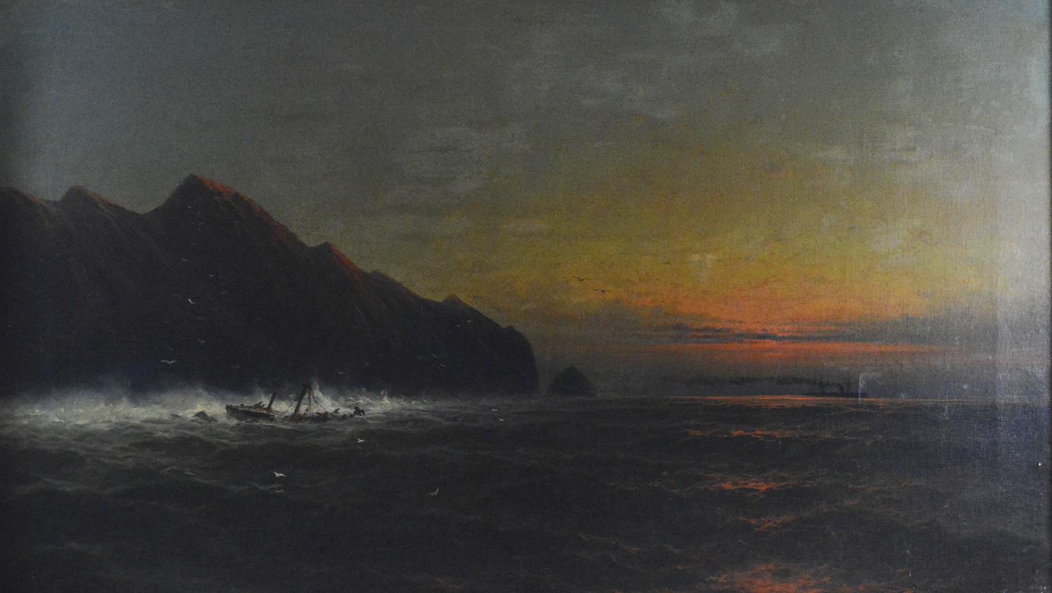 Scuola americana del XIX secolo MARINA olio su tela, cm 61x107...