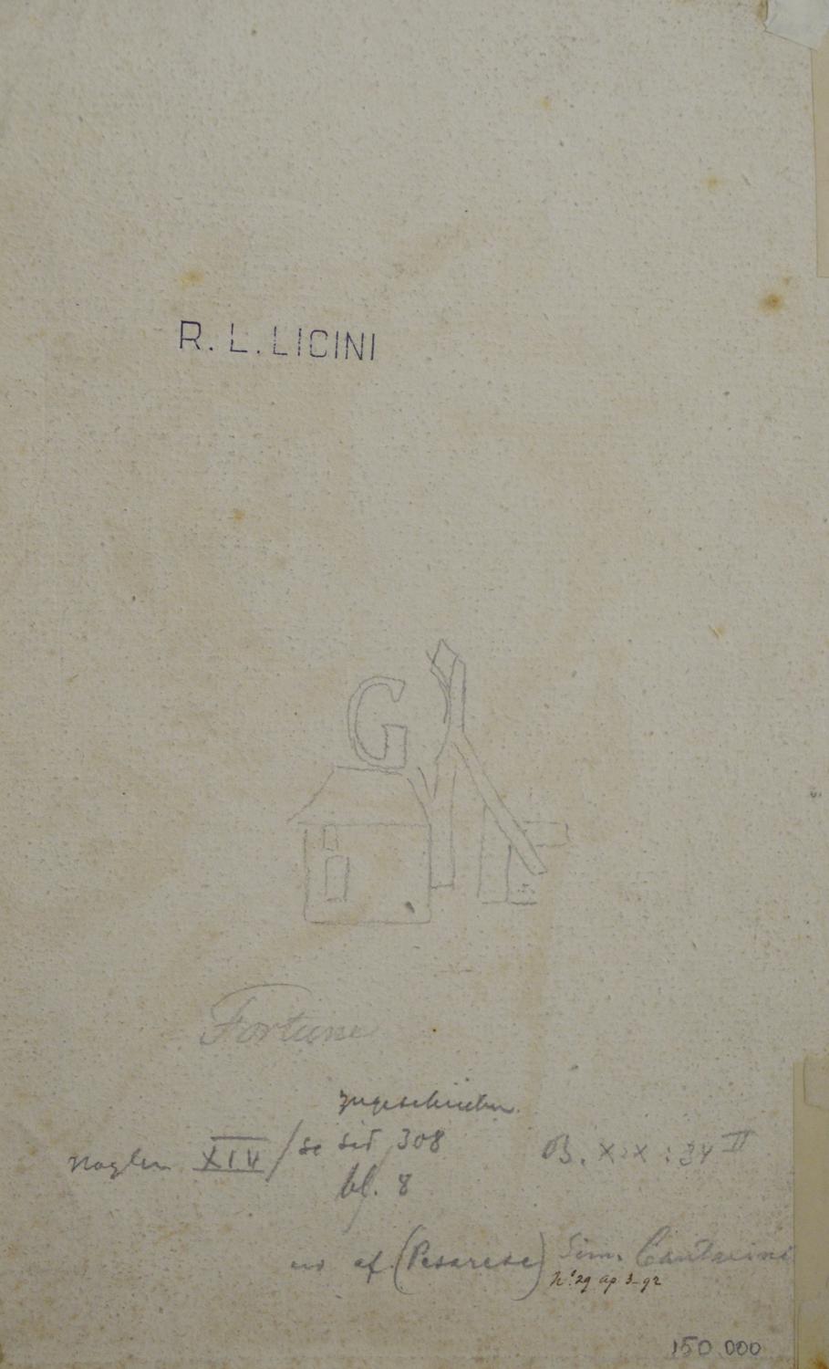 sul retro: disegno e iscrizioni a matita, timbro "R. L. Licini"