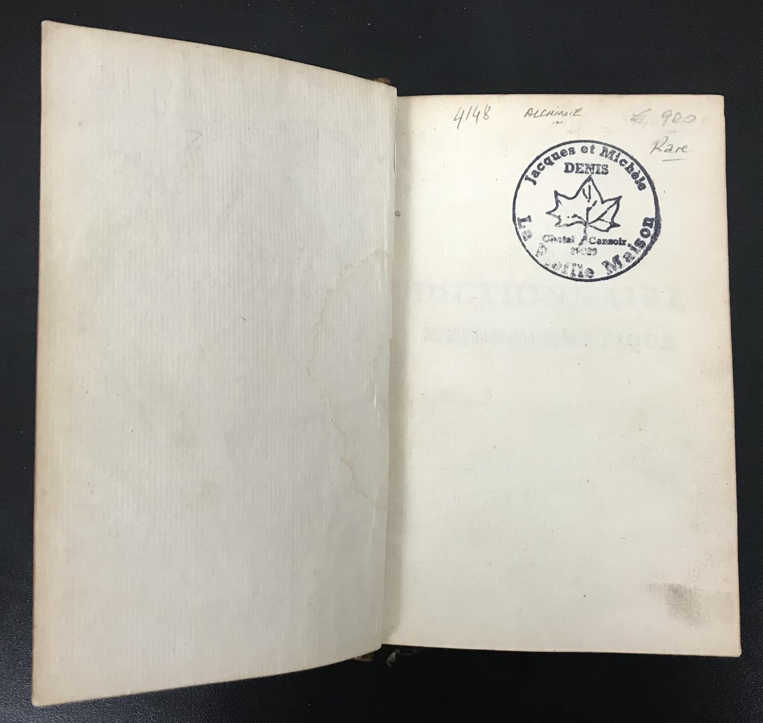 DICTIONNAIRE MYTHO-HERMéTIQUE DANS LEQUEL ON TROUVE LES ALLéGORIES FABULEUSES DES POèTES, LES MéTAPHORES, LES éNIGMES ET LES TERMES BARBARES DES PHILOSOPHES HERMéTIQUES EXPLIQUéS. A PARIS, CHEZ DELALAIN, 1787