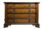 Eccezionale cassettone, provenienza Lombardia, bottega Caniana, metà XVIII secolo, attribuito a Giovan Battista Caniana. Intagliato ed intarsiato in legni chiari di acero e legni scuri di palissandro, raffigurazione di personaggi, angeli, animali e decorazioni floreali a larghe foglie. Quattro cassetti, piedi a mensola. Sul fronte formelle intarsiate raffiguranti personaggi, scene di caccia, volute vegetali e motivi zoomorfi, sotto il bordo del piano, profilo a dentelli. Base dei cassetti sottolineata con intagli a motivi di foglie d'acanto.