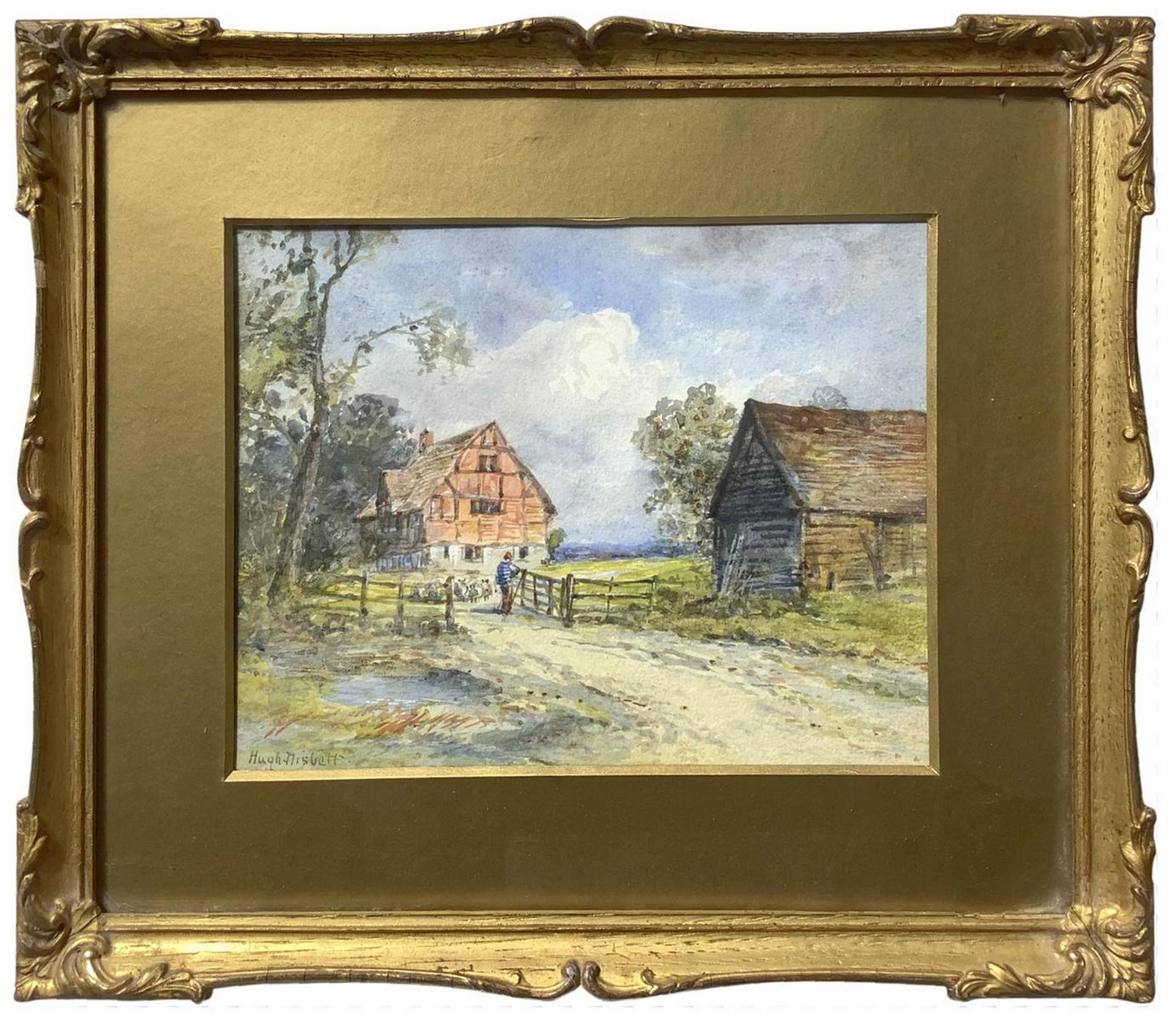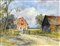 Gouache raffigurante case di campagna nei pressi di Brockham Surry, inizi XX secolo, Hugh Nisbet (1879 -1961). Cm 17x22. Firmata in basso a sinistra.