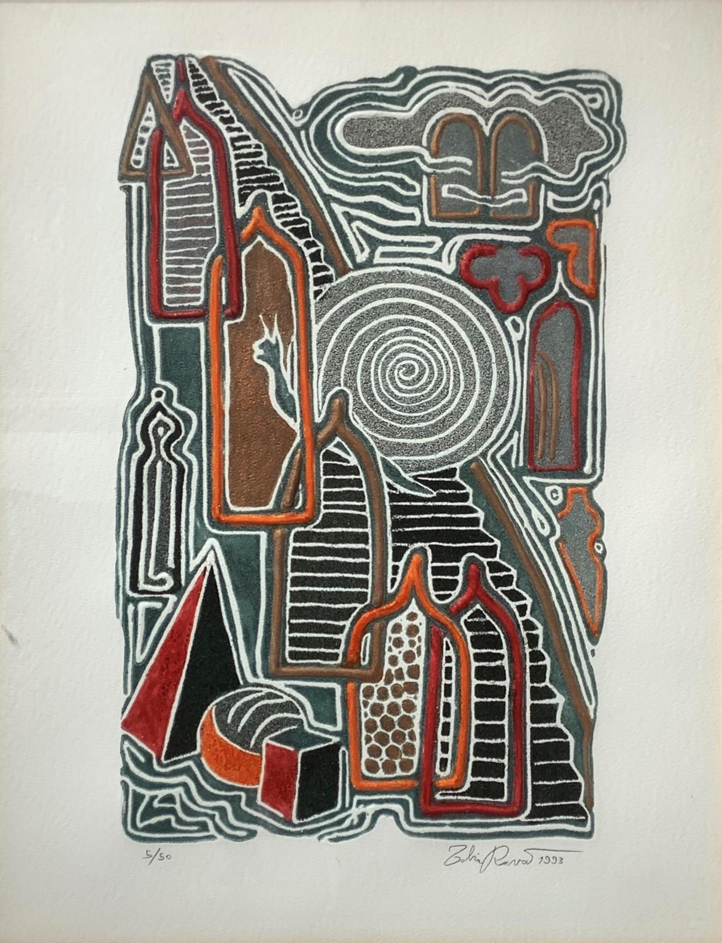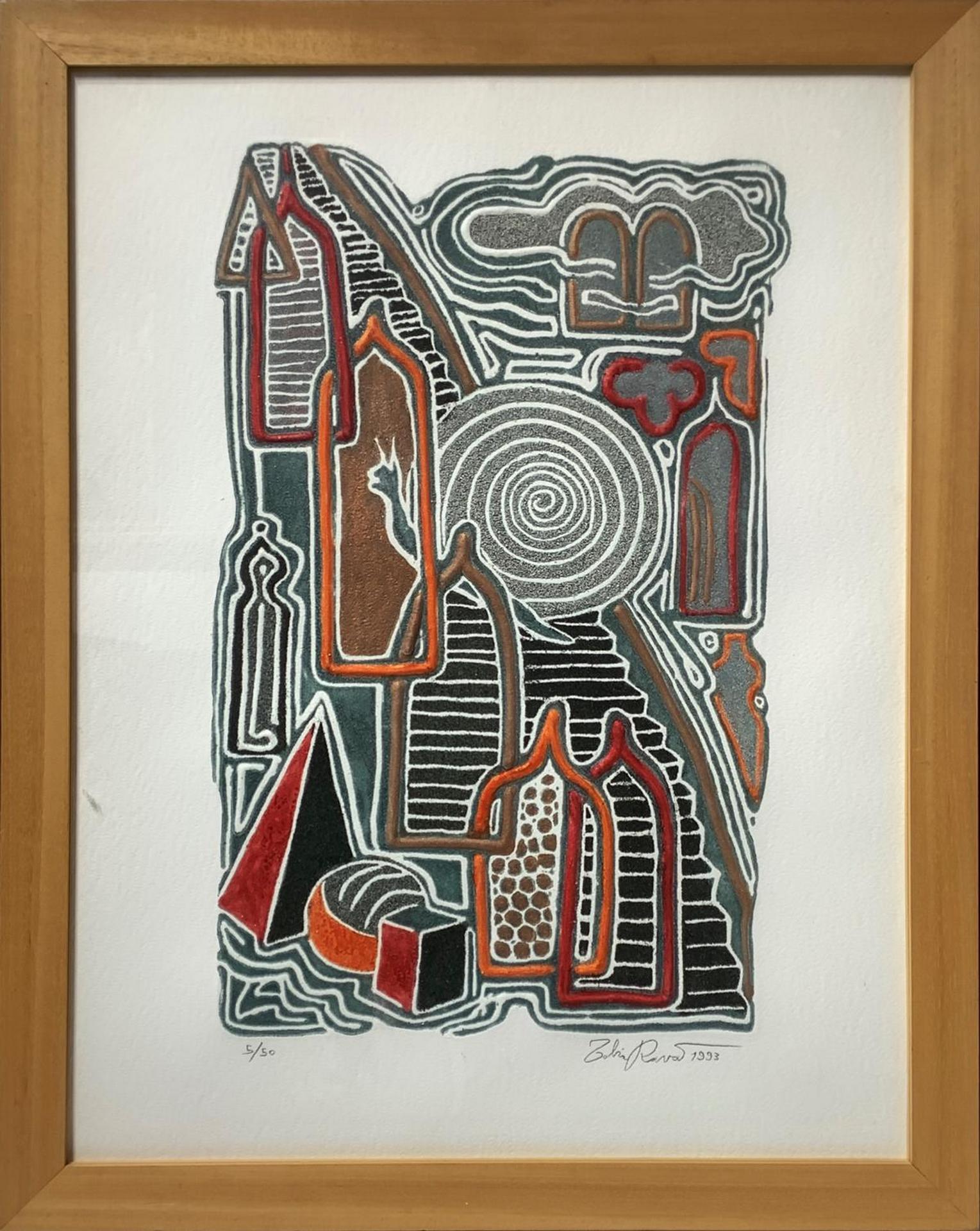 Resinografia multiplo 5/50 e datato 1933 raffigurante “Lentamente verso l’altoâ€_x009d_, firmato in basso a destra Tobia Ravà (Padova 1959). cm 73,5x55,5, in cornice cm 83x64