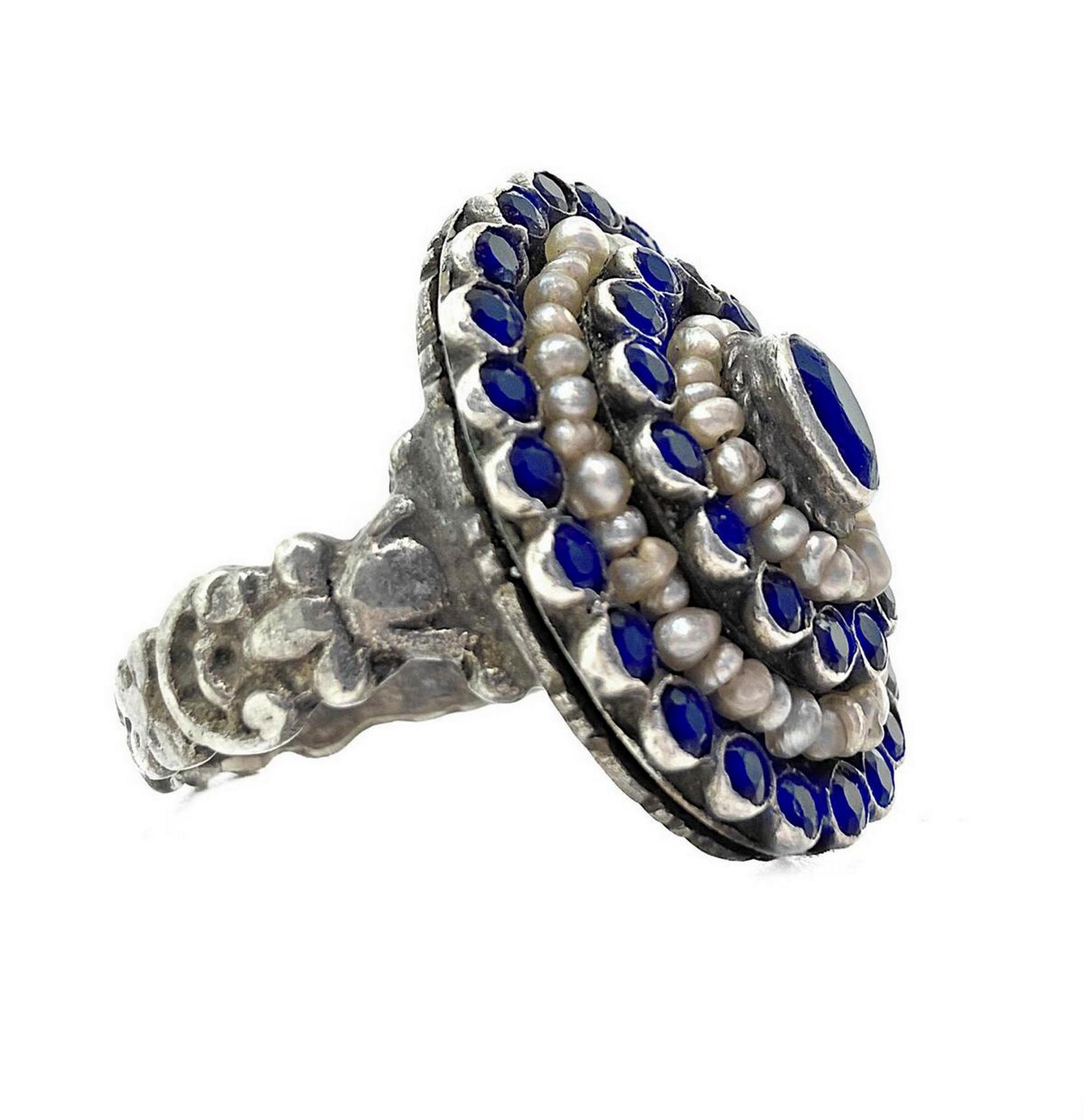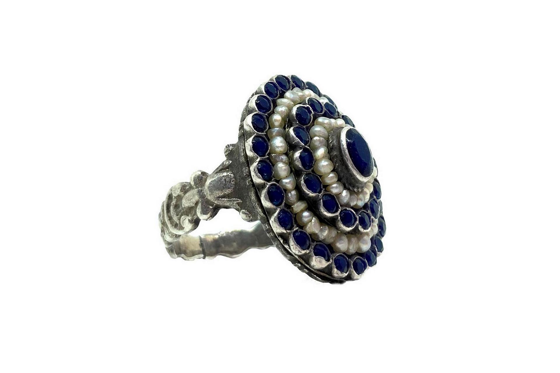 anello in argento con perline e antraciti