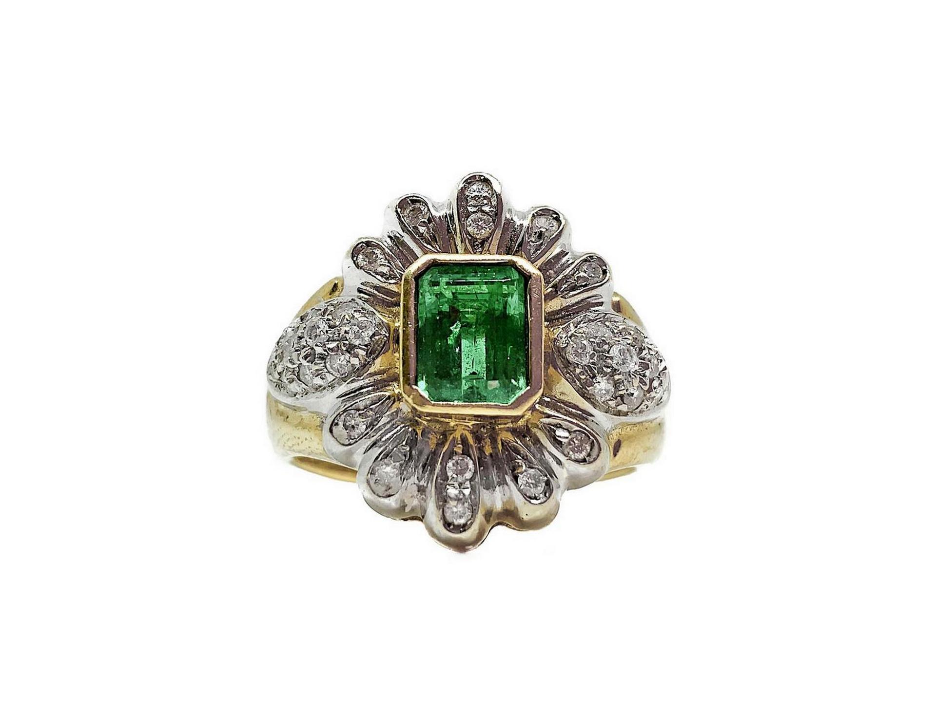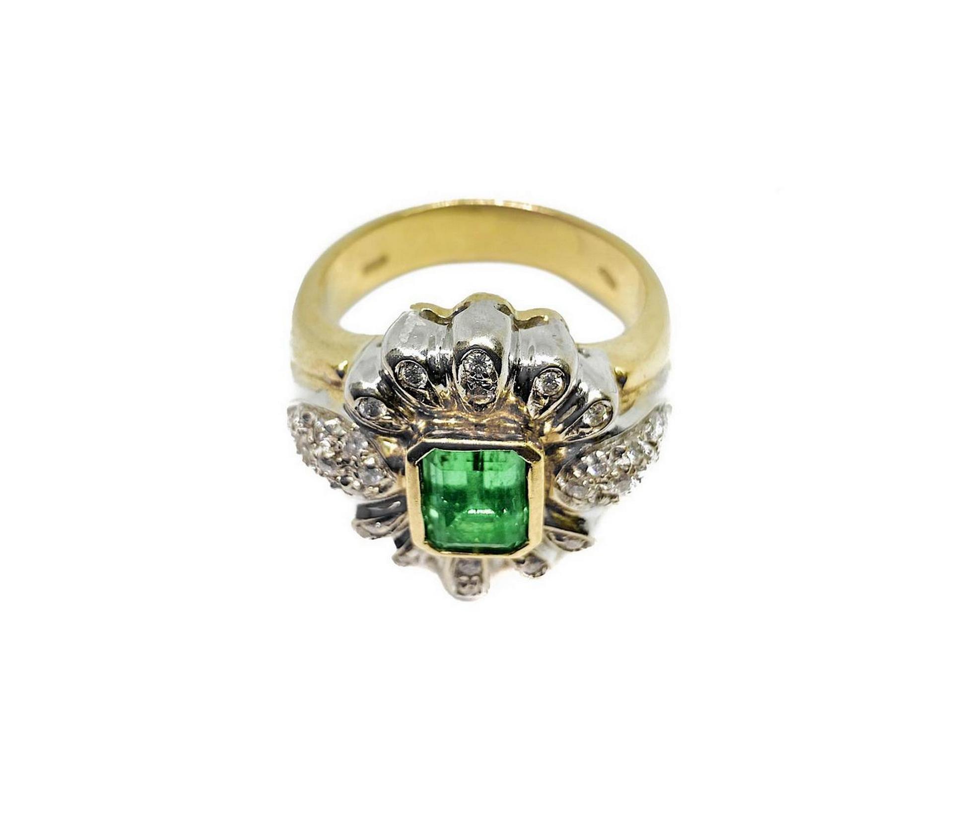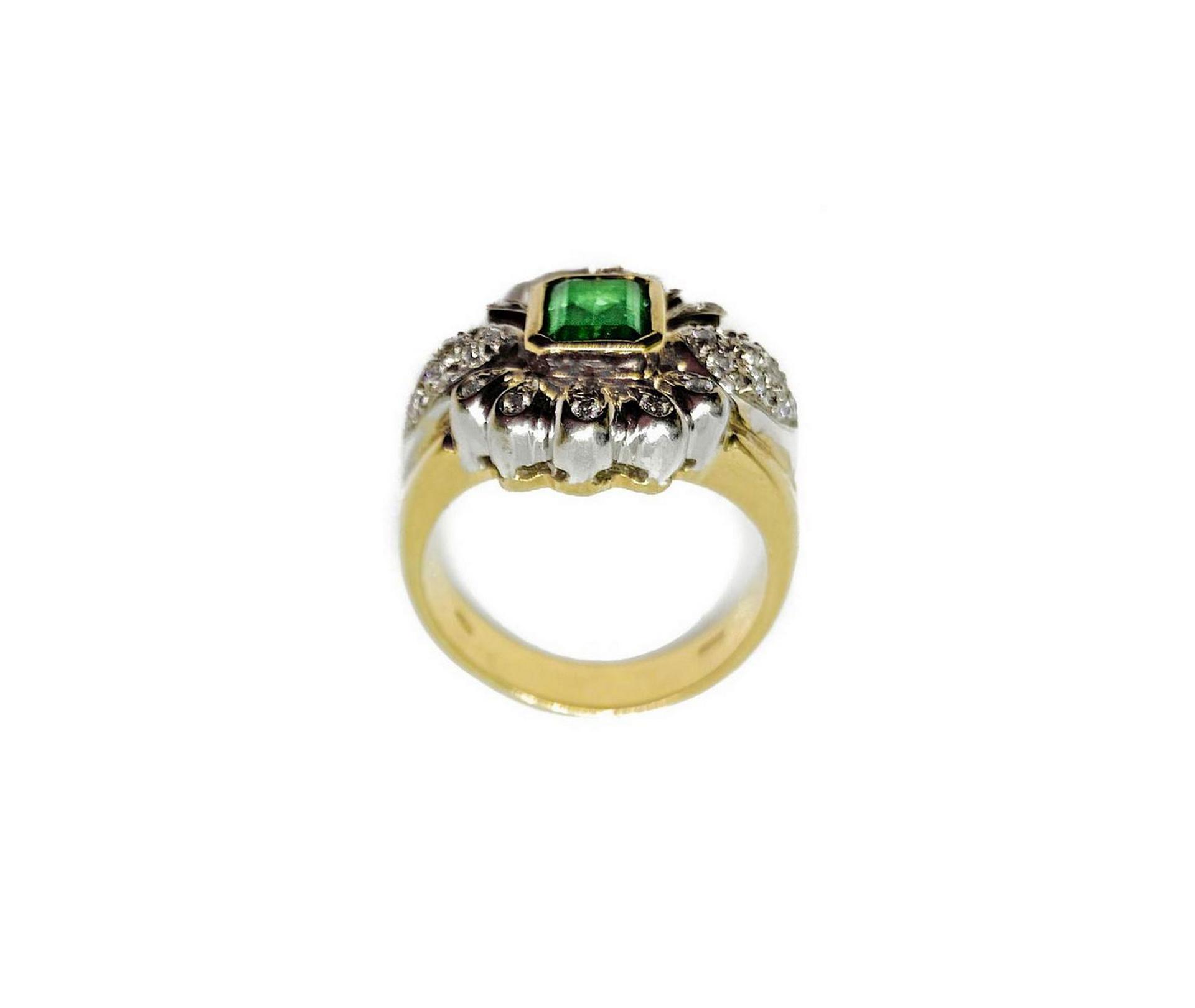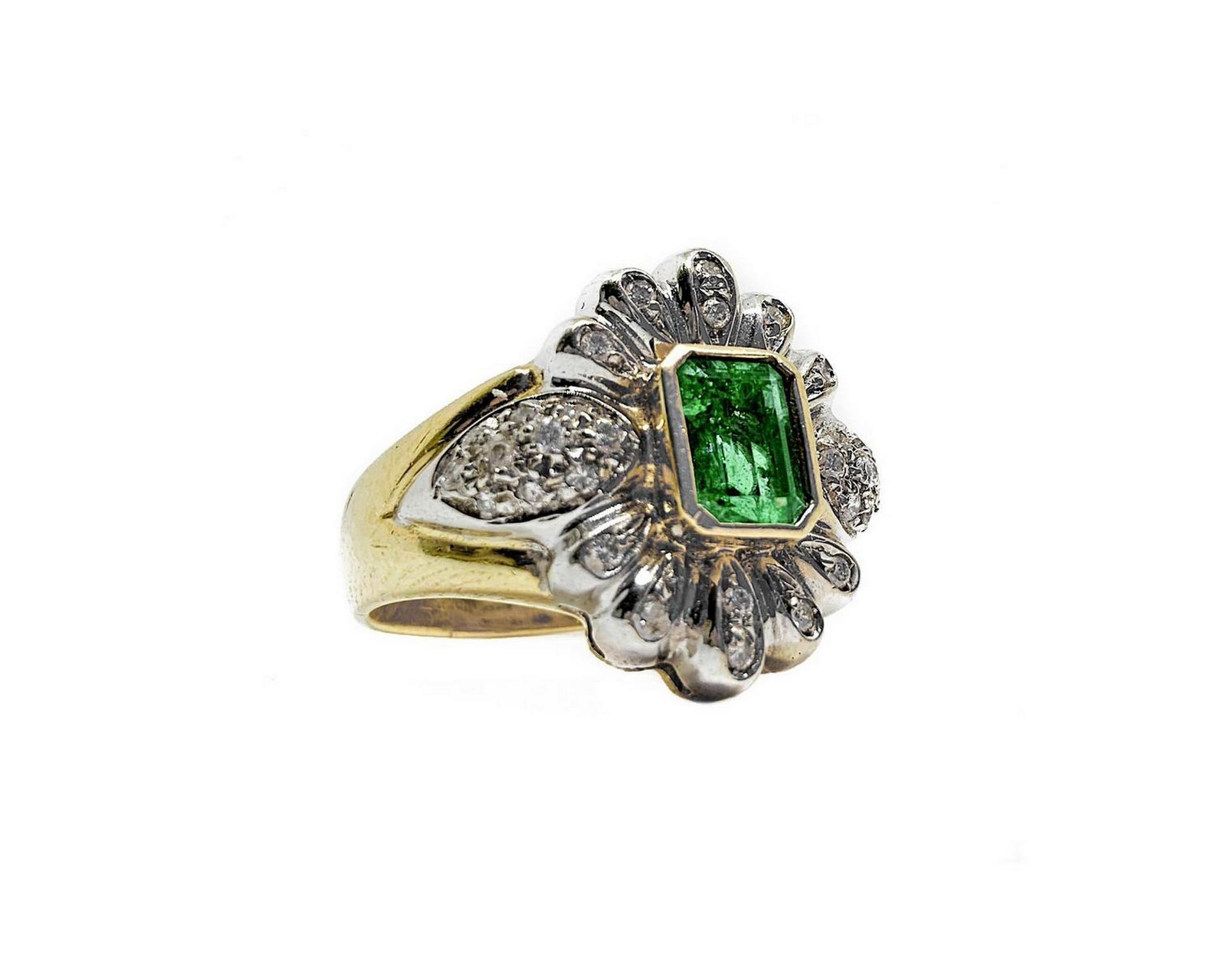 Lotto 331 | Anello in oro giallo, brillanti e smeraldi. Brillanti kt 1,10, smeraldi kt...