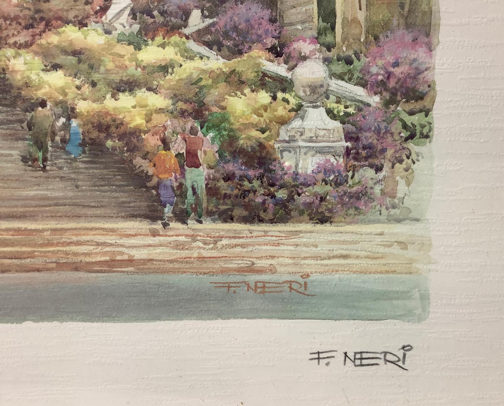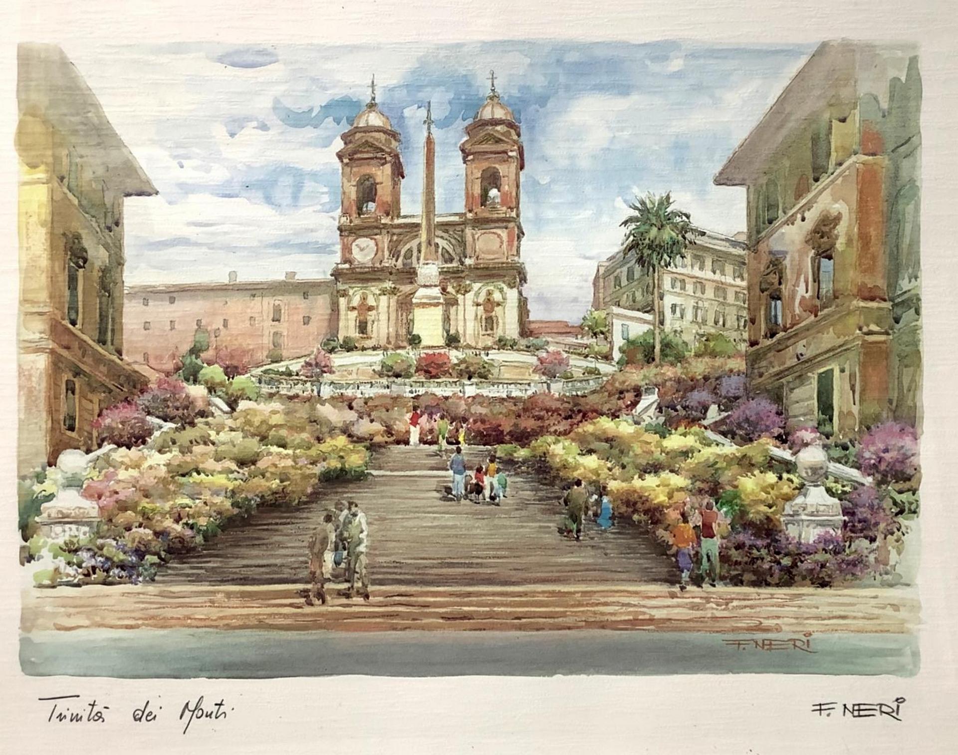 Stampa raffigurante Trinità dei Monti. Firmato in basso a destra F. Neri. Cm 35x50