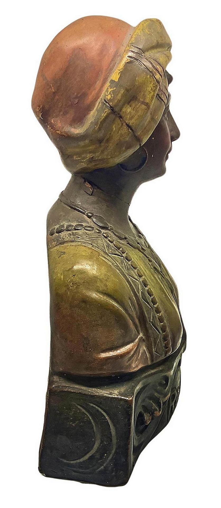 Mezzo Busto in terracotta policroma raffigurante “Rebeccaâ€_x009d_, manifattura Palermo. H cm 25. Incollatura. Ceramica De Martino.