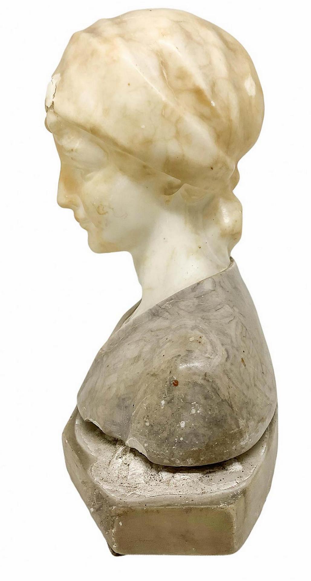 Mezzobusto in marmo raffigurante giovane donna con veste grigia, XX...