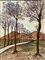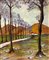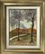 Dipinto ad olio su tela raffigurante via con alberi e colline. Firmato e...