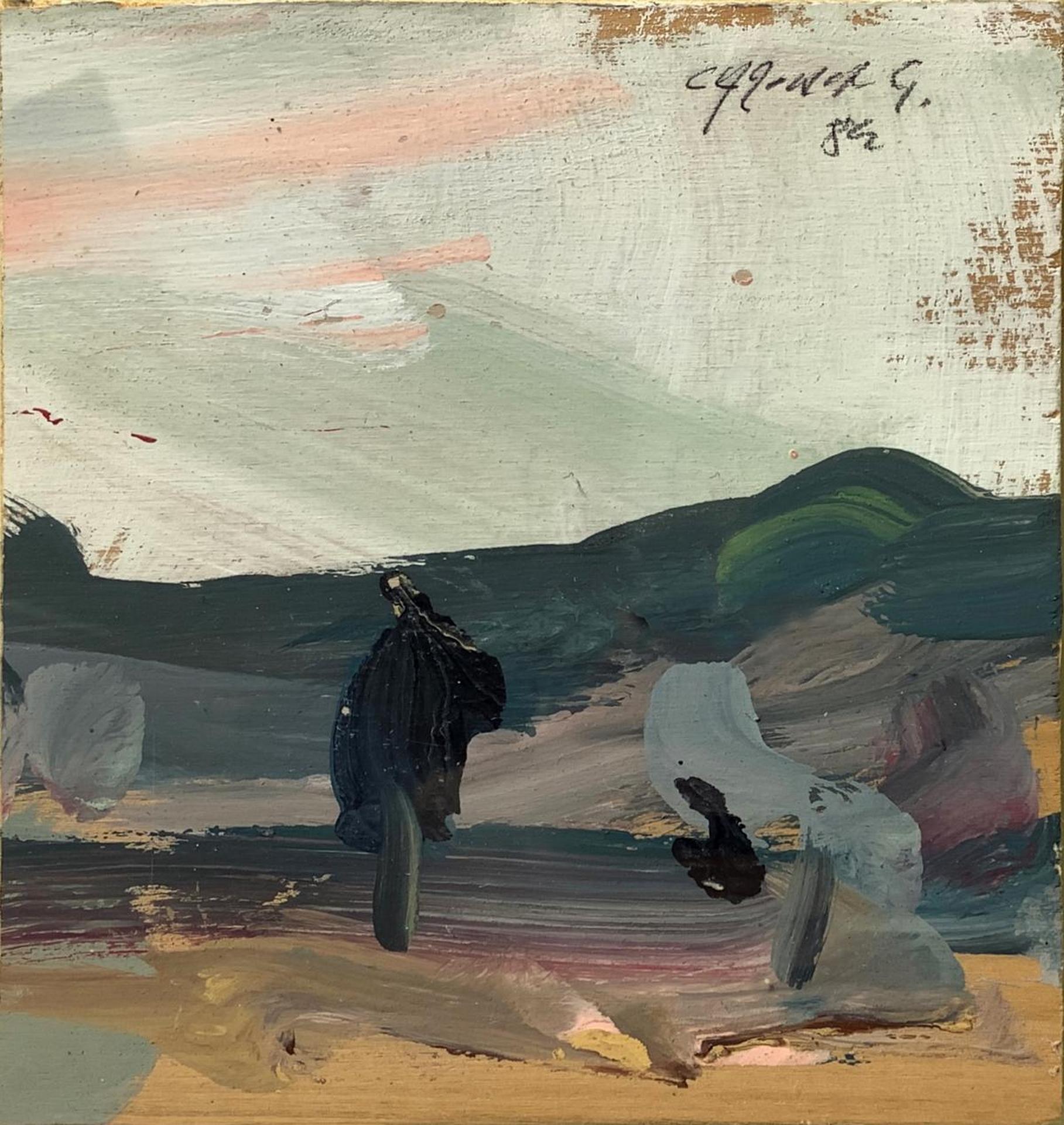 Olio su tavola raffigurante paesaggio di Pinerolo. Firmato e datato in alto a destra Giovanni Carena 84. Giovanni Carena (Airasca 1915-Pinerolo 1990). Cm 16x15, in cornice cm 44x40