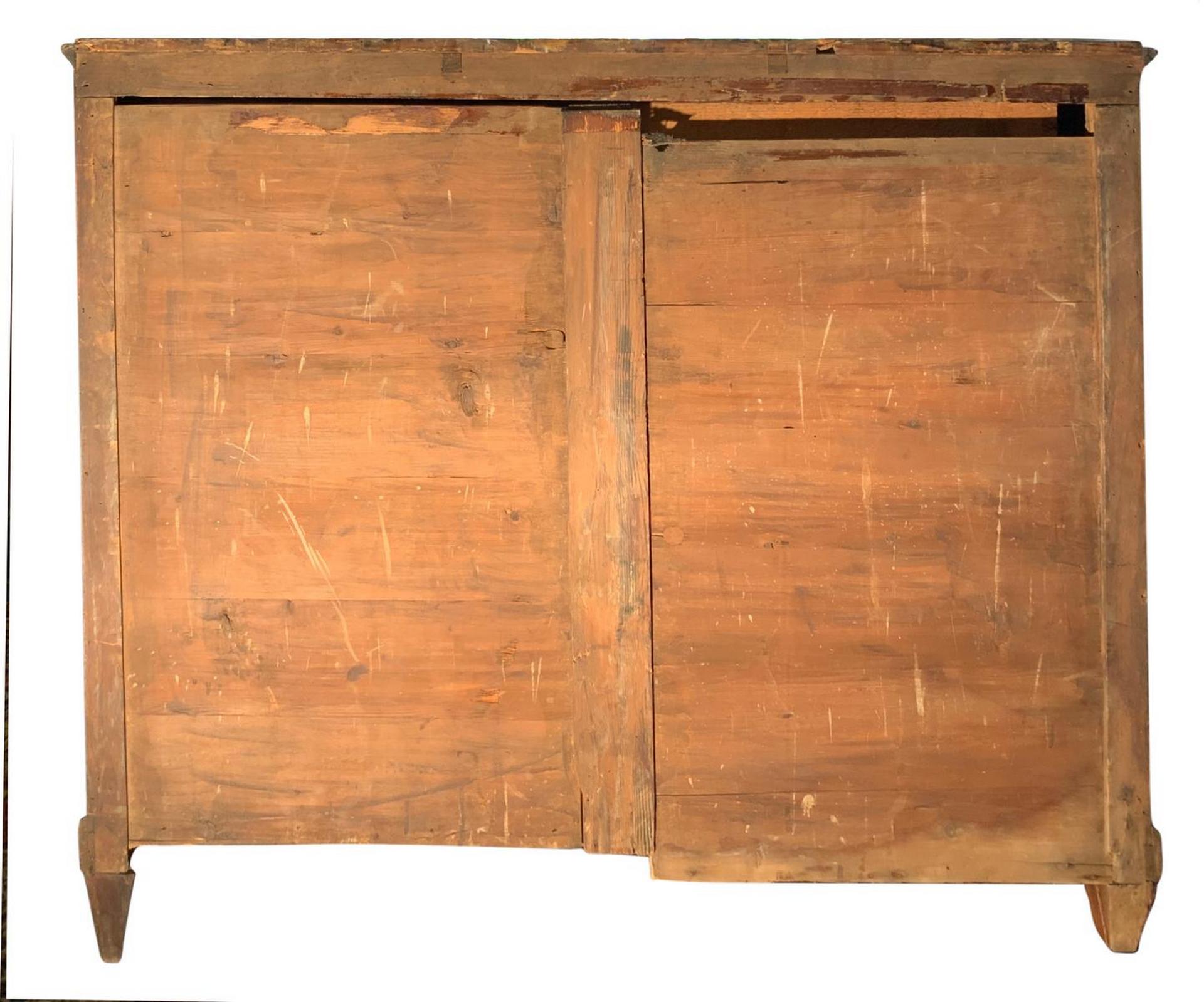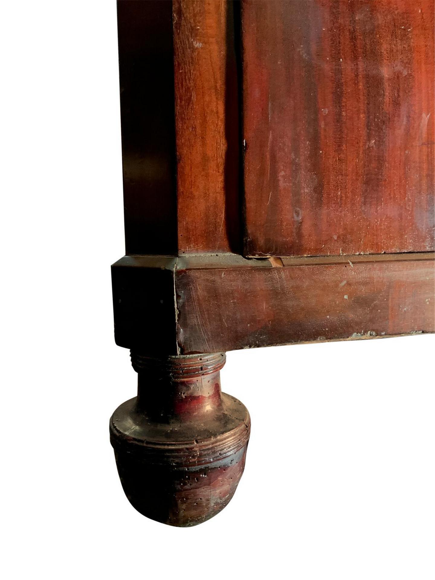 Cassettone in piuma di mogano a cinque cassetti. Sicilia, XIX secolo. H cm 126. Lunghezza cm 135. Profondità cm 45.