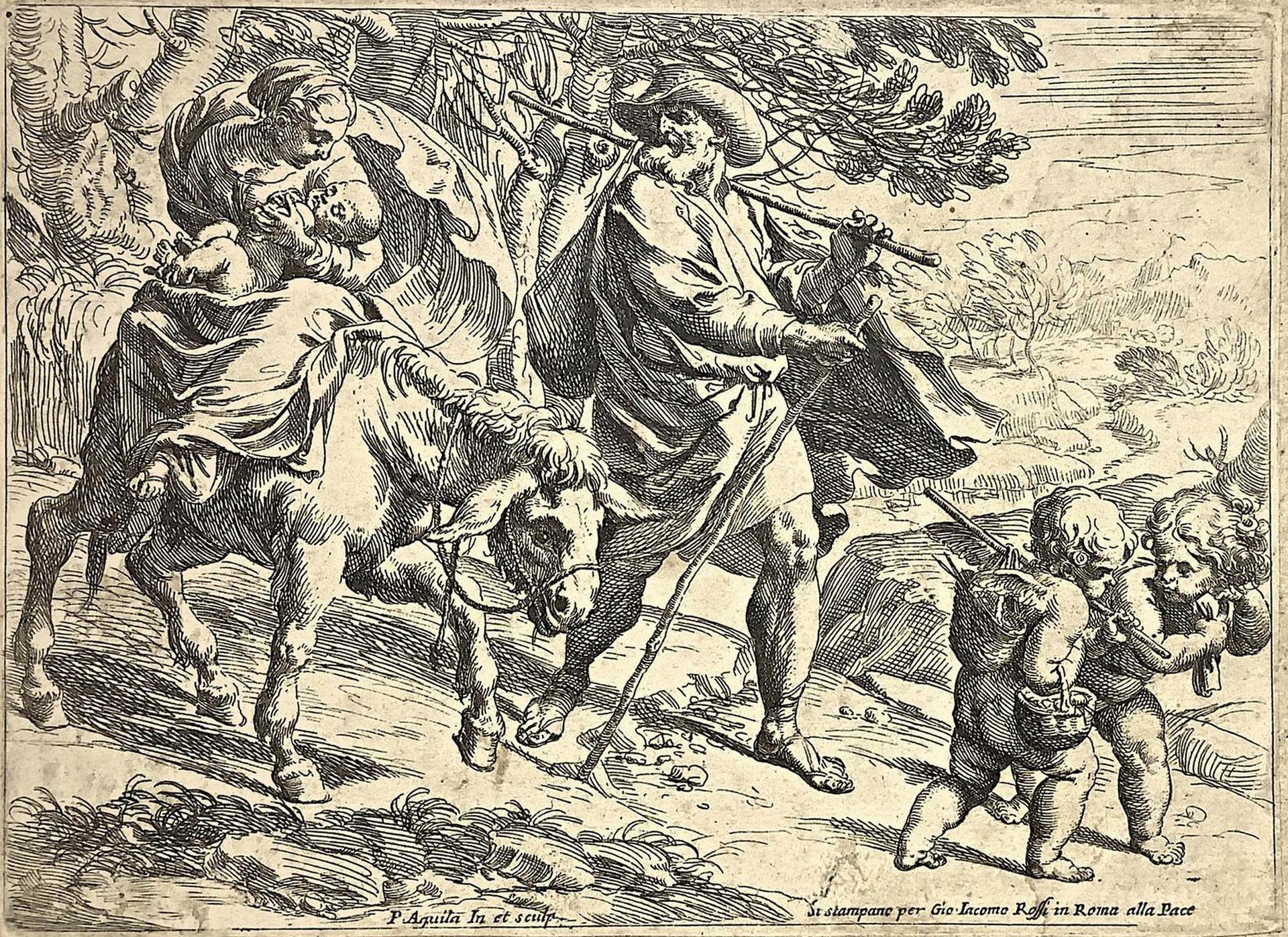Incisione raffigurante Fuga in Egitto di Pietro Aquila (Marsala 1650- Roma...