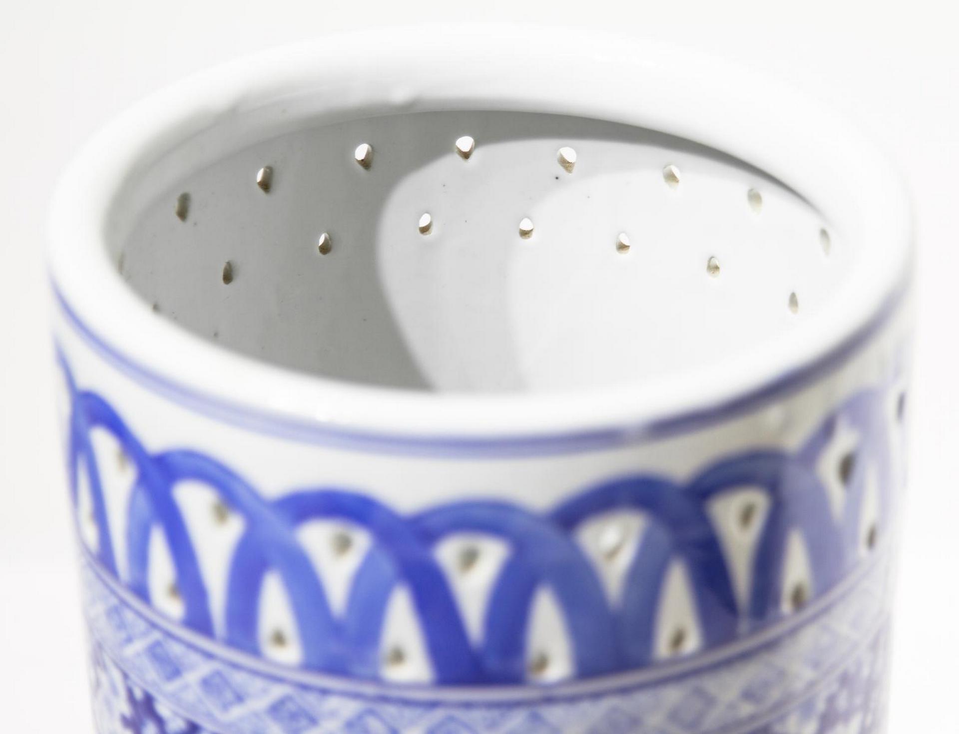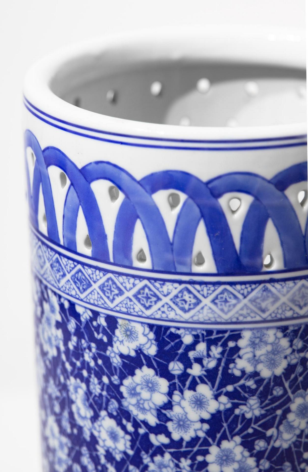 Portaombrelli fondo bianco con decori floreali blu. Cina, XX secolo H Cm 46
