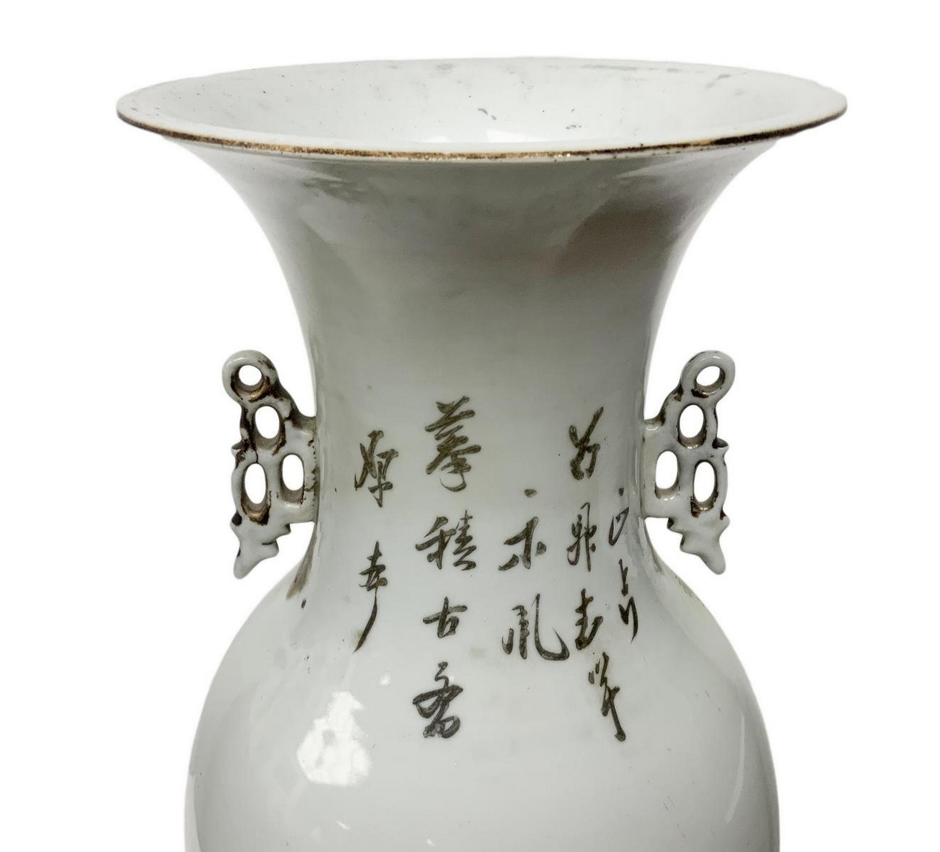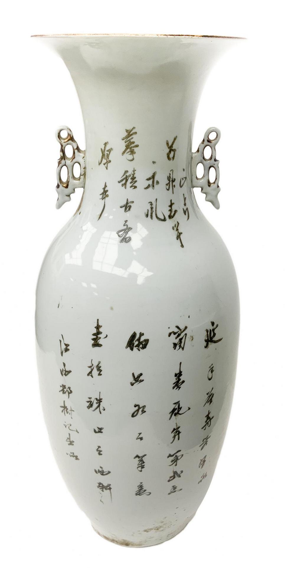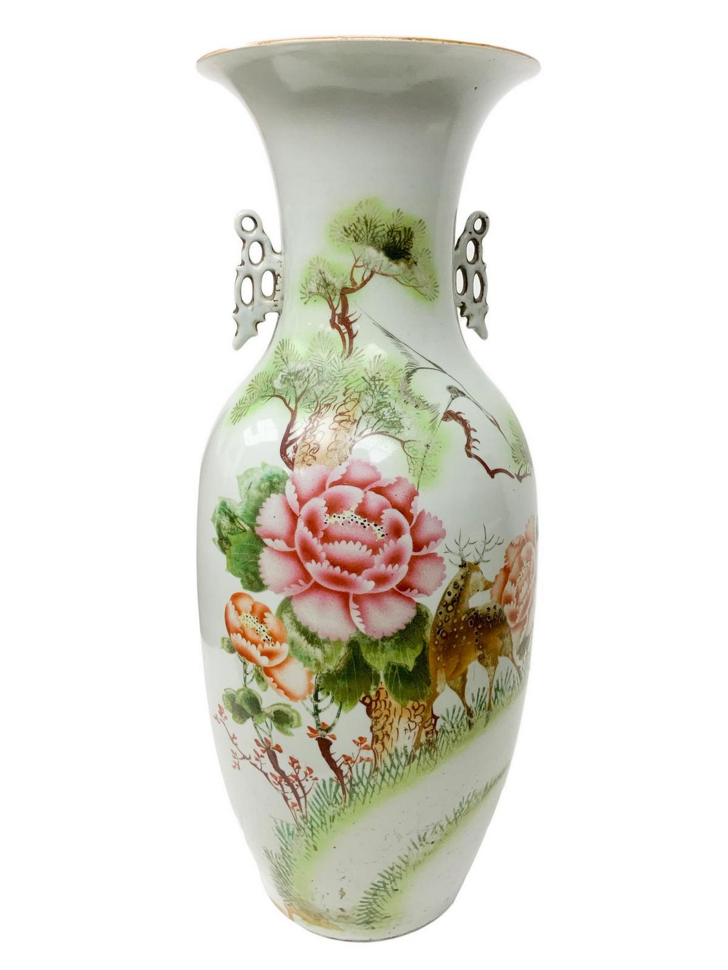 Vaso in porcellana cinese raffigurante sul fronte decorazione floreale, sul retro scritte cinesi. H cm 59. Ceralacca alla base.
