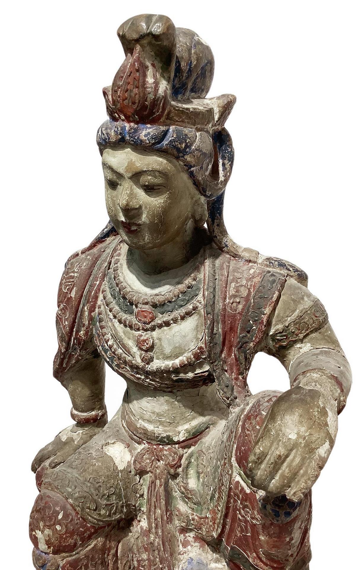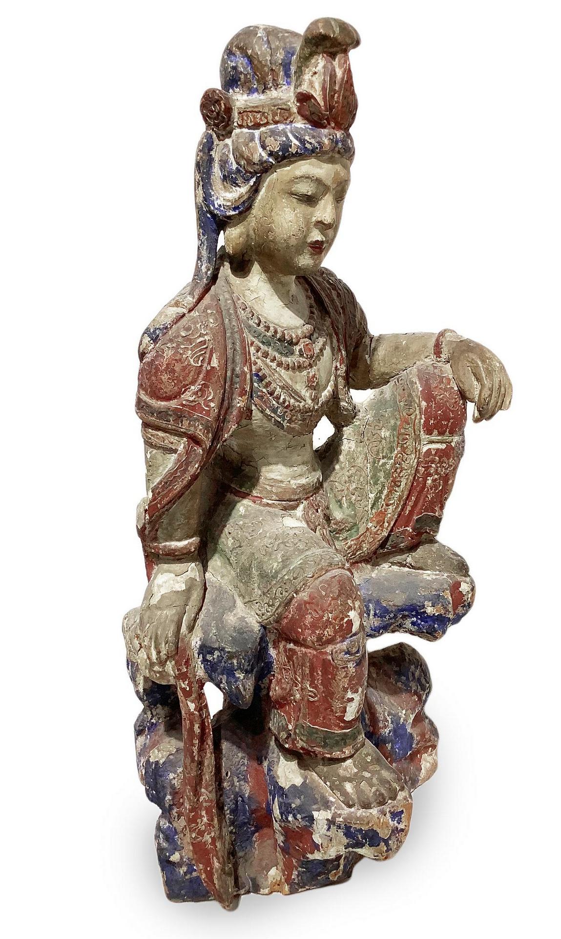 Lotto 416 | Scultura in legno policromo raffigurante divinità orientale seduta, XIX...