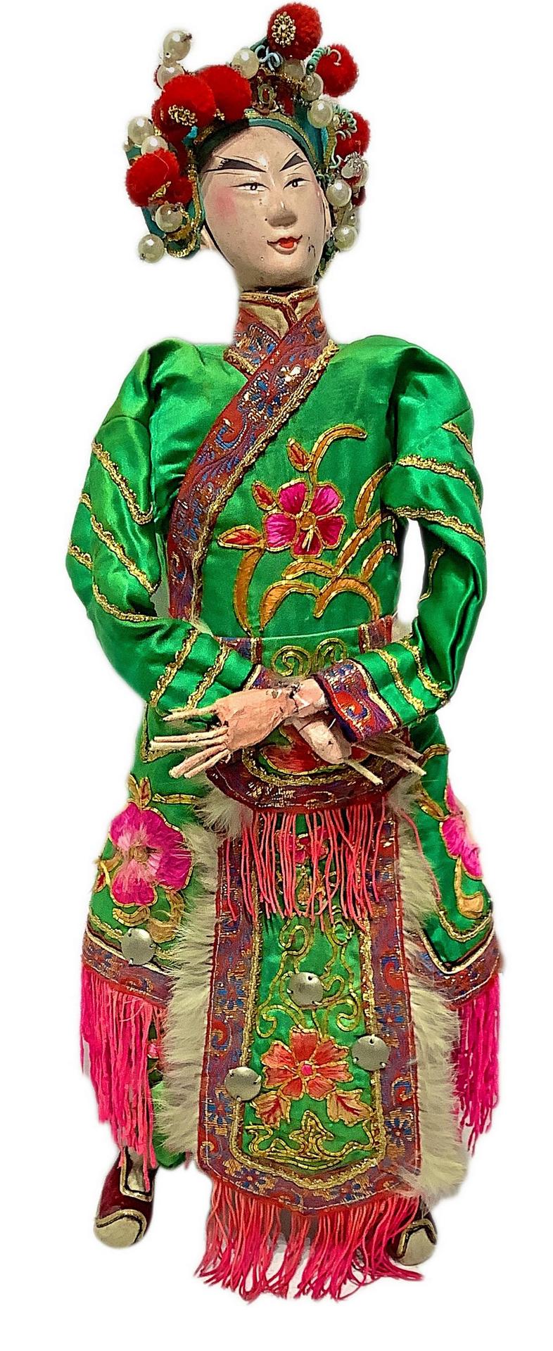 Marionetta orientale, Cina. Testa intercambiabile in terracotta e struttura in legno. H cm 50 circa.