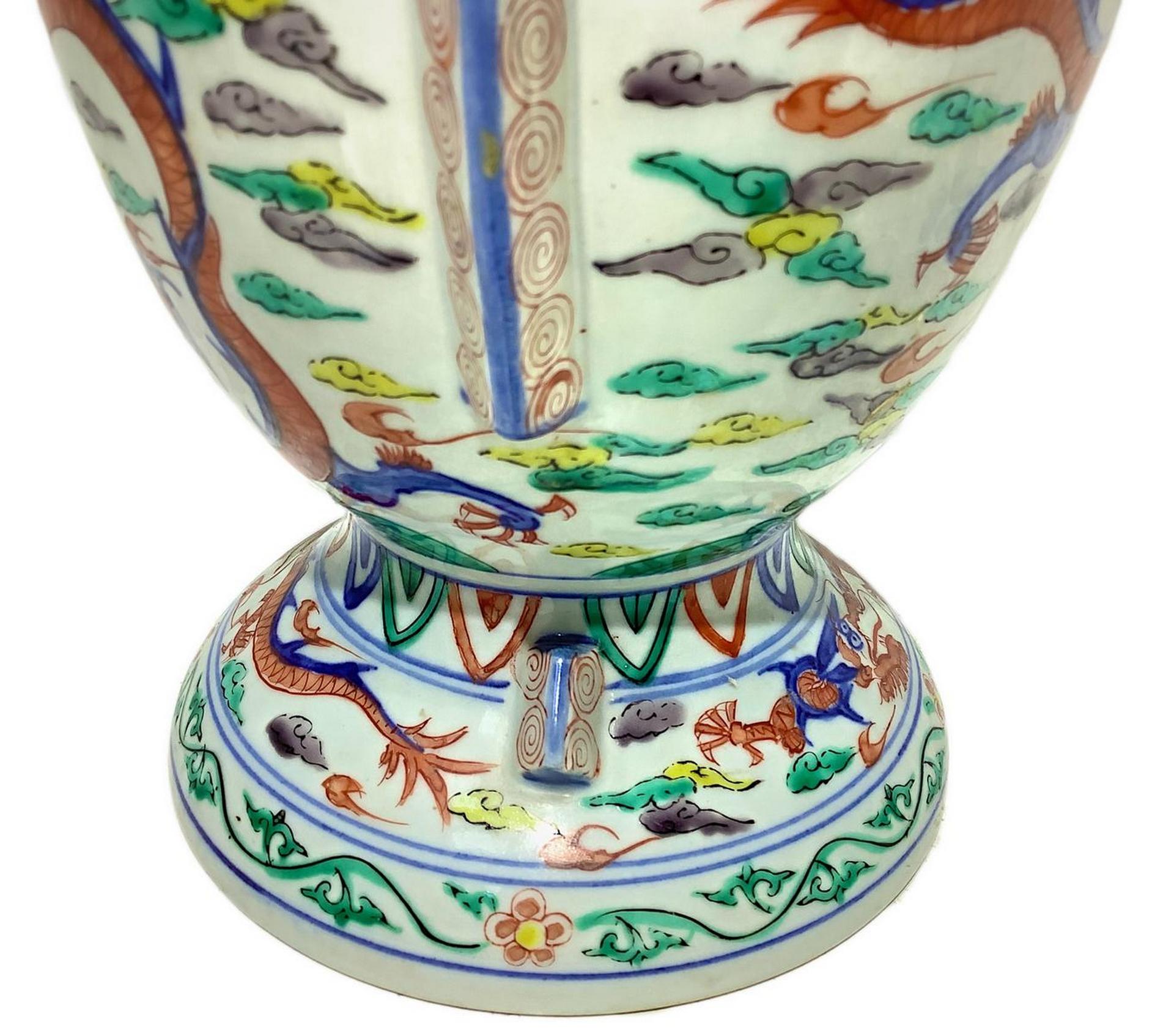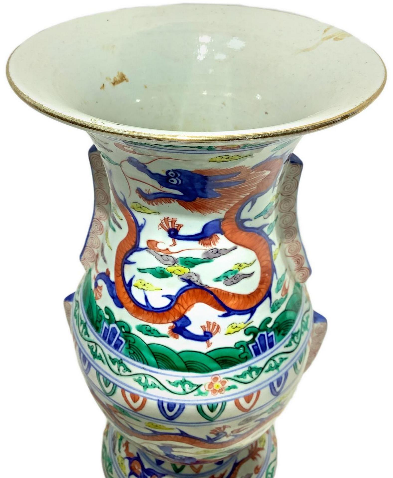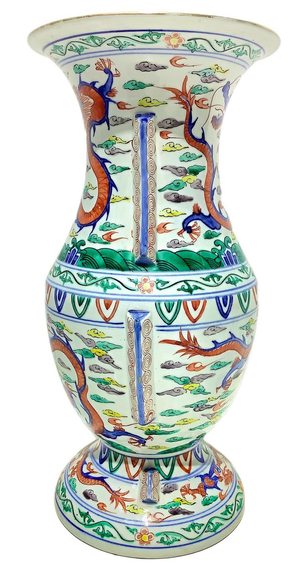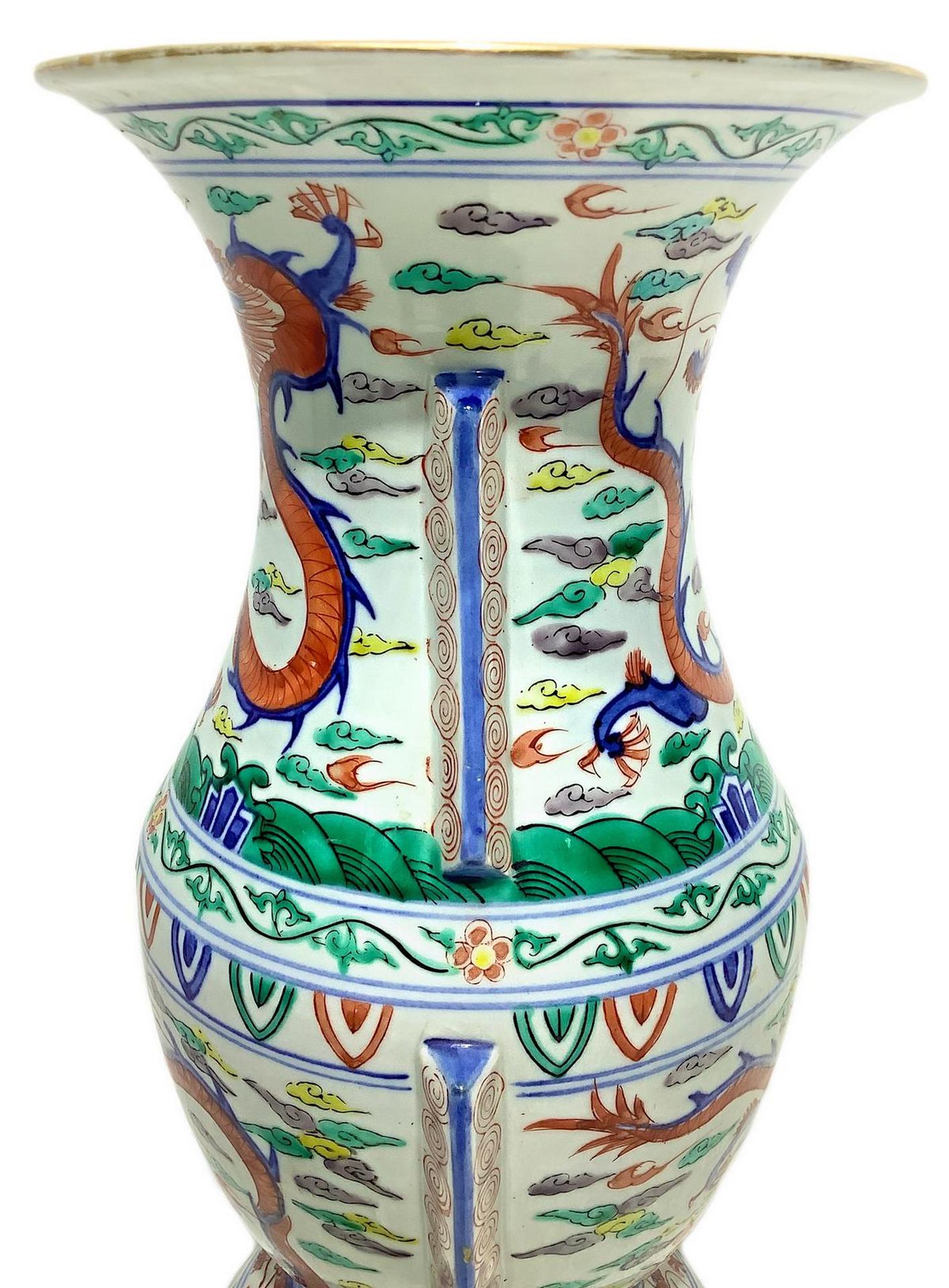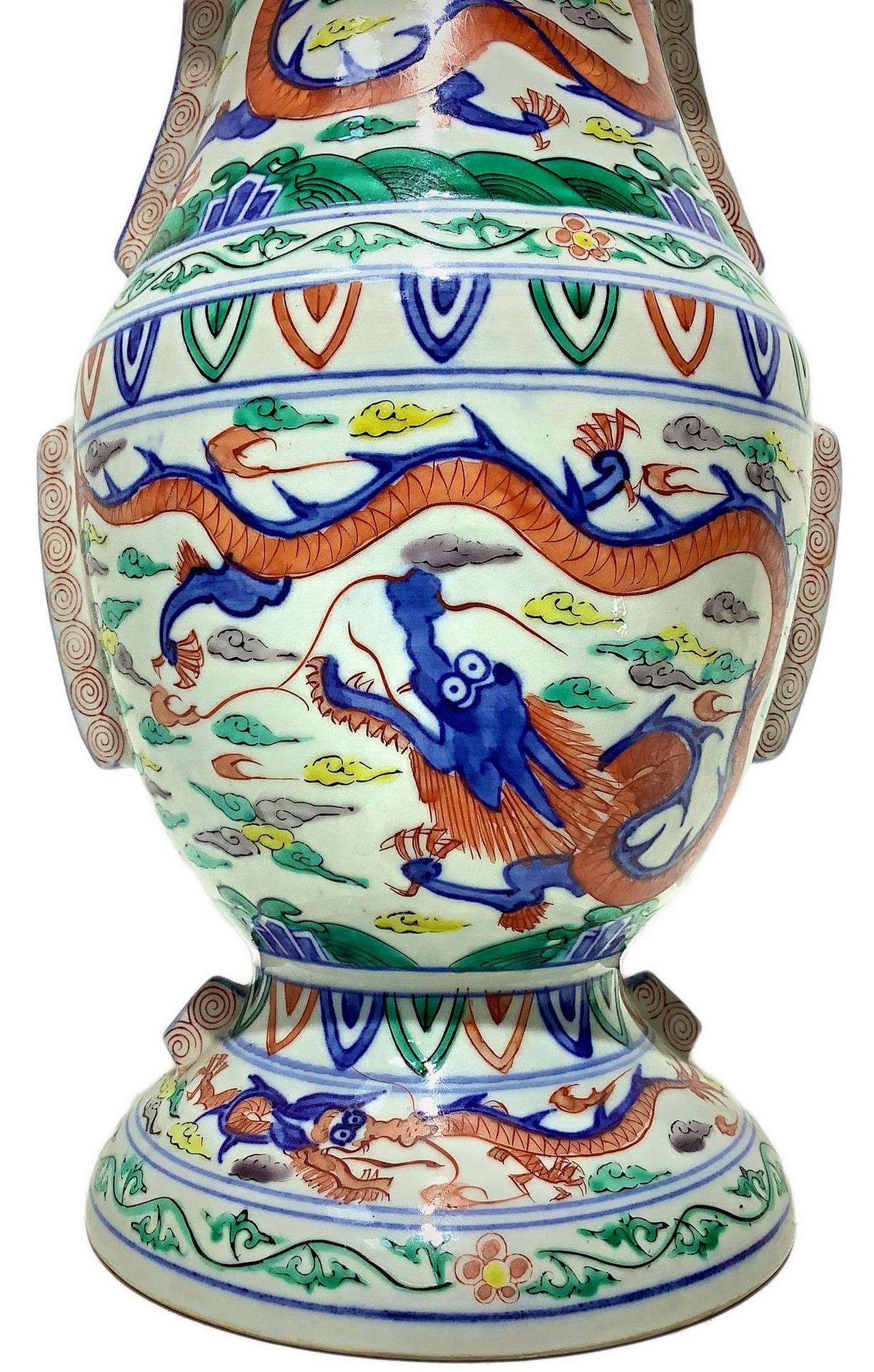 Vaso, Cina, XX secolo. Decorato con immagini di dragoni. H cm 30