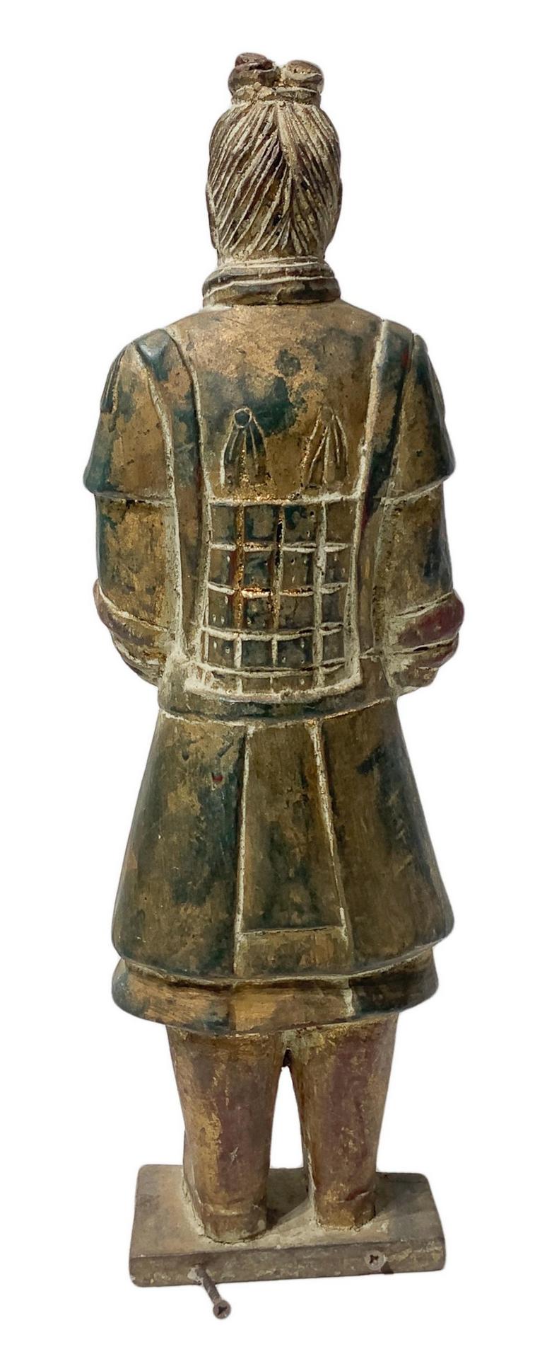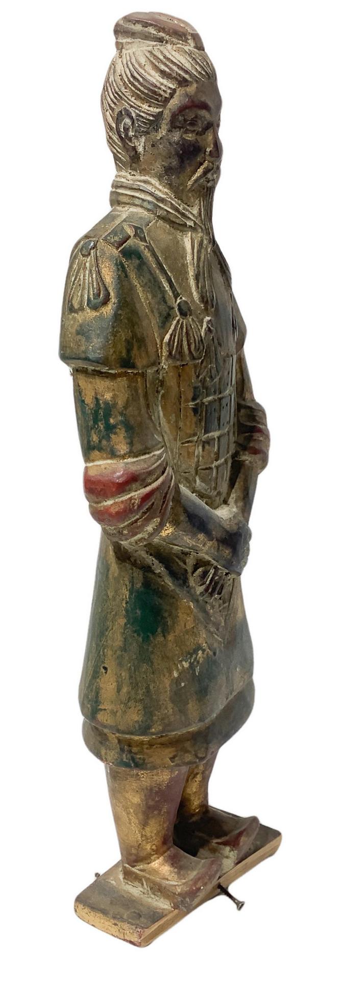 Scultura in legno policroma raffigurante personaggio in vesti orientali, Cina. H cm 46, larghezza cm 14