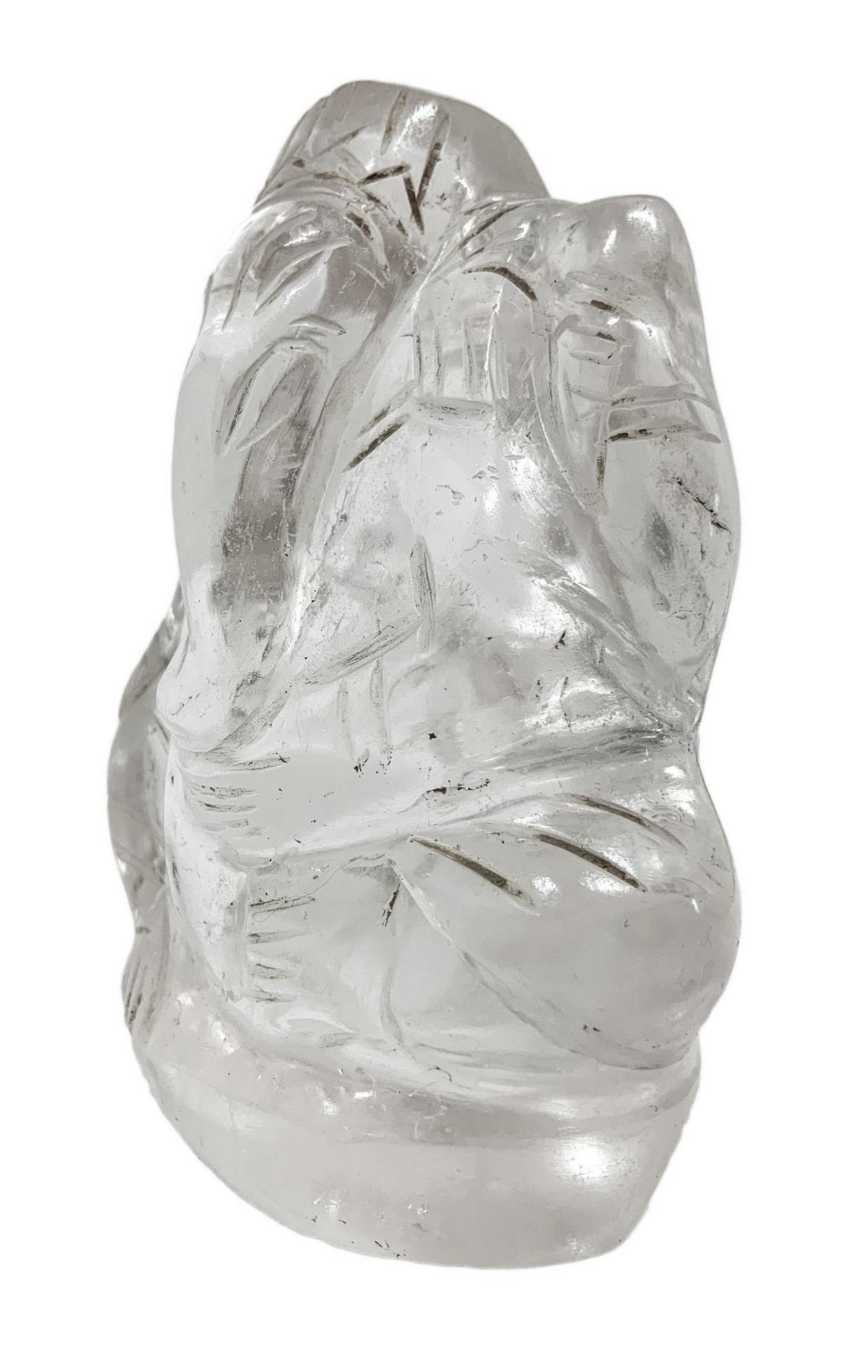 Statuetta in cristallo di rocca raffigurante “Ganeshaâ€_x009d_ (Dio induista dell’amore universale). Provenienza India primi ‘900. H cm 8,5. Base cm 5.