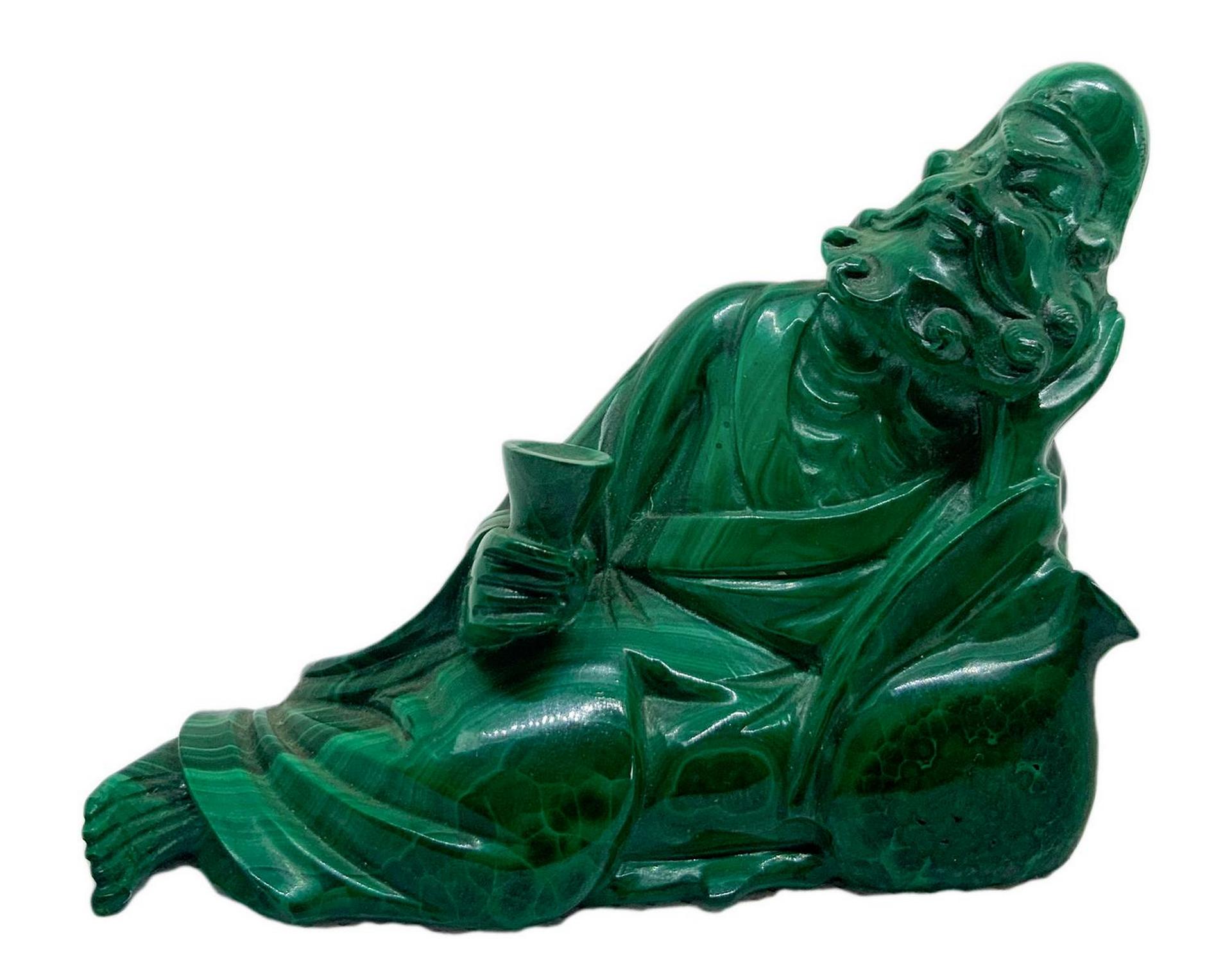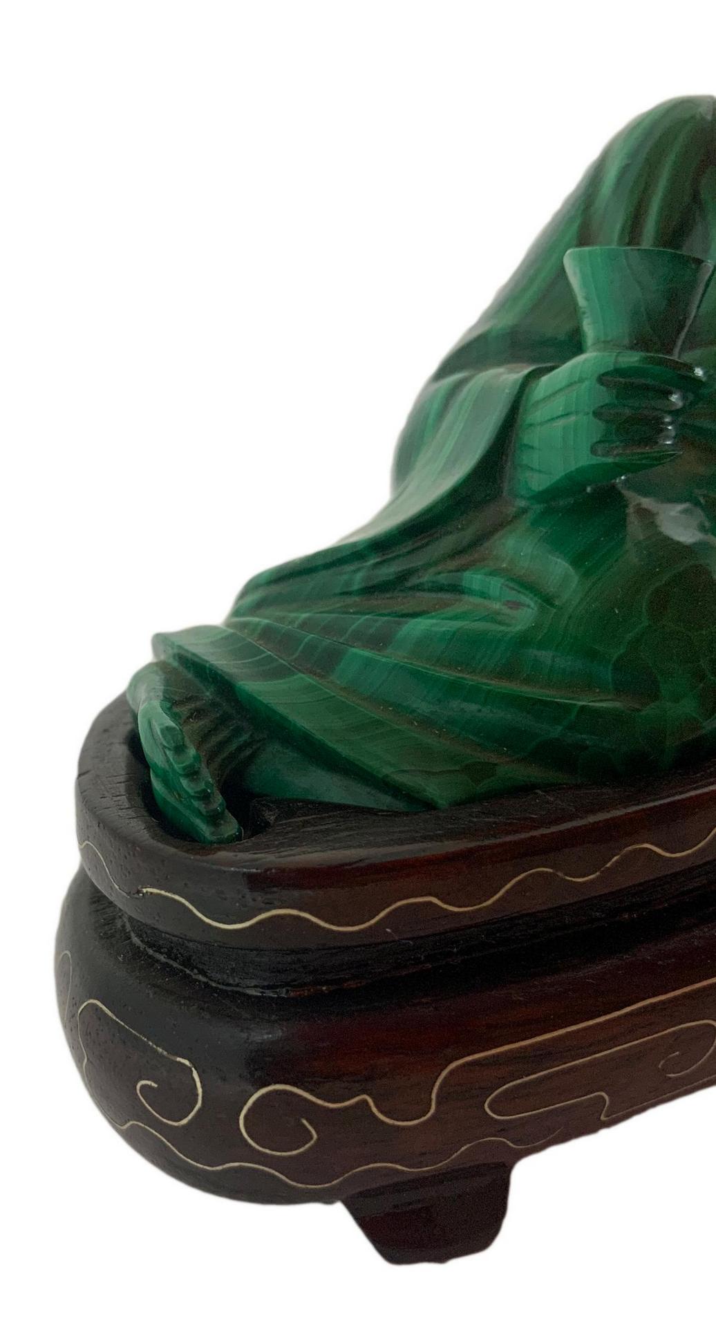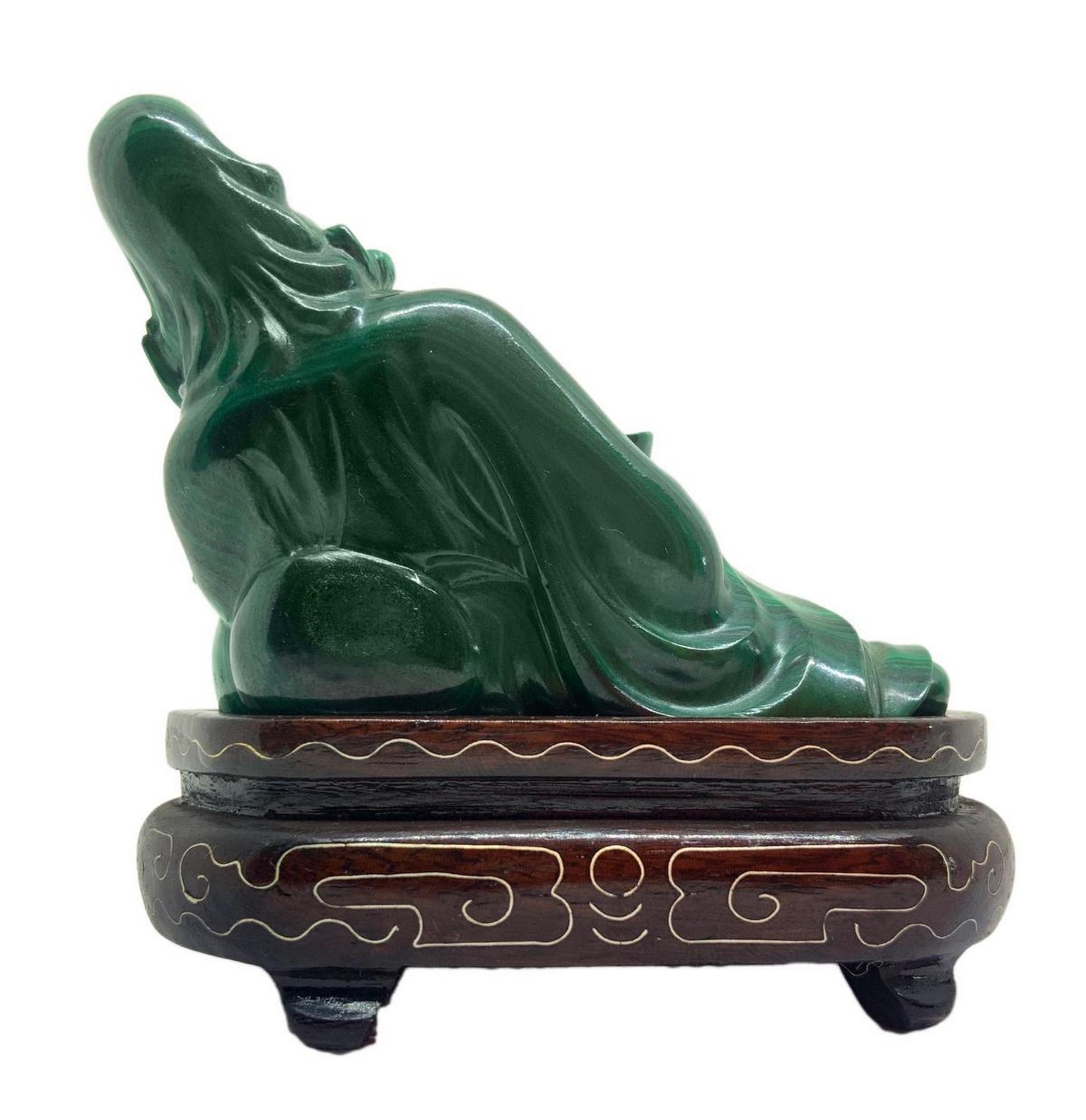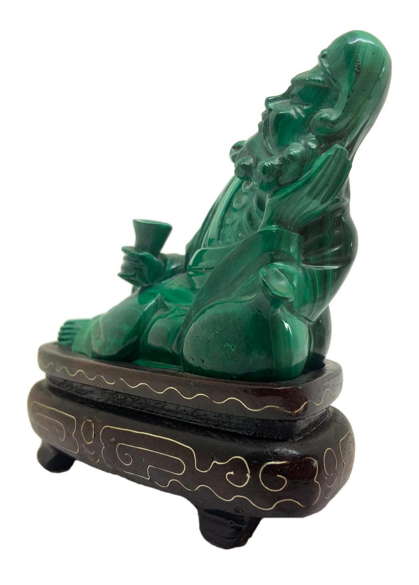 Statuetta in malachite di colore verde chiaro raffigurante Dio Jurojin (Dio...