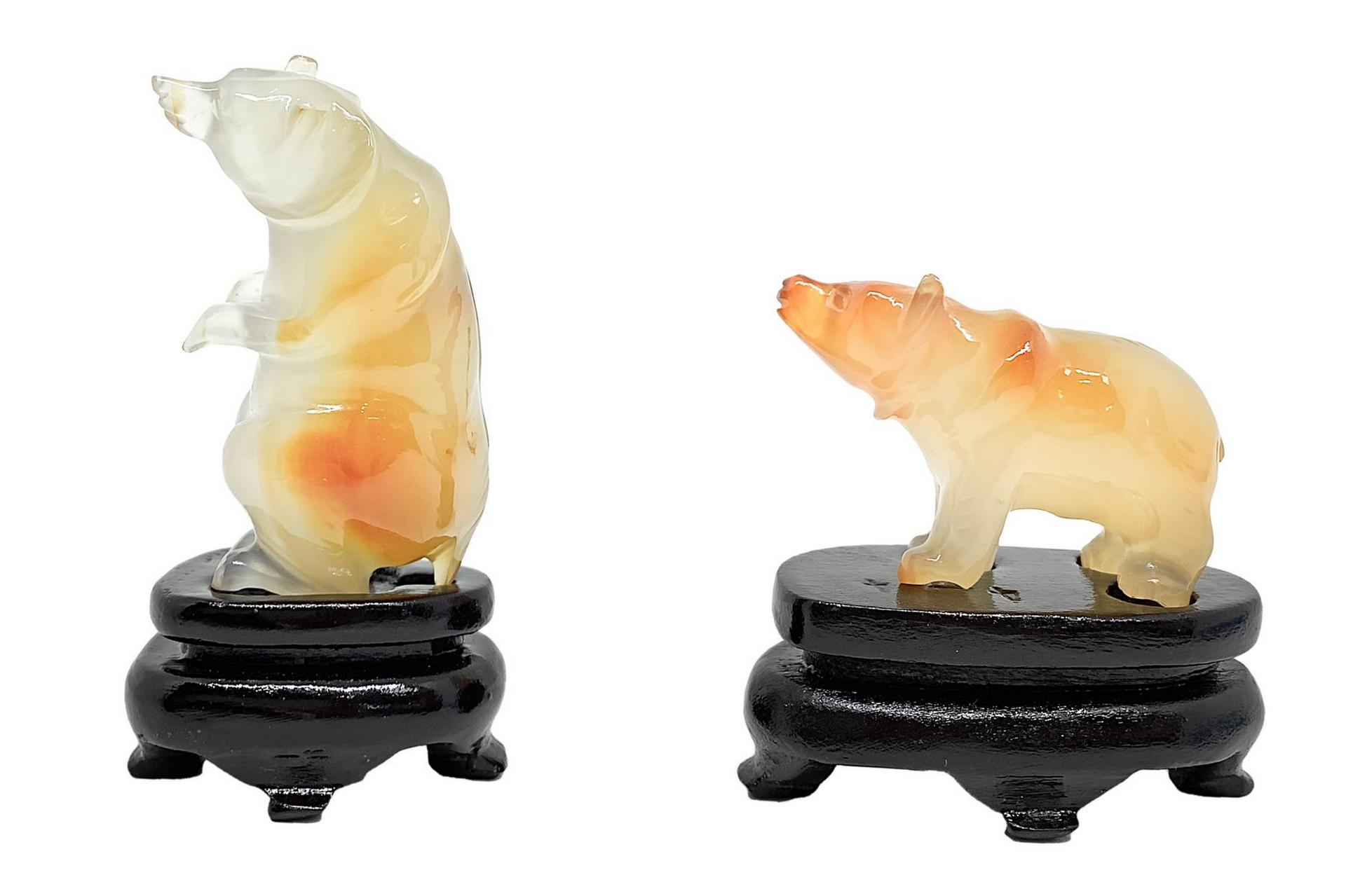 Lotto 441 | Coppia di statuette raffigurante orsi, XX secolo. Con base in legno. H cm 7; 5.