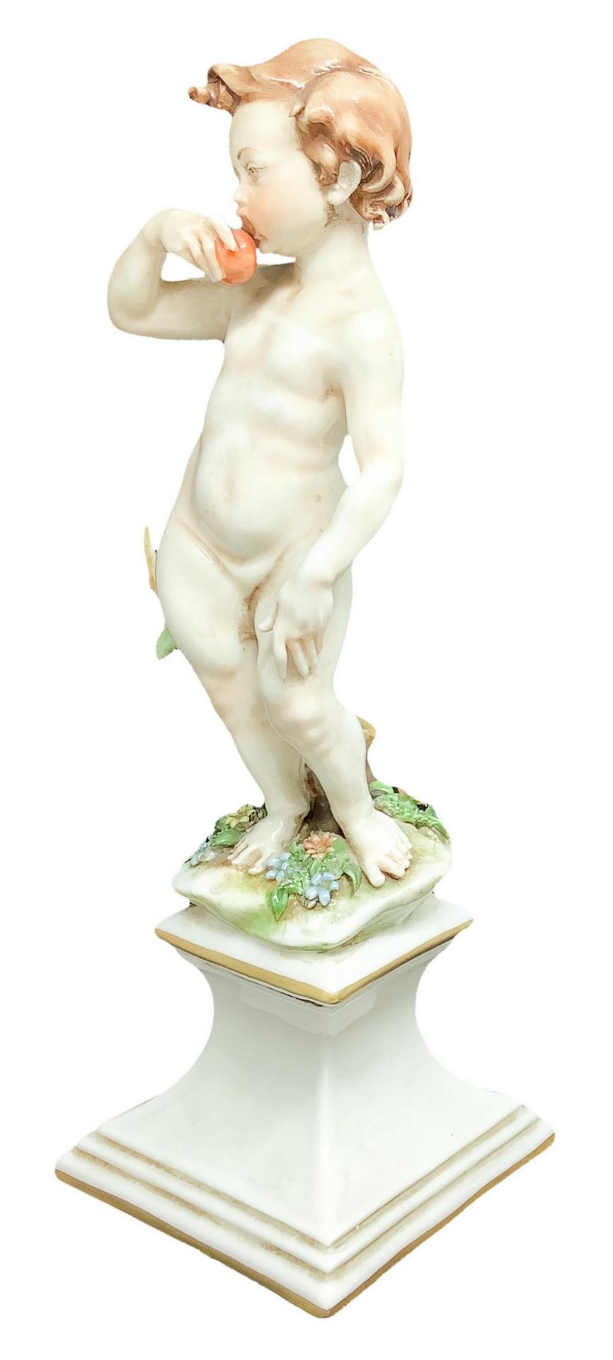 Statuetta in porcellana di Capodimonte raffigurante bambina che mangia la mela. H cm 18.