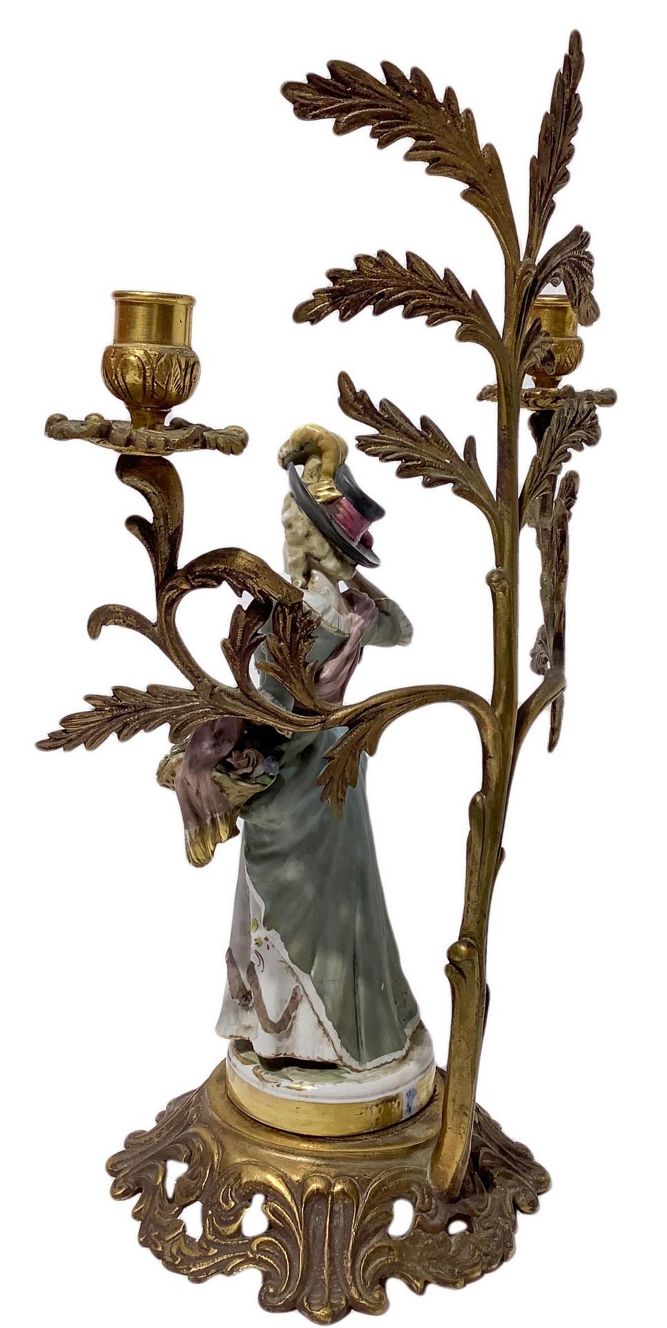 Portacandele in ottone con statuetta in porcellana di Capodimonte...