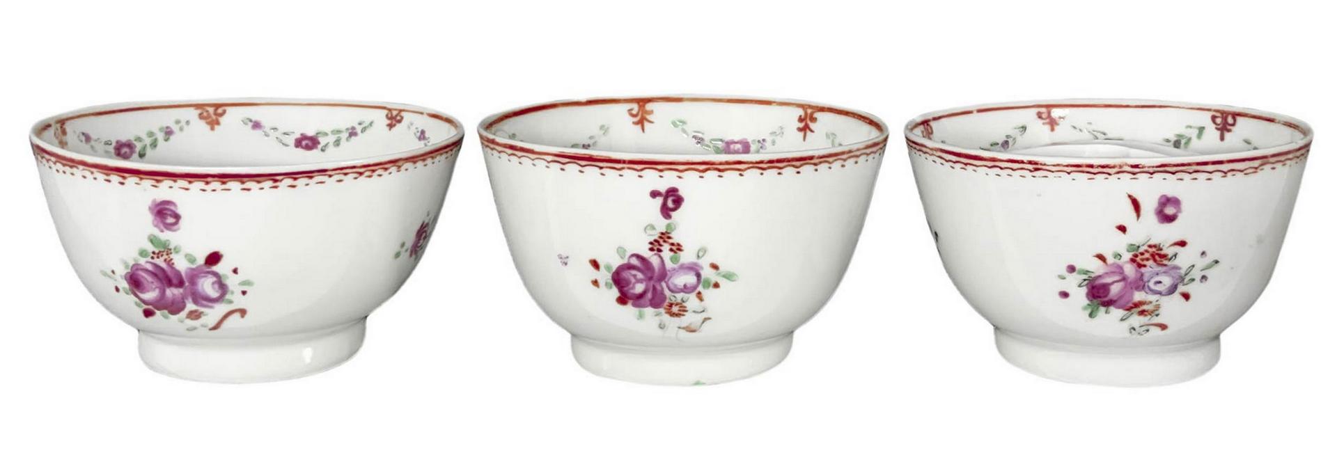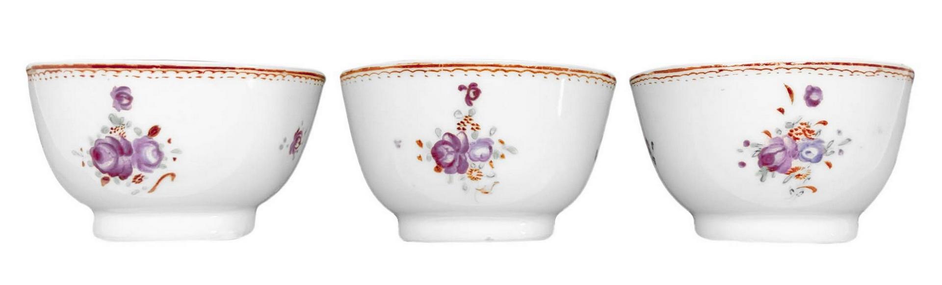 Lotto 453 | Tre ciotoline in porcellana cinese decorazioni floreali. H cm 4,5. Bocca cm...