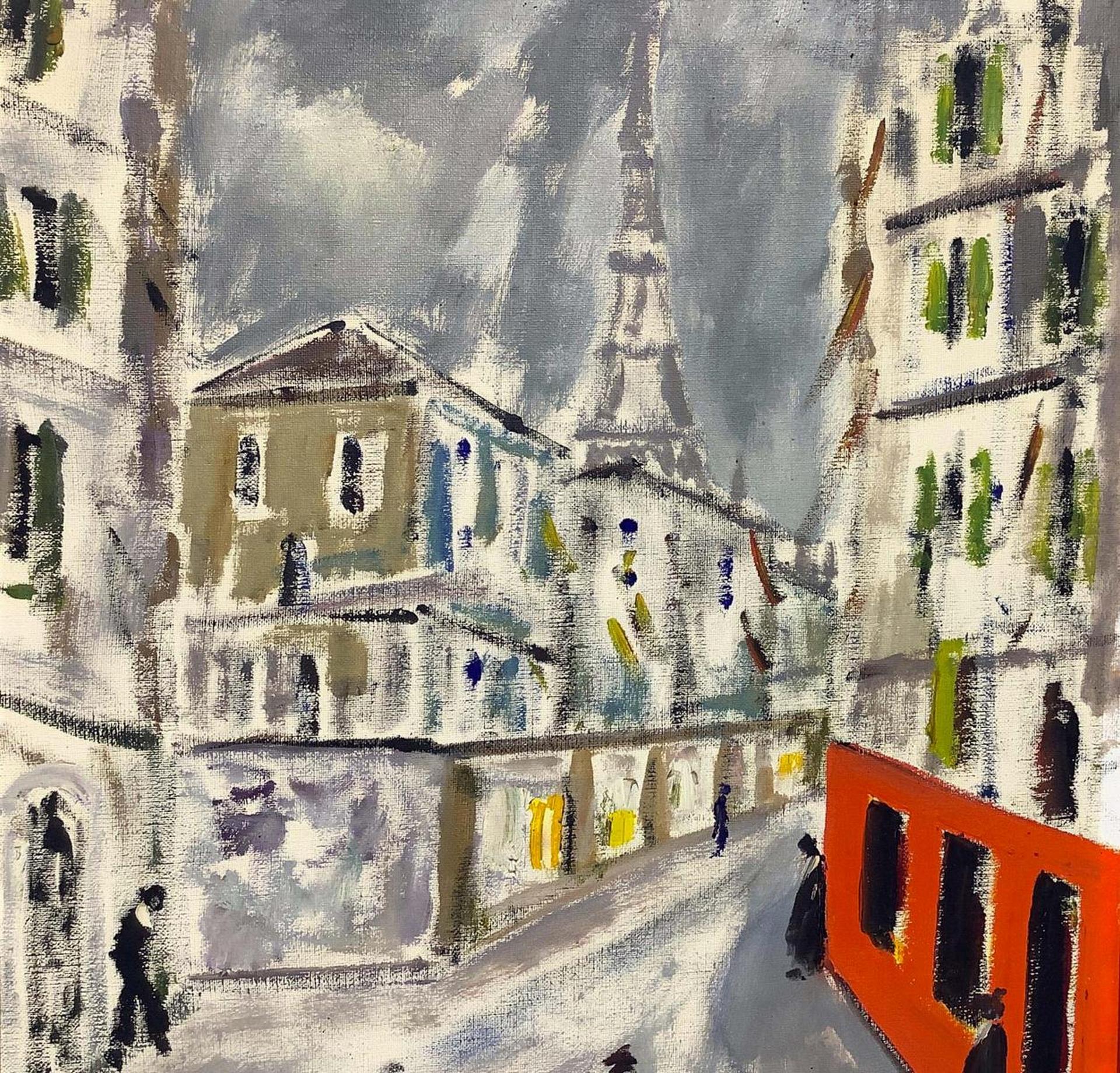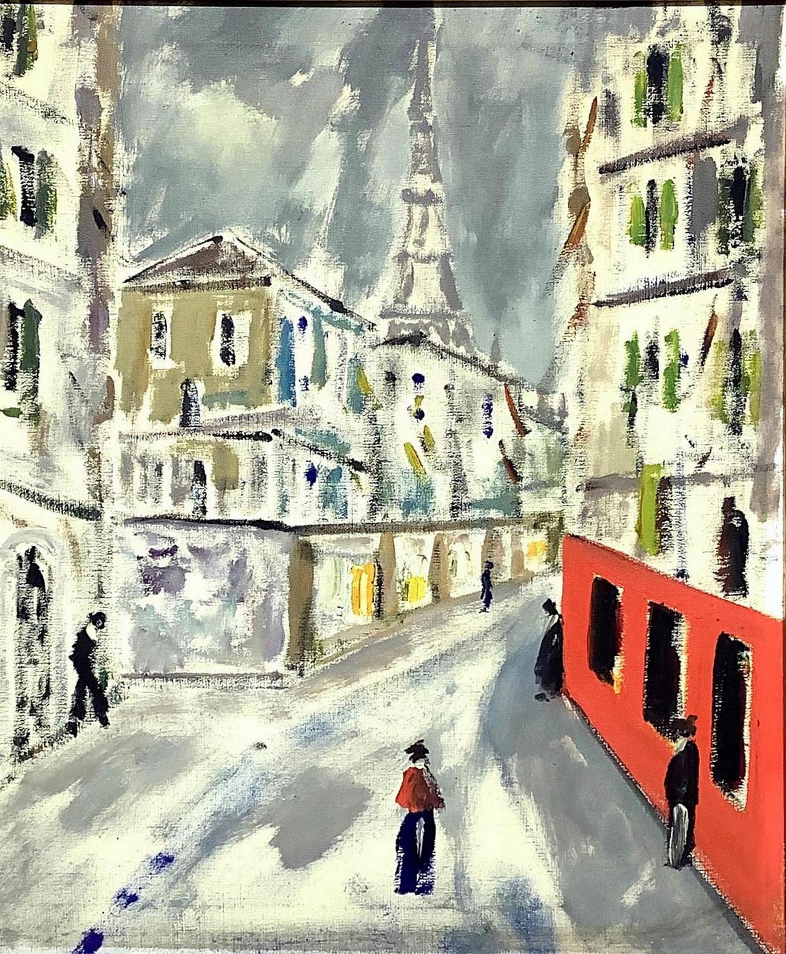 Olio su tela raffigurante canale strada Parigi. Cm 50x40. In cornice 70x60