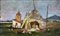 Dipinto ad olio su tavola raffigurante casolare di campagna con aia, XX...