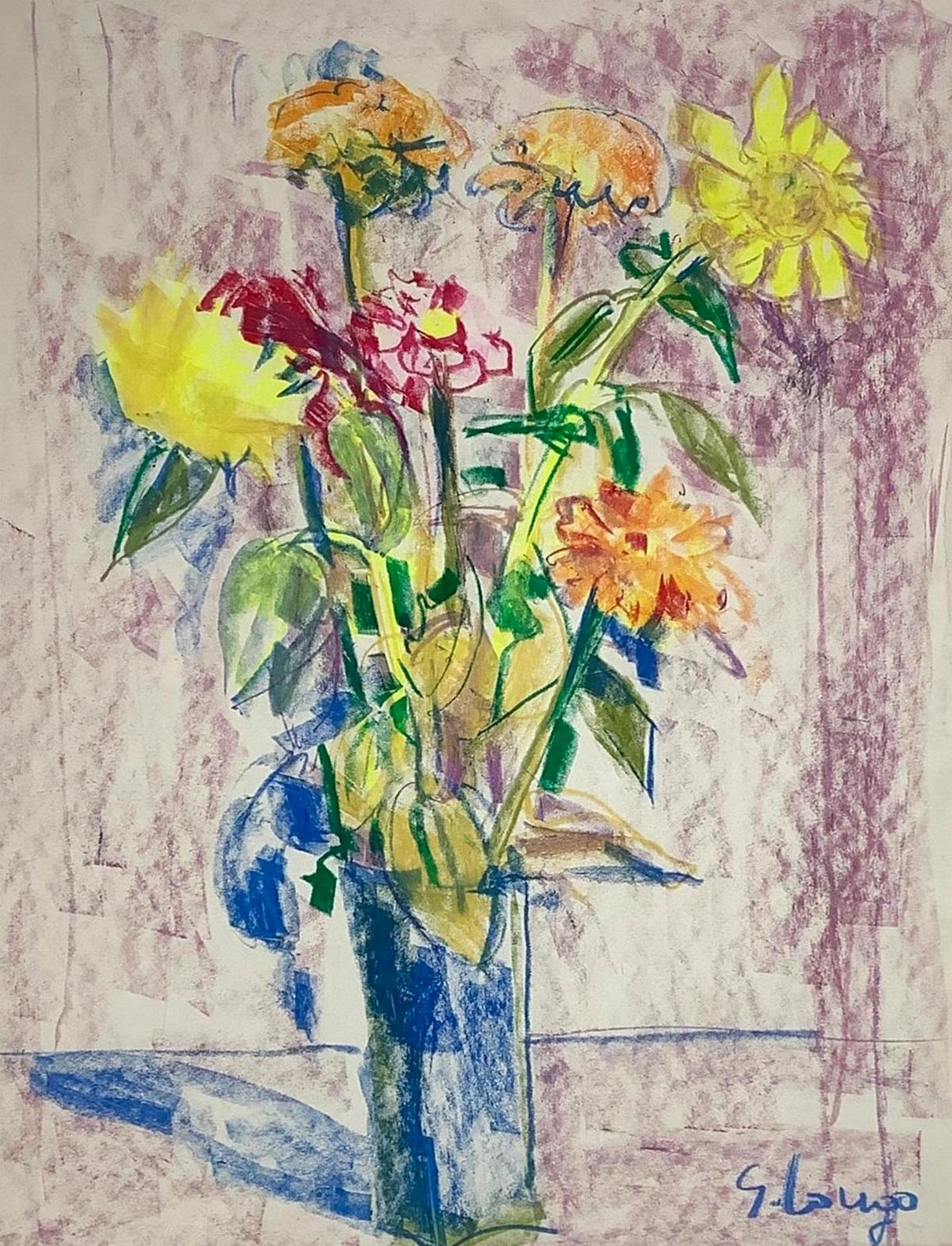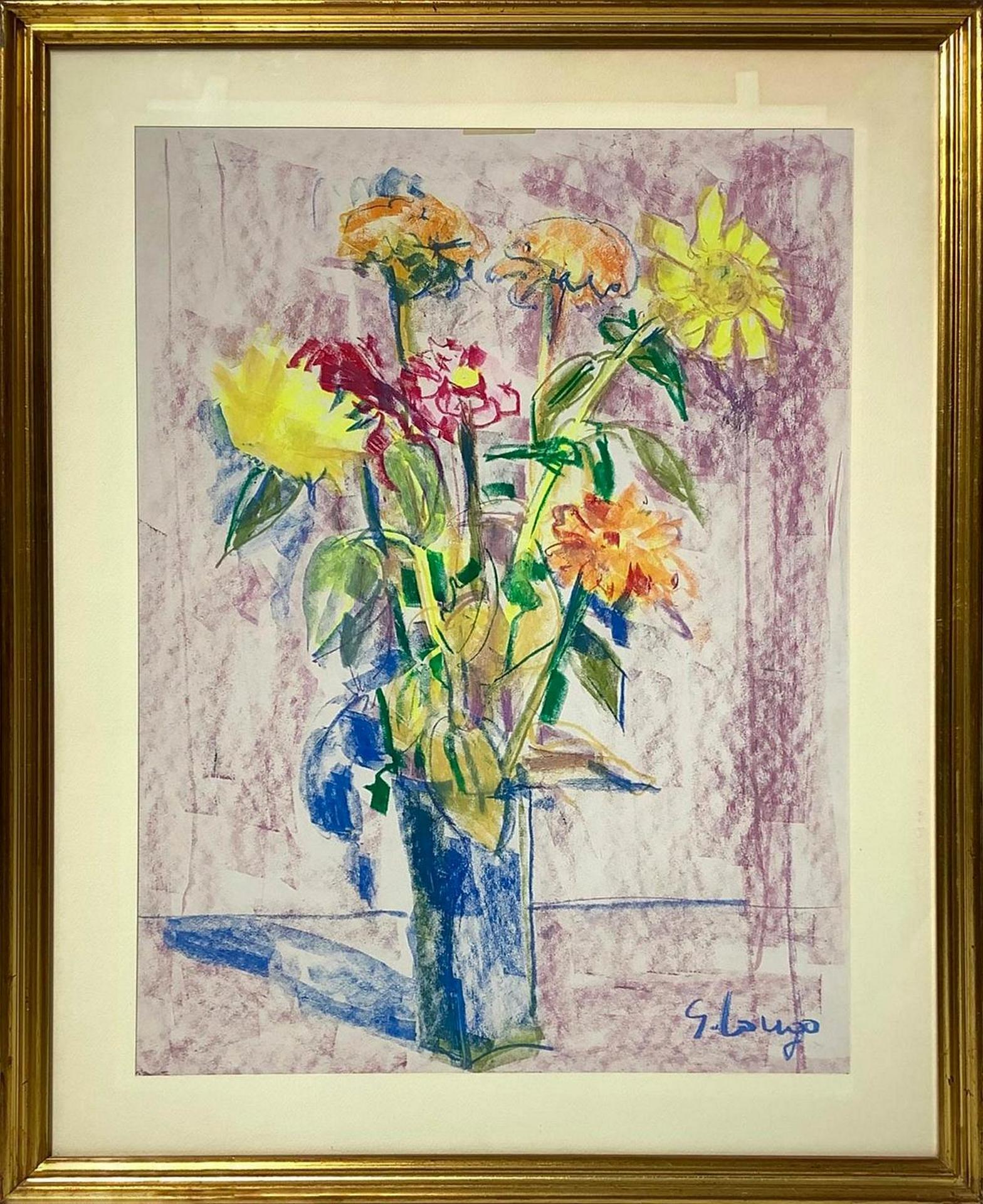 Pastello su cartoncino raffigurante Natura morta di fiori, firmato in basso a destra G. Longo, cm 66x46 in cornice cm73x63