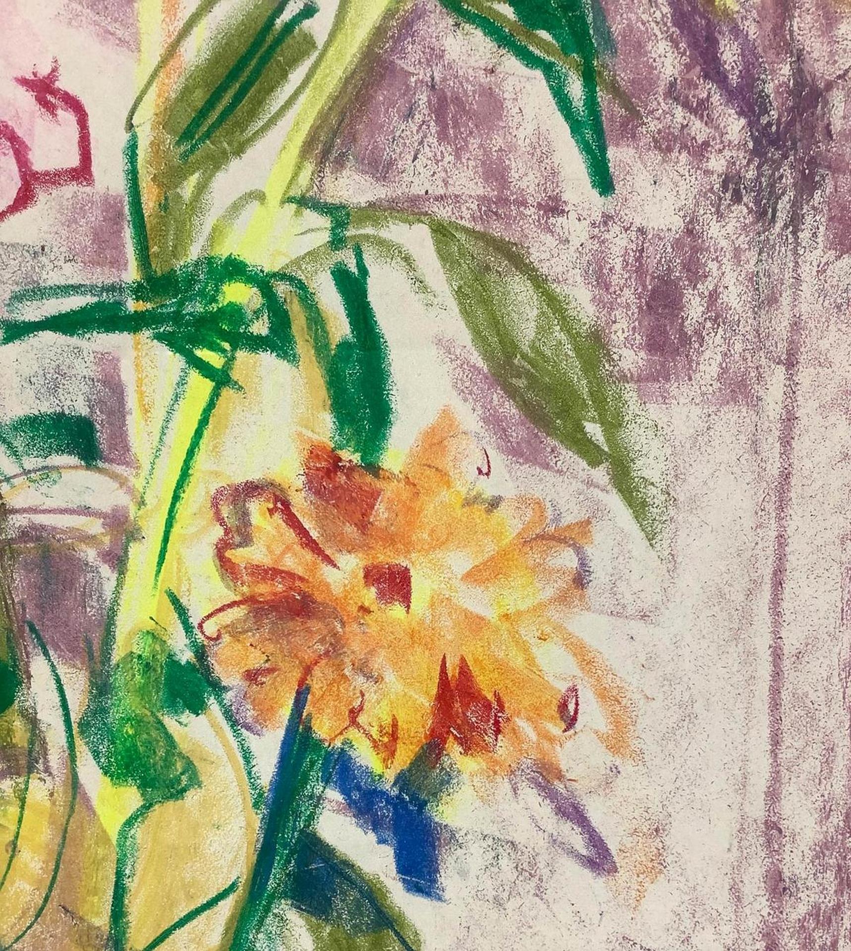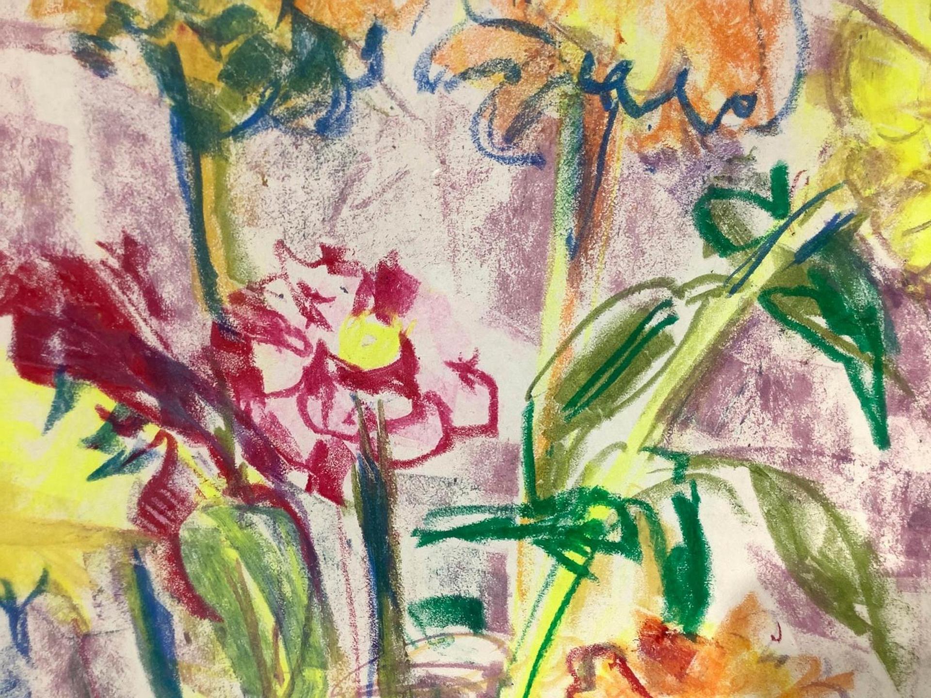 Pastello su cartoncino raffigurante Natura morta di fiori, firmato in basso a...