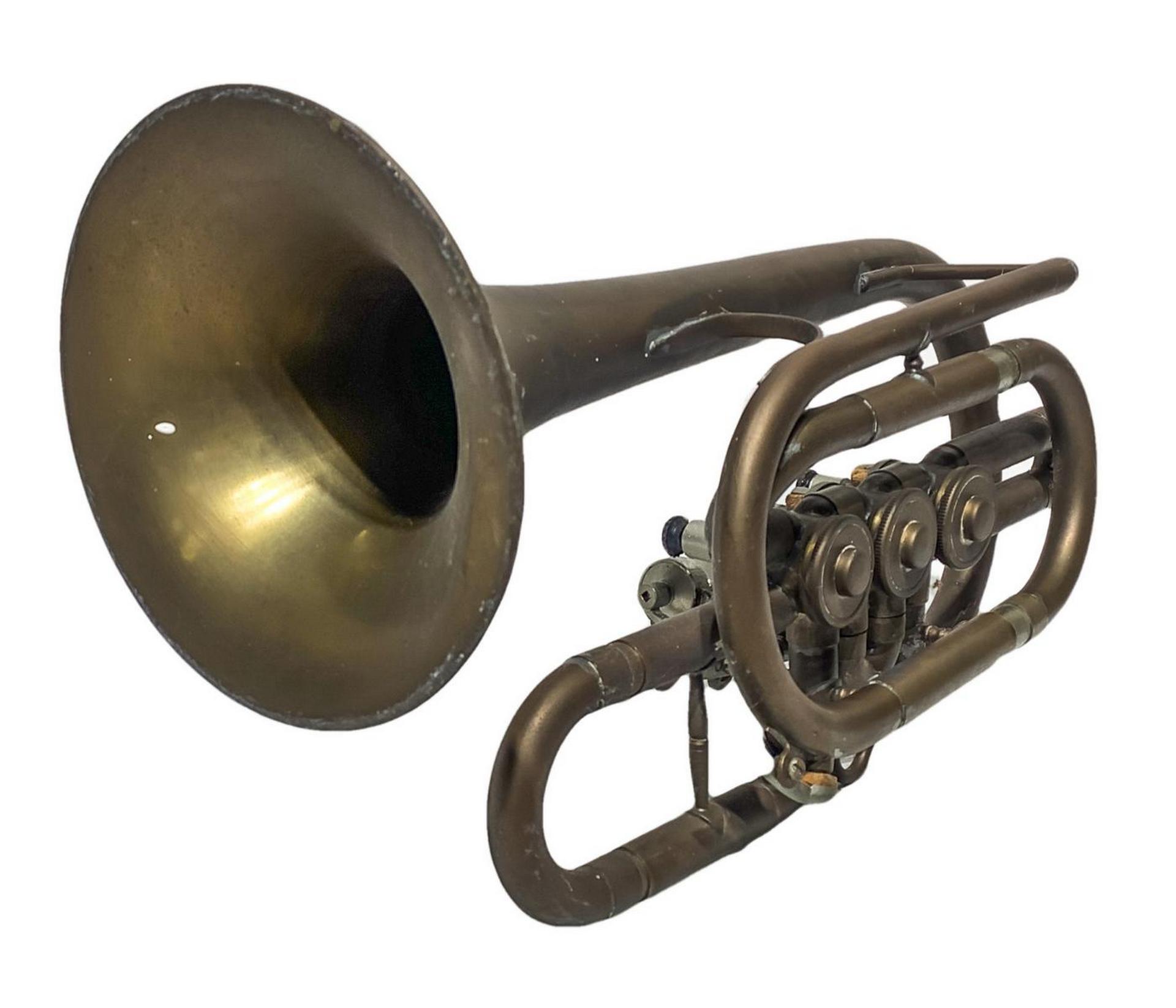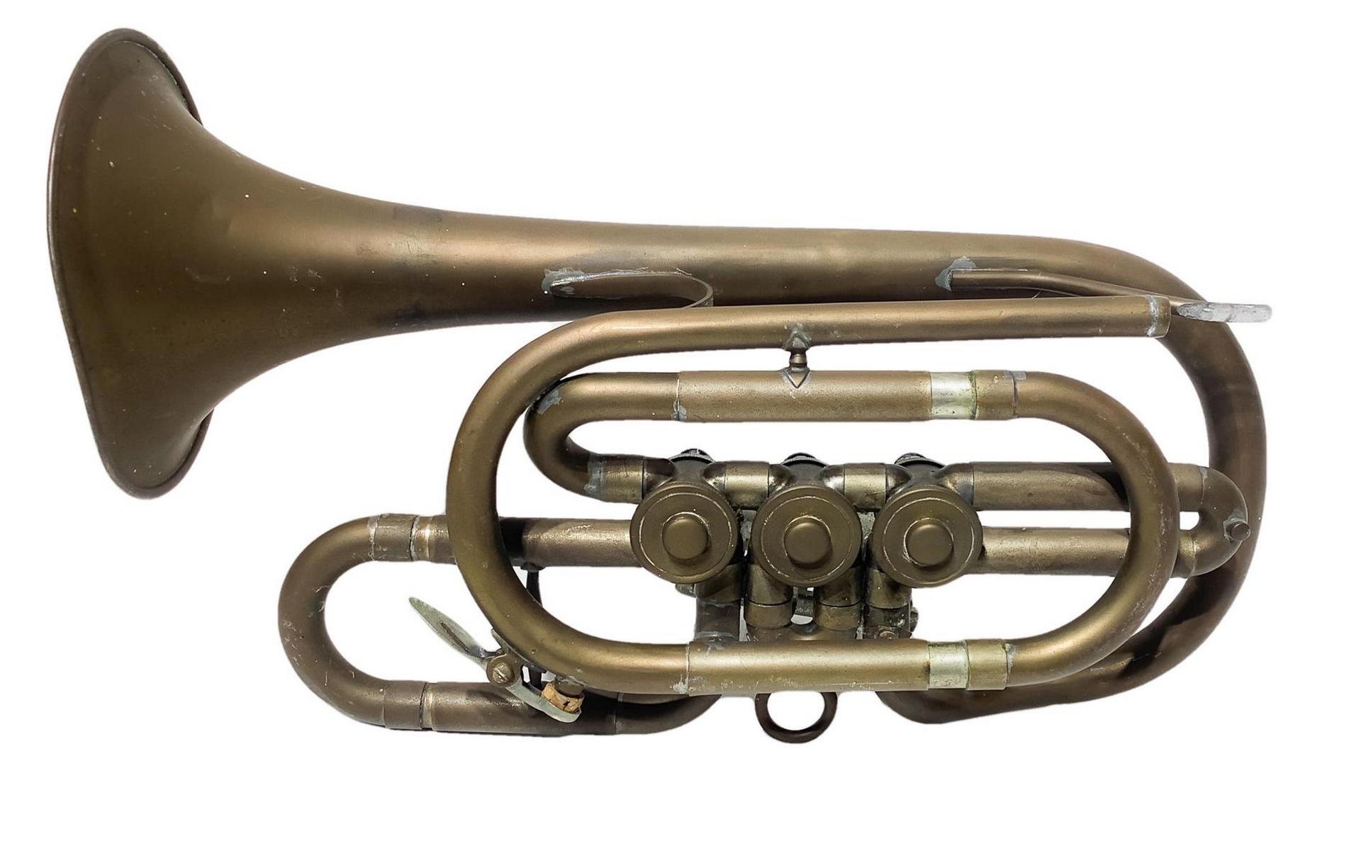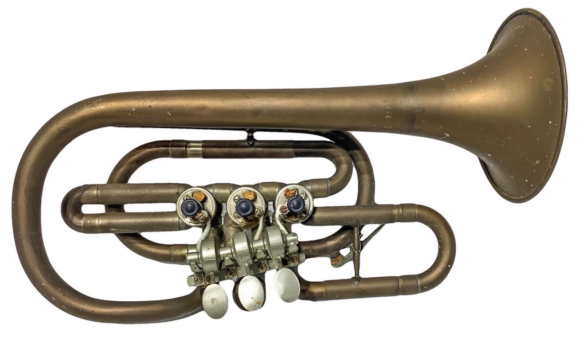 Antica tromba in ottone a tre pistoni. Da revisionare
