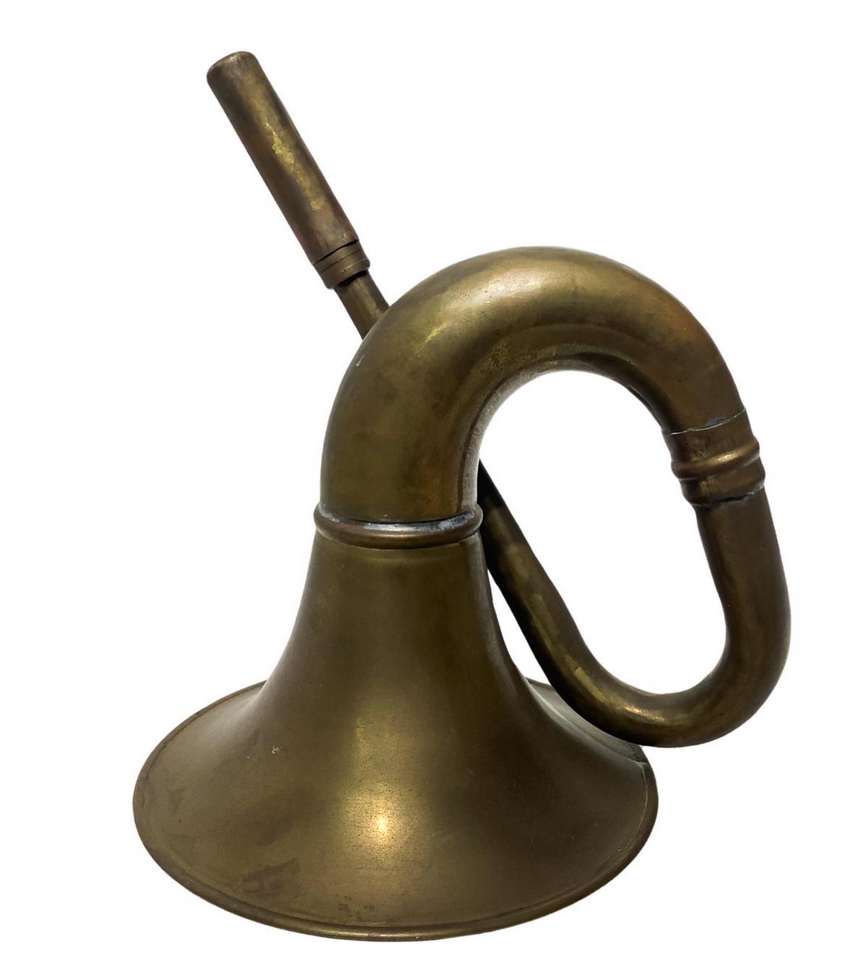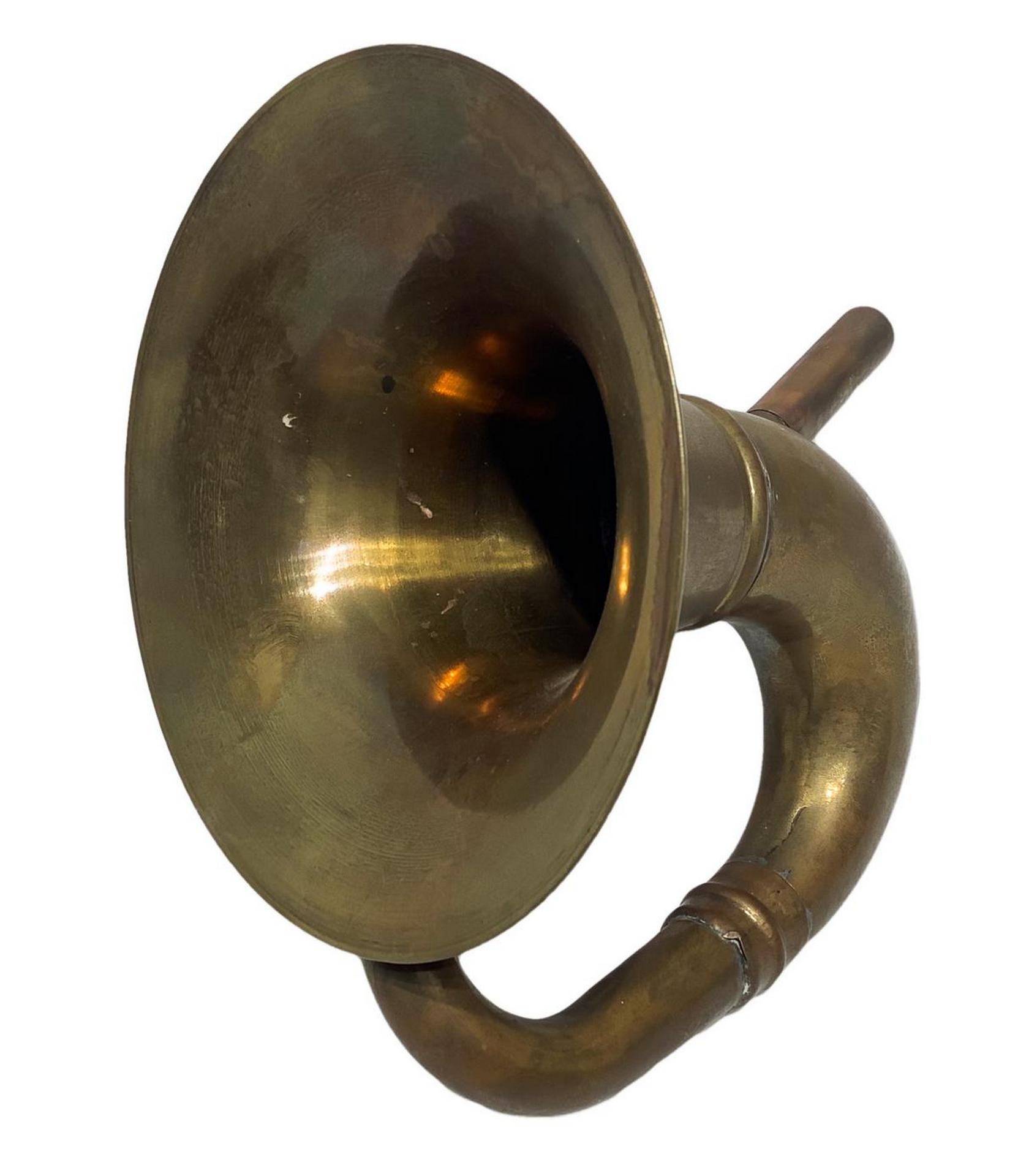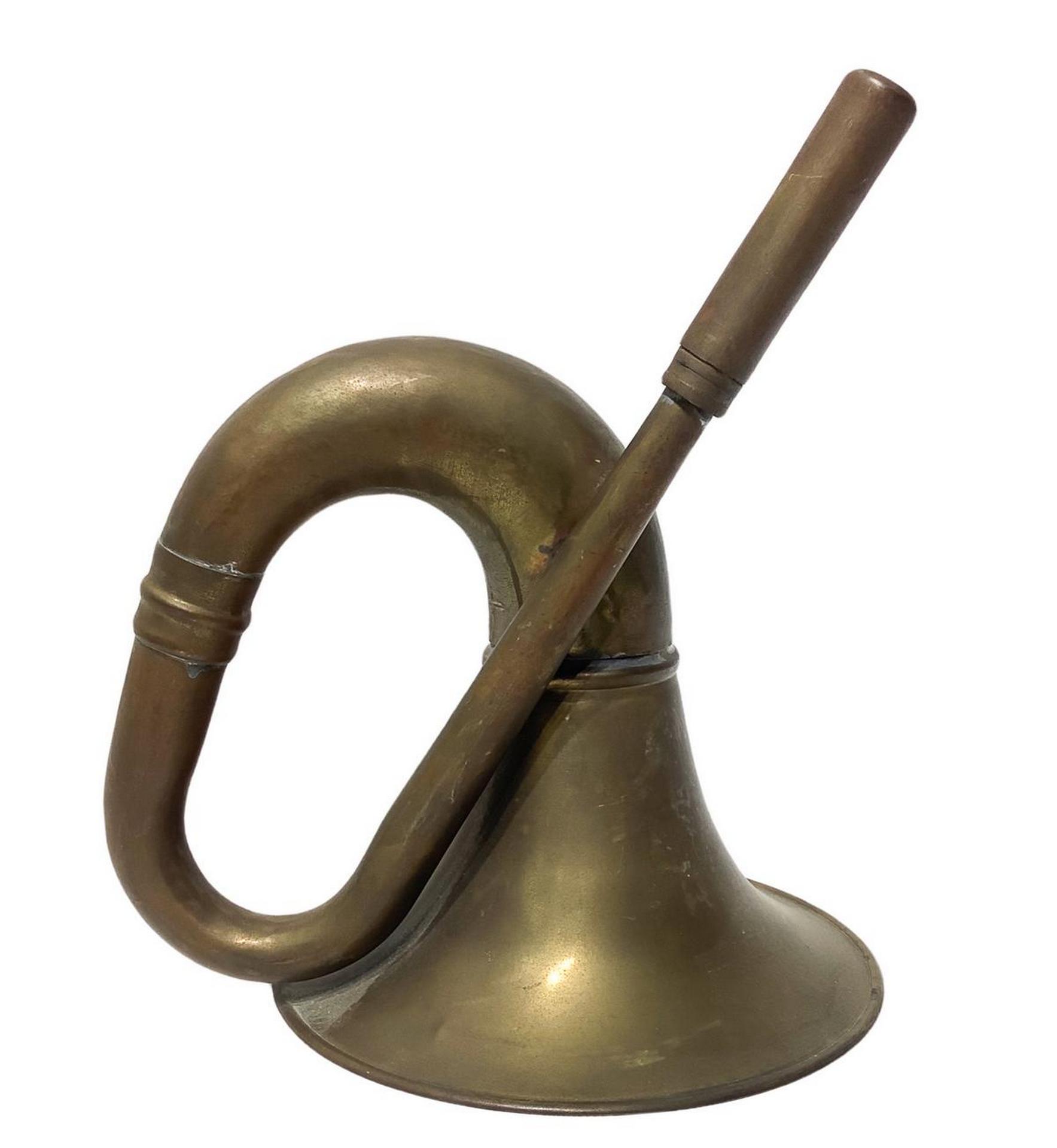 Cornetto antico in ottone. H cm 22, larghezza cm 20. Diametro cm 16. Da revisionare