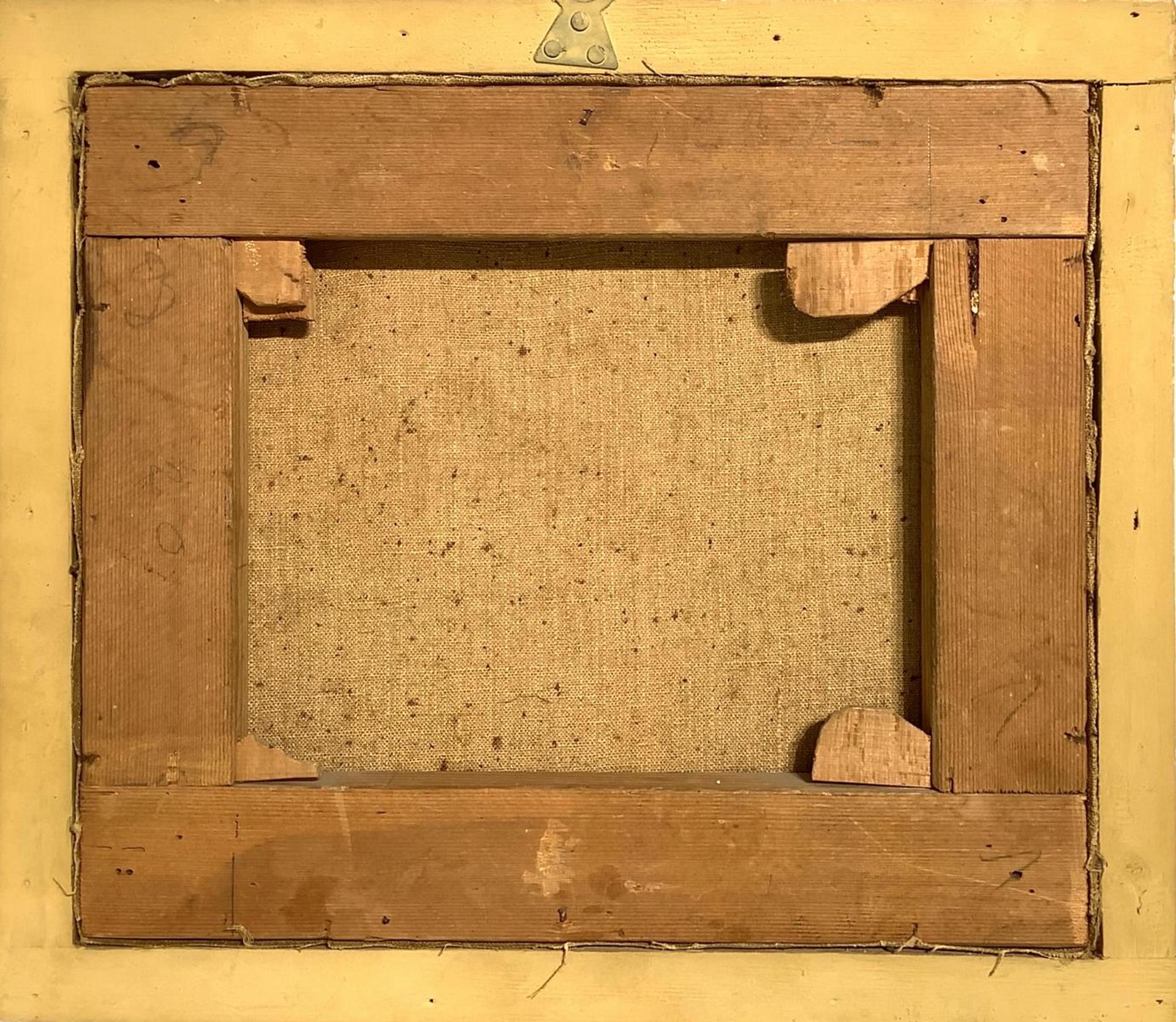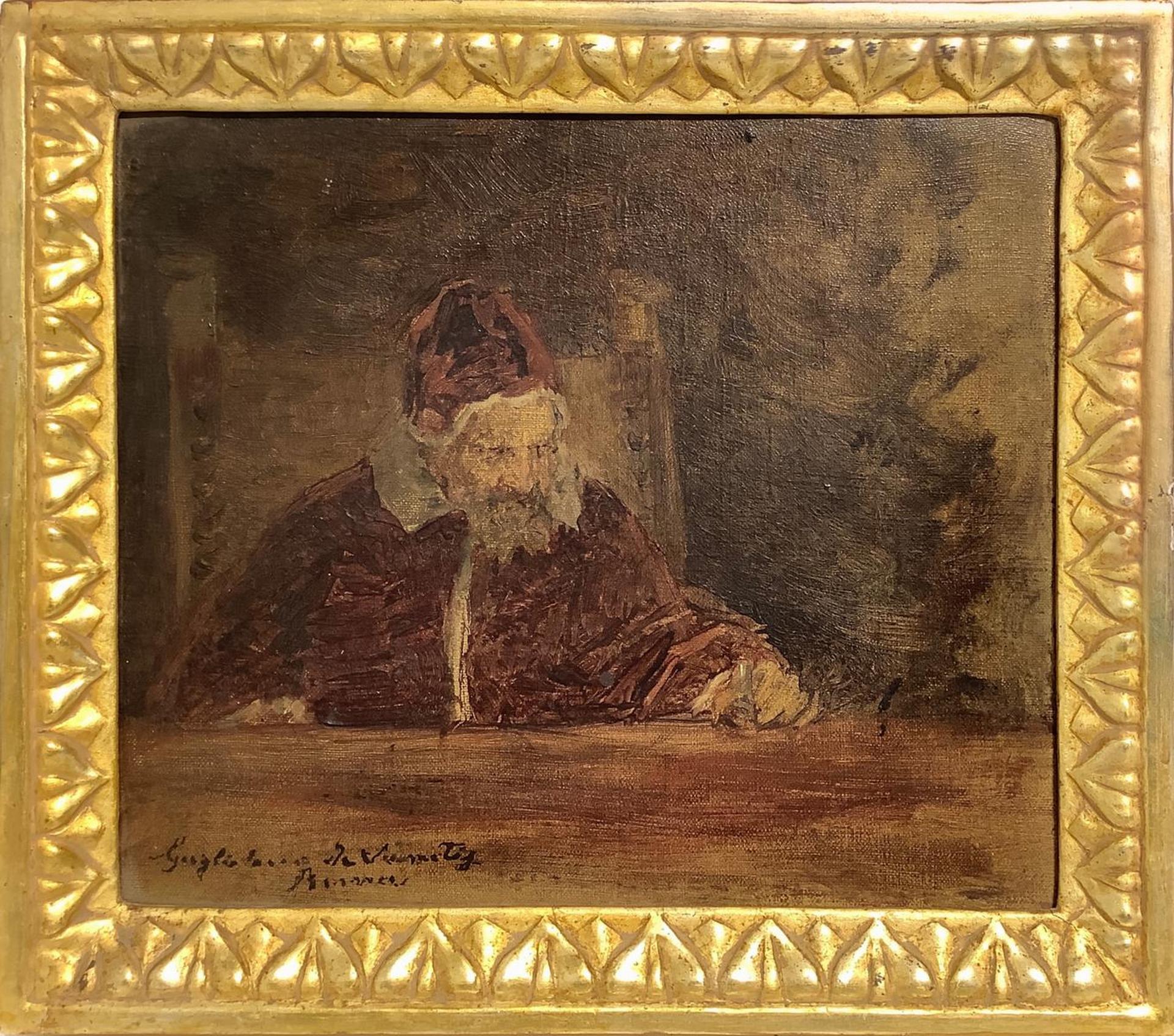 Dipinto ad olio su tela raffigurante personaggio religioso. Cm 20x23.
