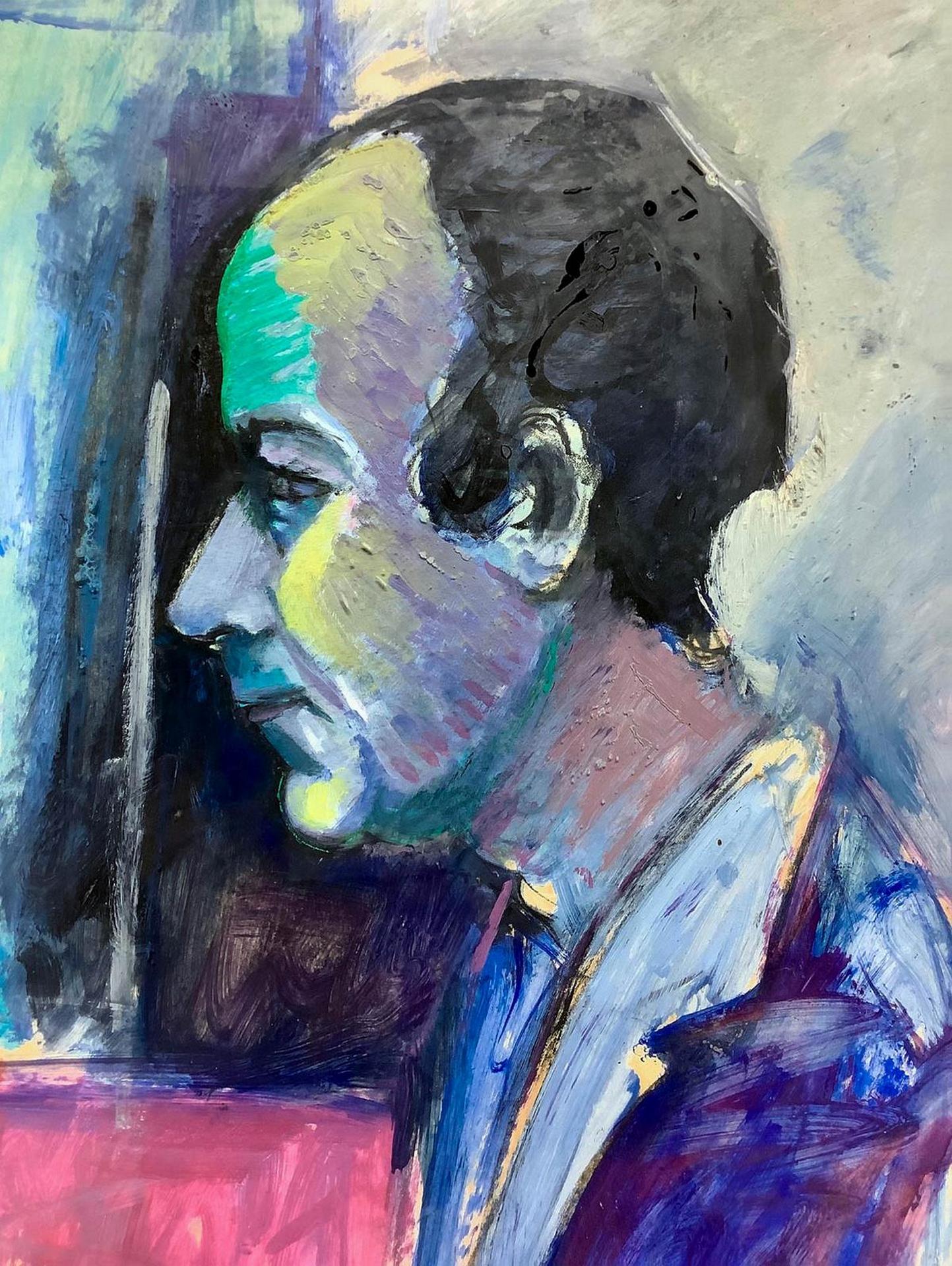 Dipinto ad olio su tela raffigurante profilo di personaggio, Angelo Nona...