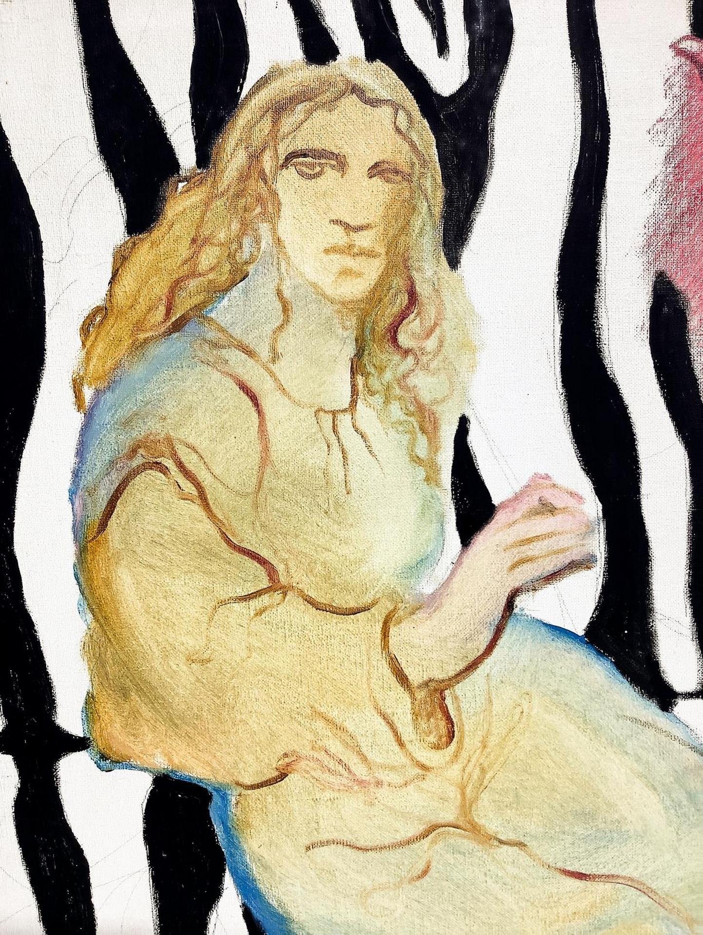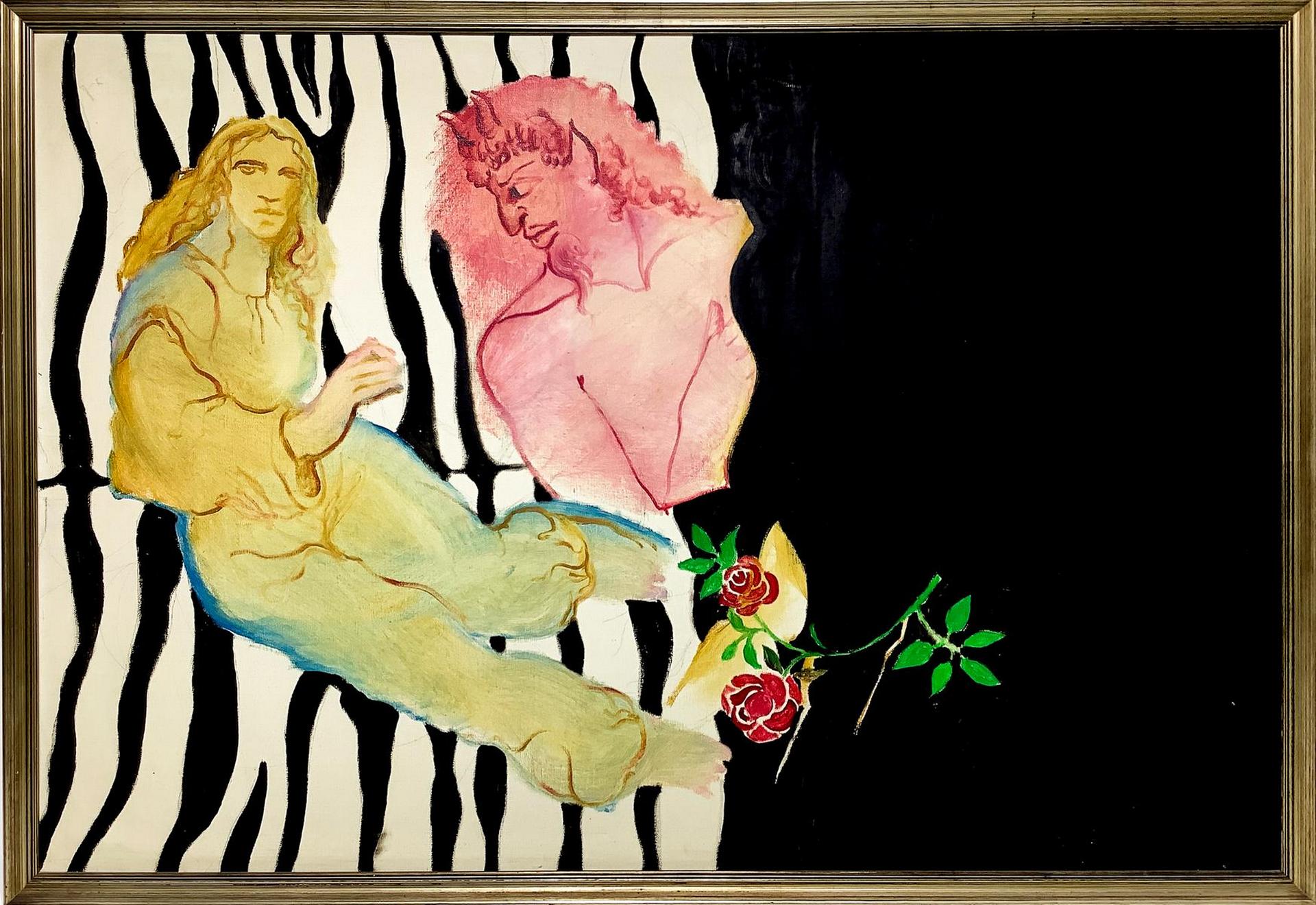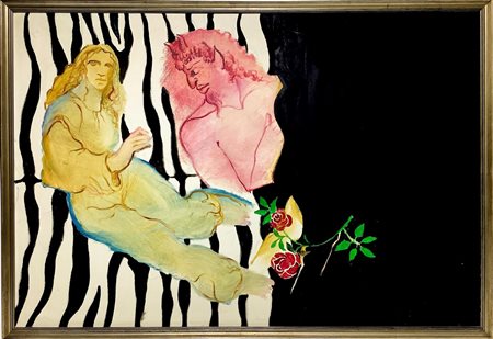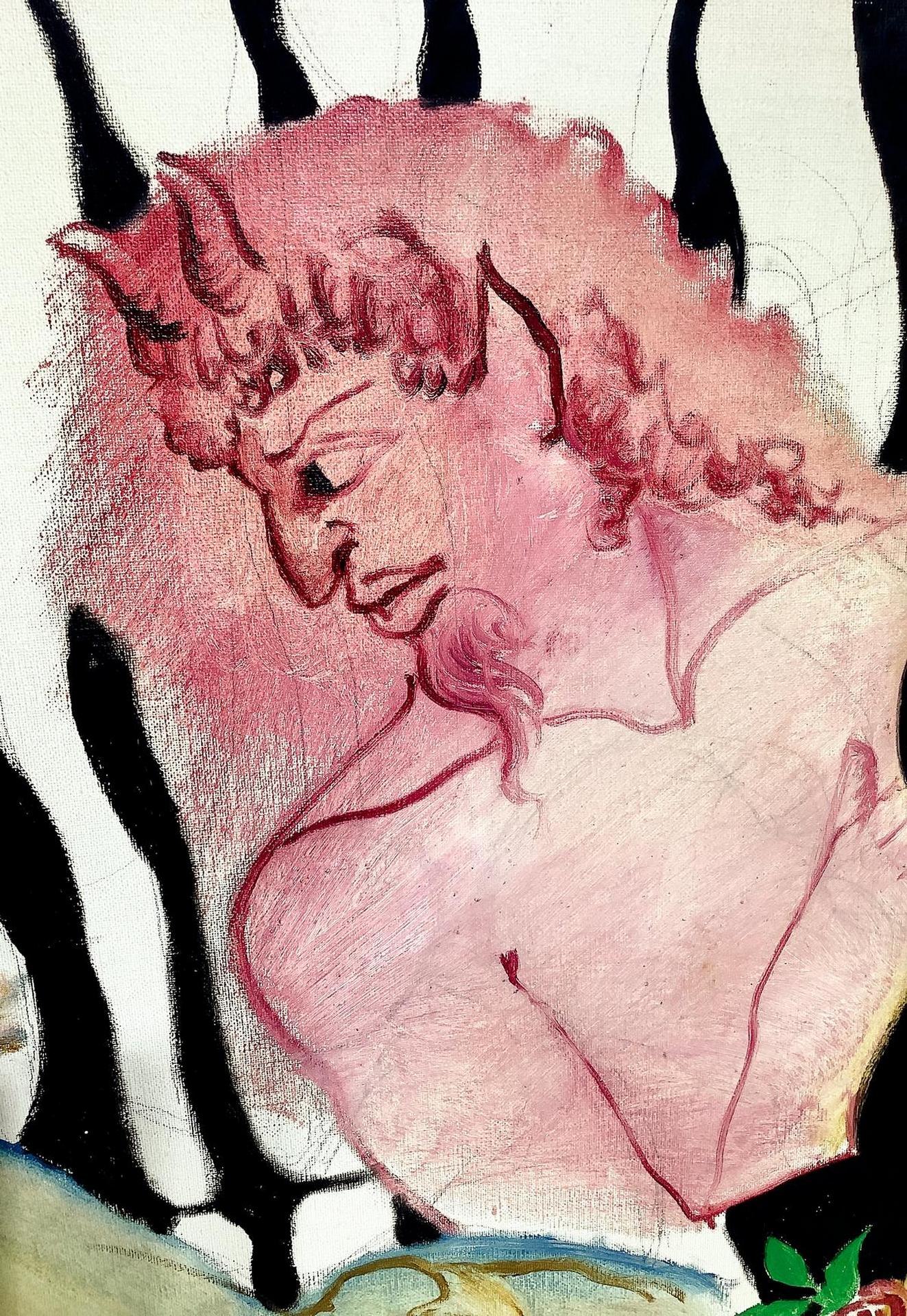 Dipinto Diavolo con Donna (Gitlan?). Cm 90x134. In cornice cm 96,5x140,5.