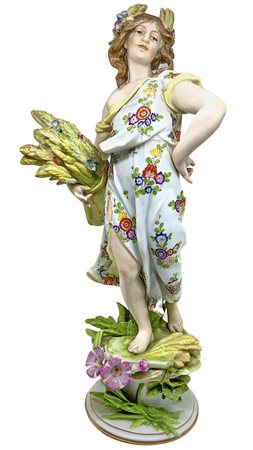 Statuetta in porcellana di Capodimonte raffigurante allegoria della primavera. H cm 33