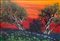 Dipinto ad olio su tela raffigurante paesaggio con alberi. Cm 53x80. Firmato...