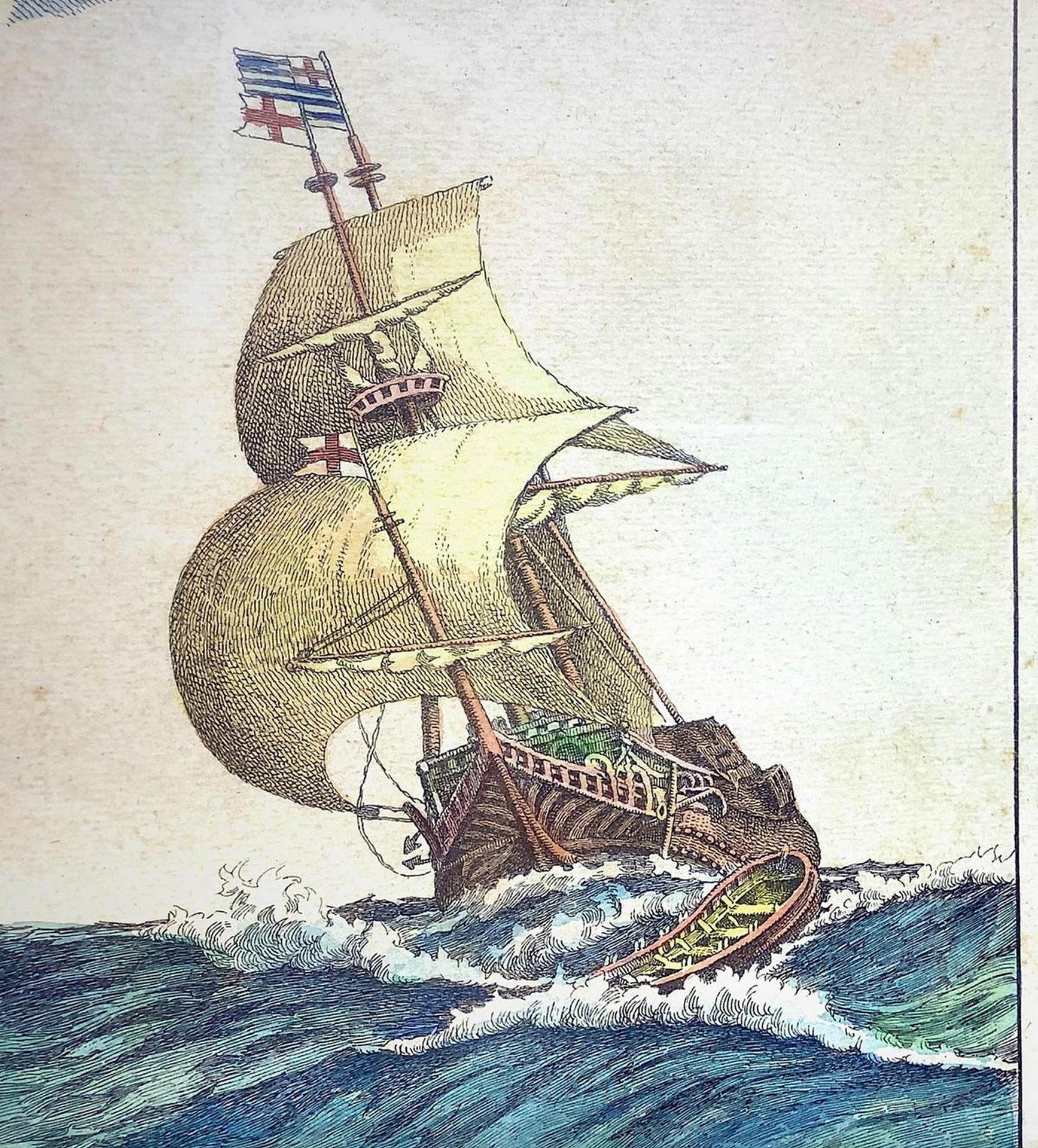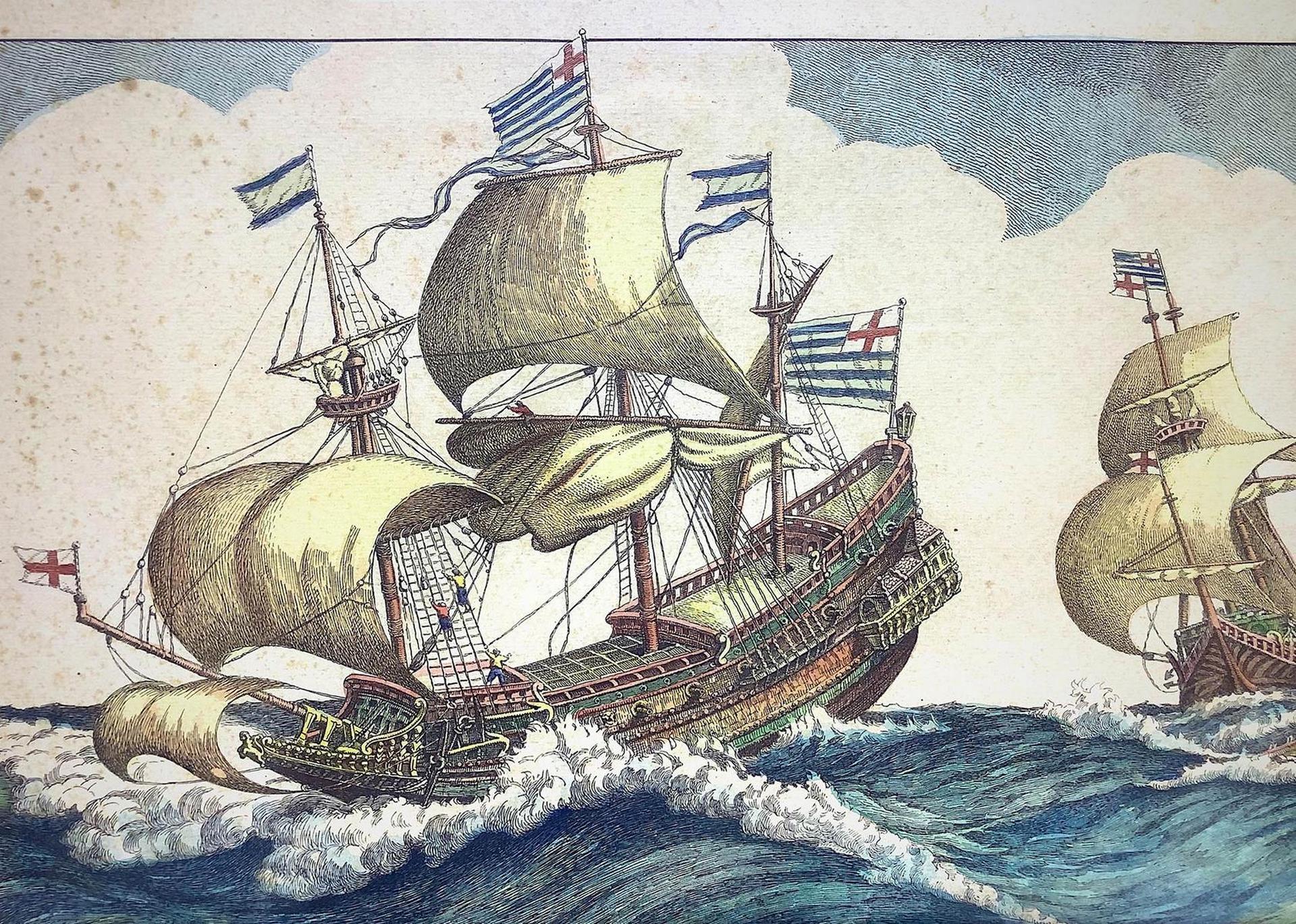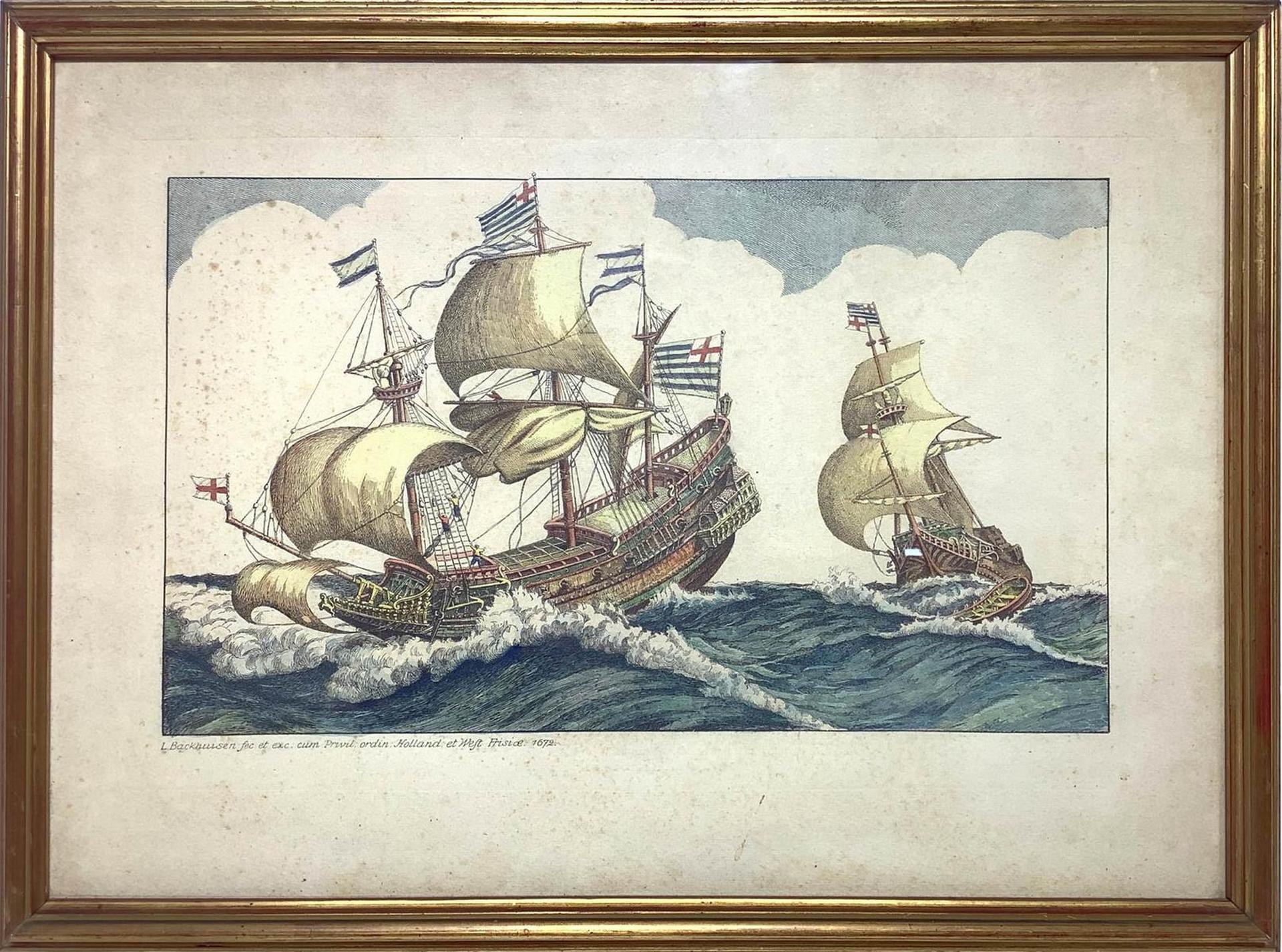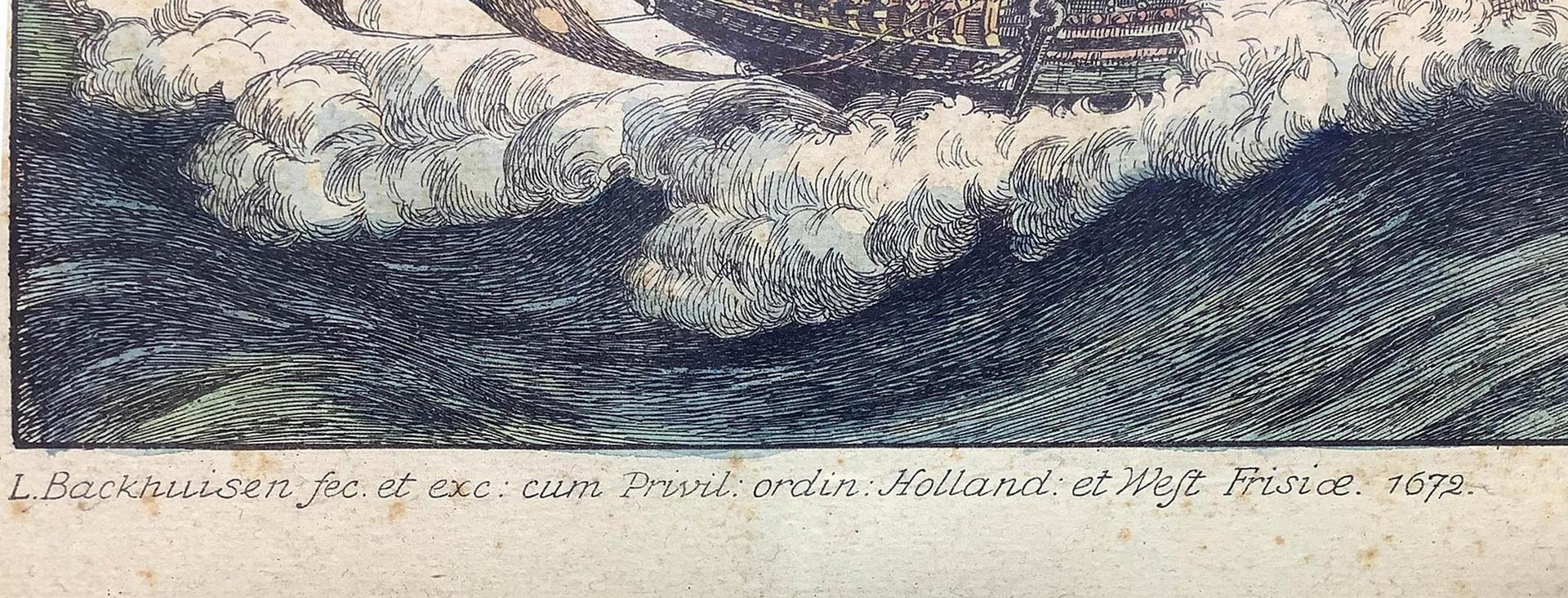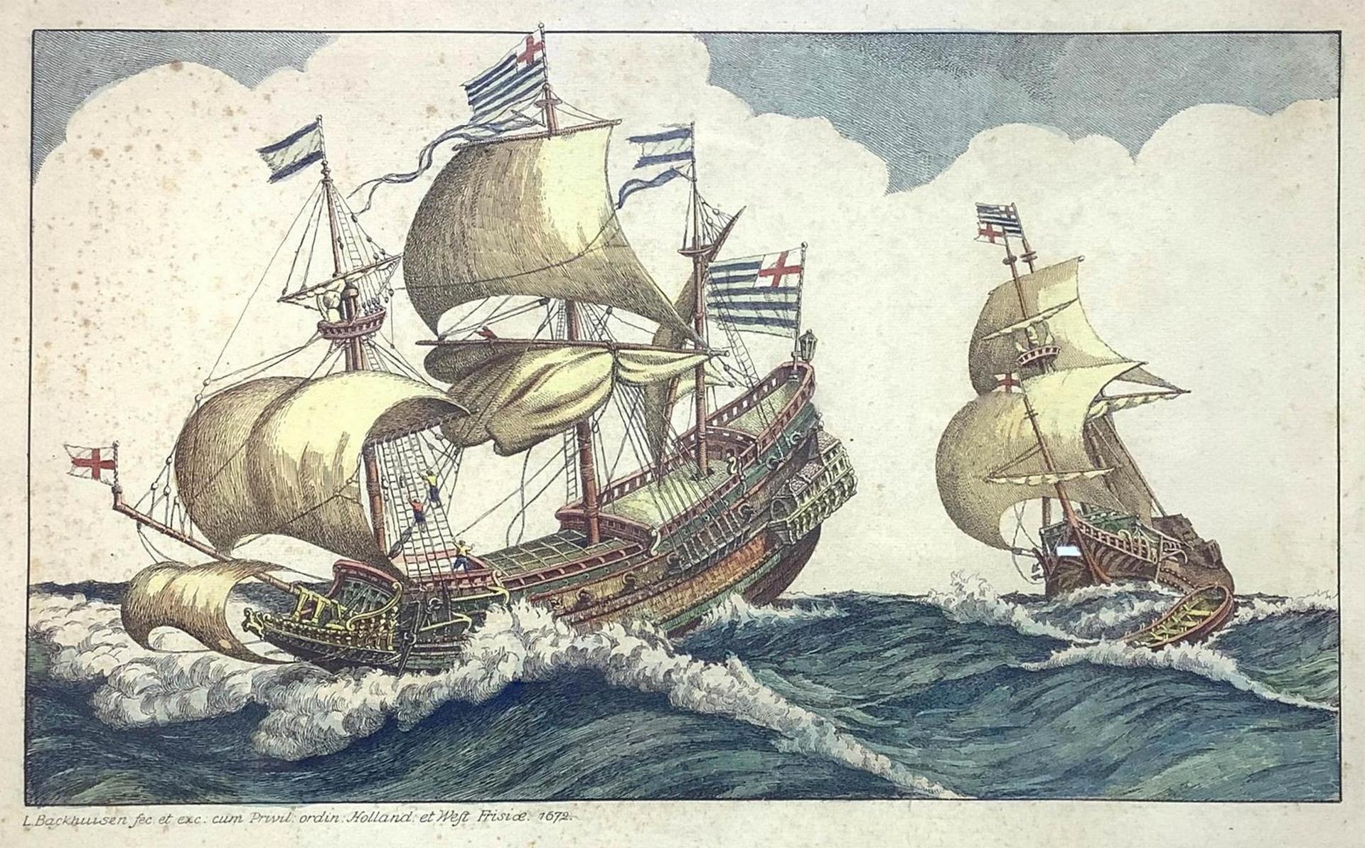 Incisione raffigurante velieri in mare “L. Backhuisen fec.et. exc.:cum Privil:ordin:Holland:et Weft Frisice.1672â€_x009d_. Mm 350x500