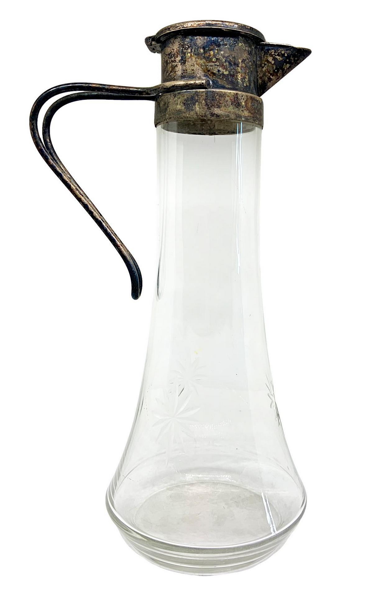 Caraffa in vetro e tappo in peltro. H cm 29,5