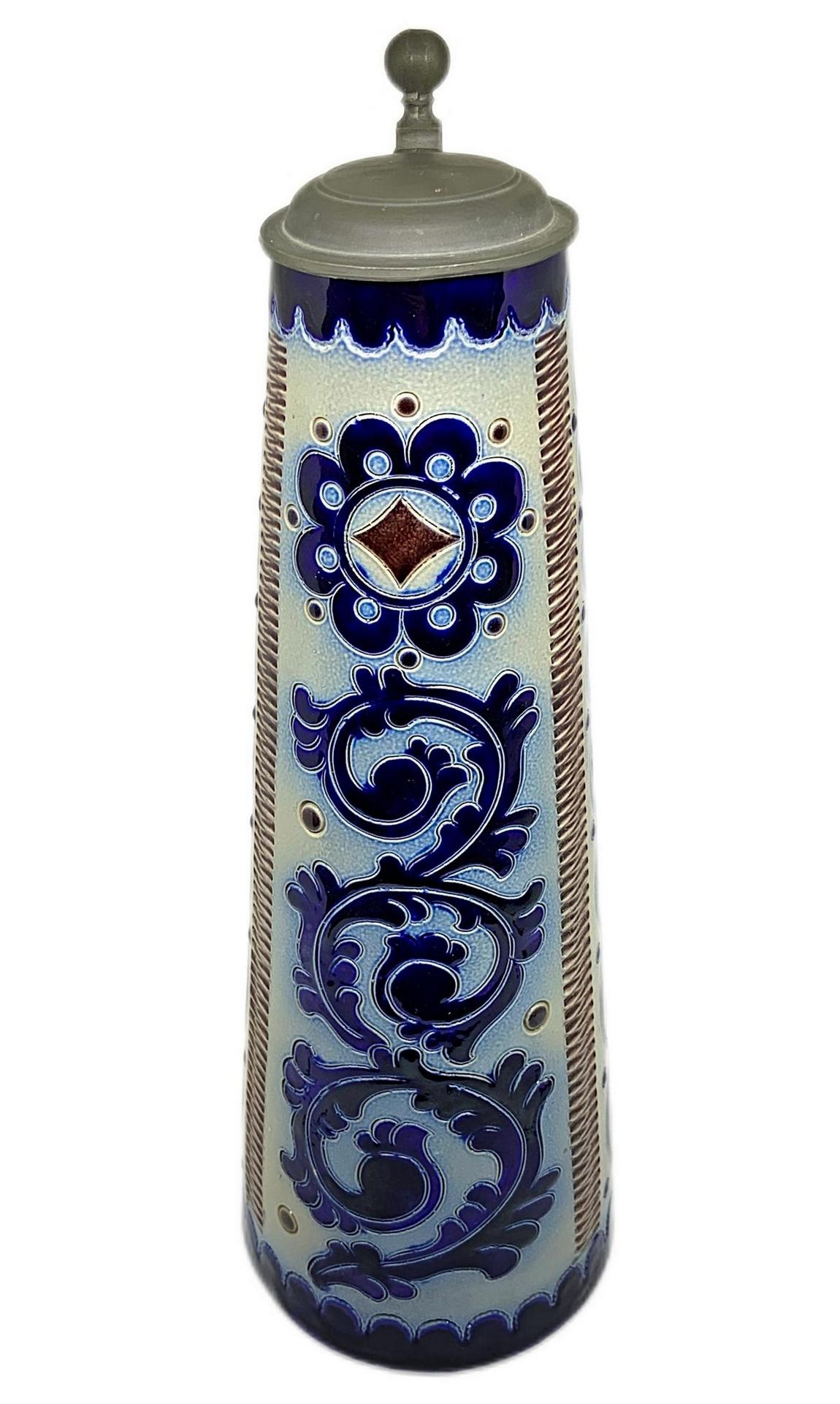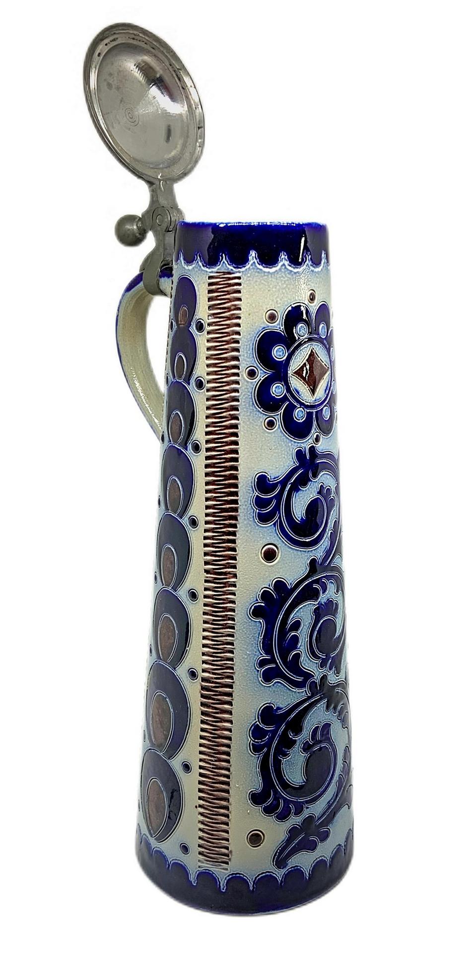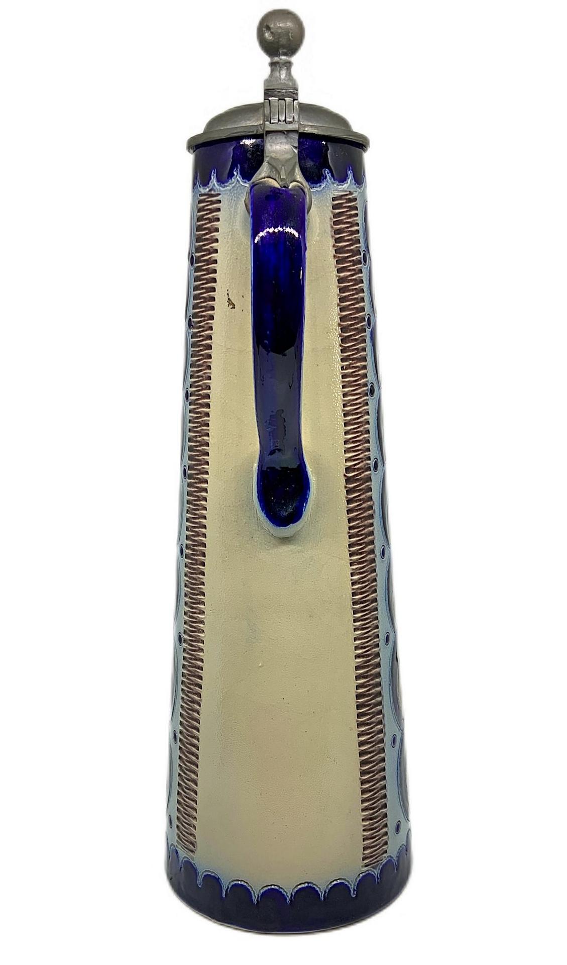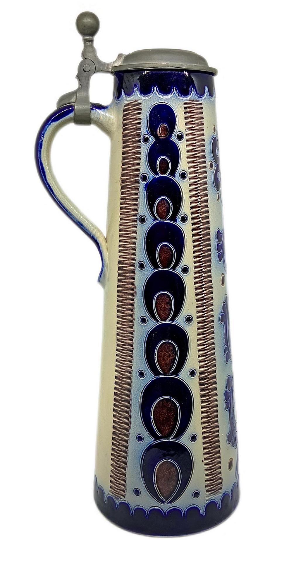 Caraffa in ceramica, rivestimento in vetrina, Germania, XX secolo. 1696/2. H cm 33, diametro max 10,5. Con garanzia