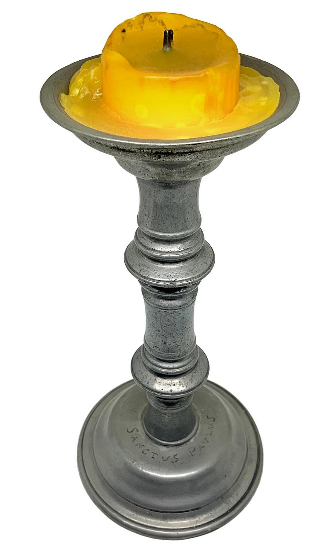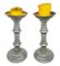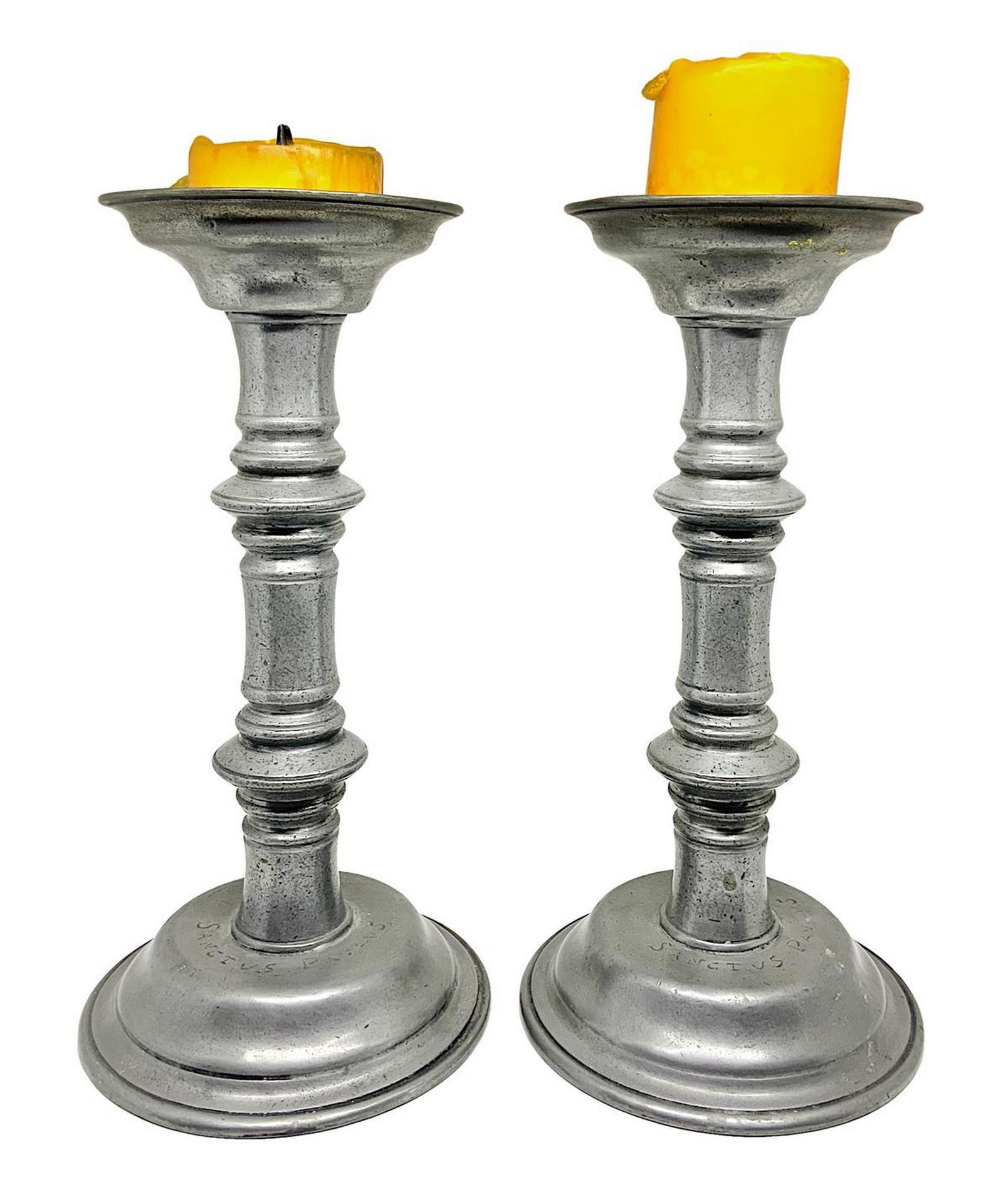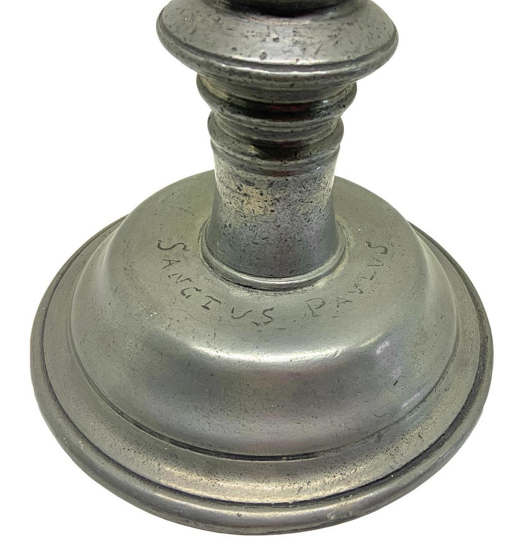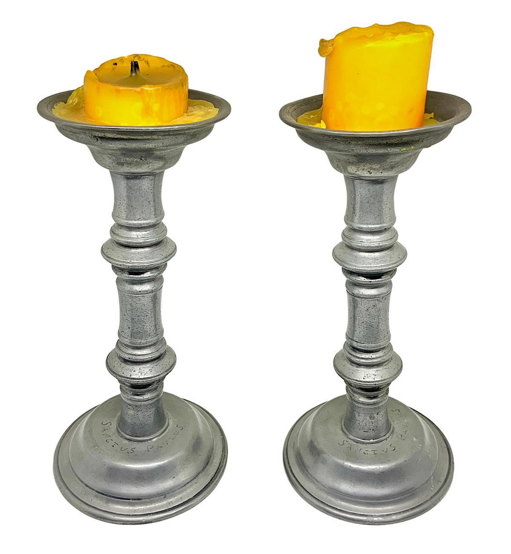 Coppia candelabri con scritta Sanctus Paulus. H cm 27,5