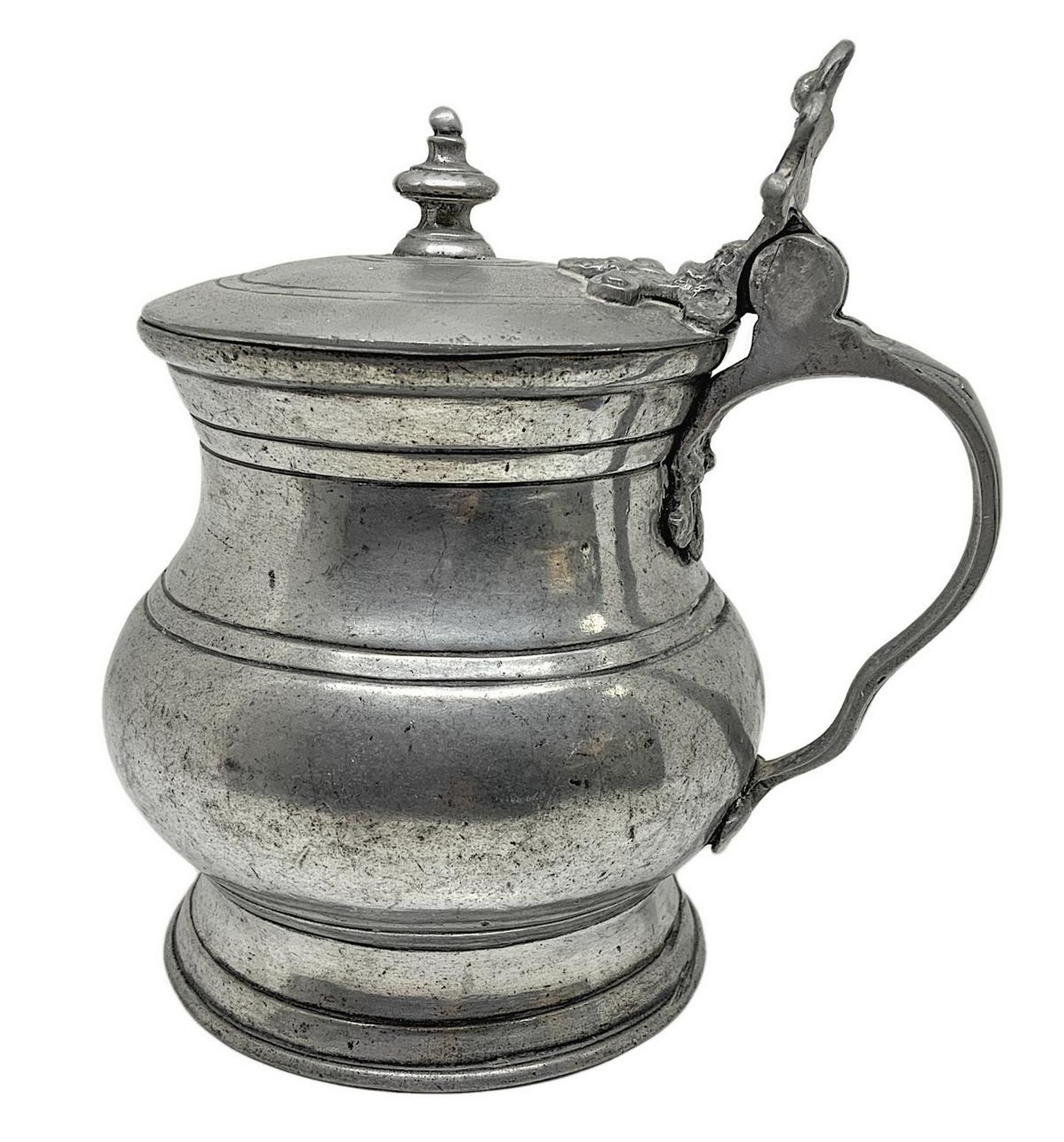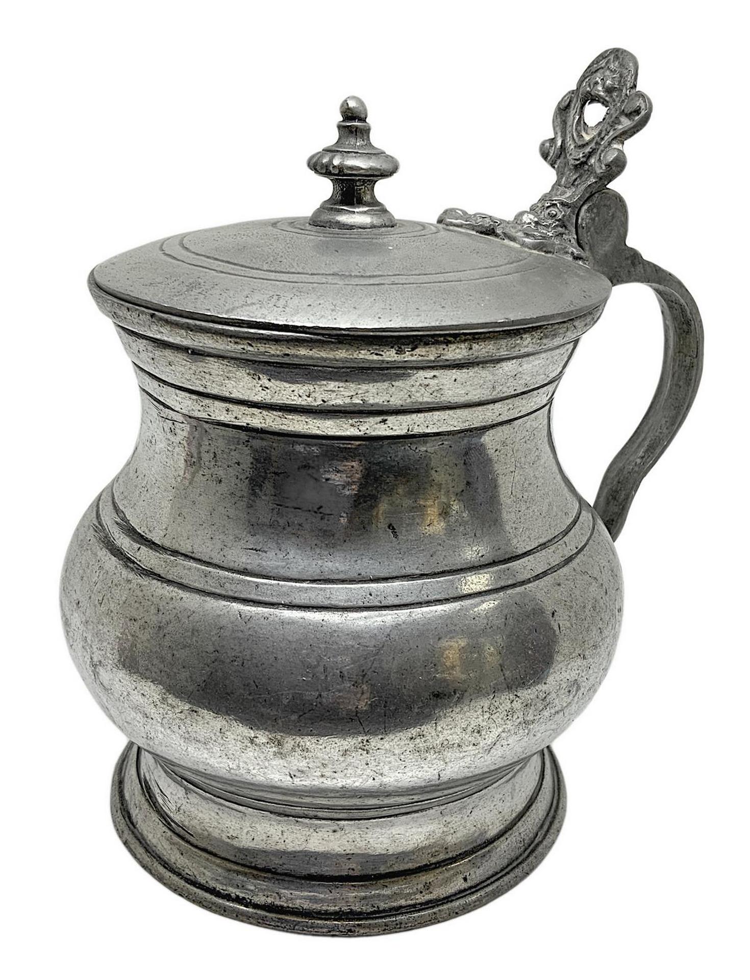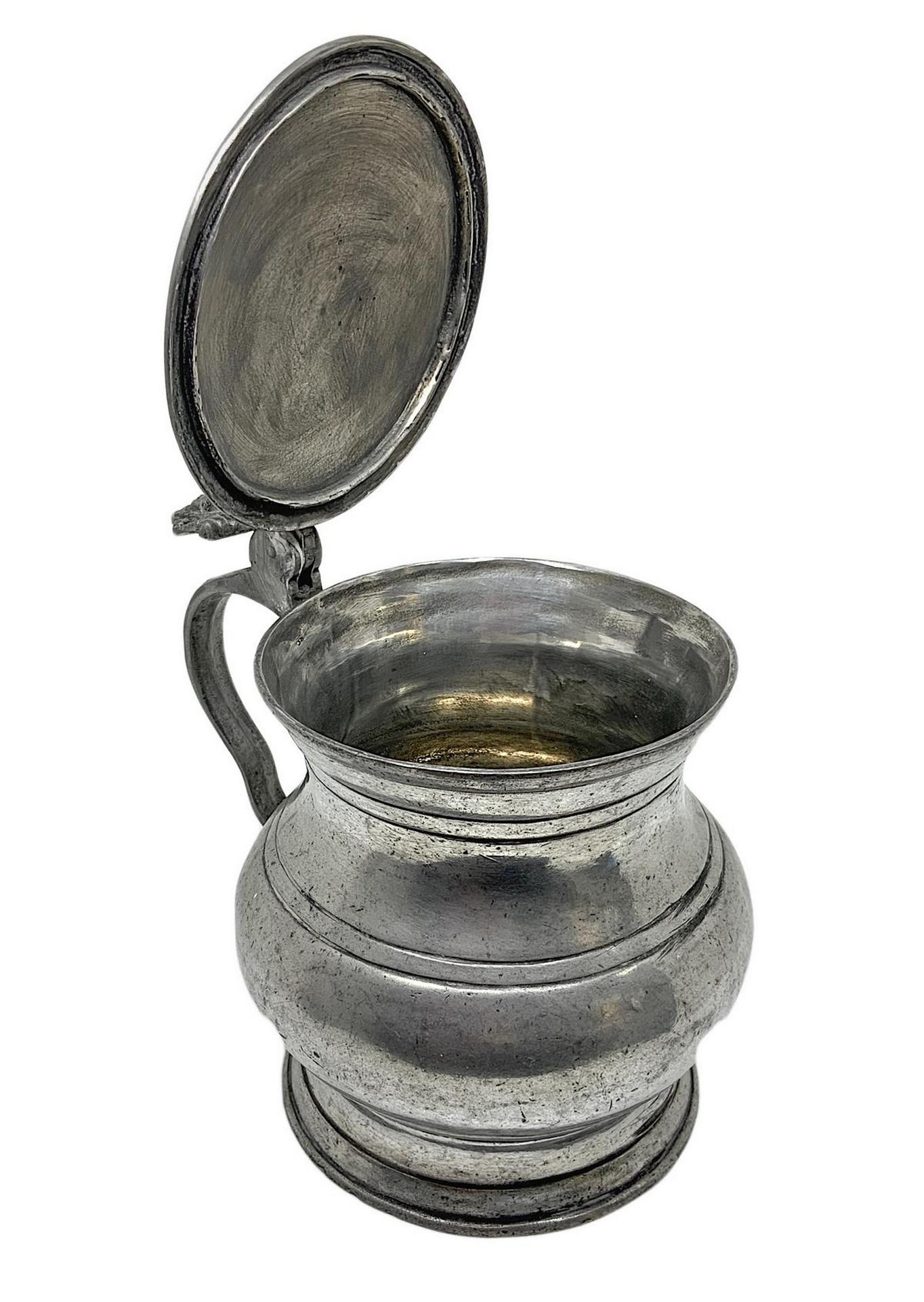 Lotto 522 | Borraccia in peltro con tappo con gancio rotondo 95, vari punzoni. H cm 19