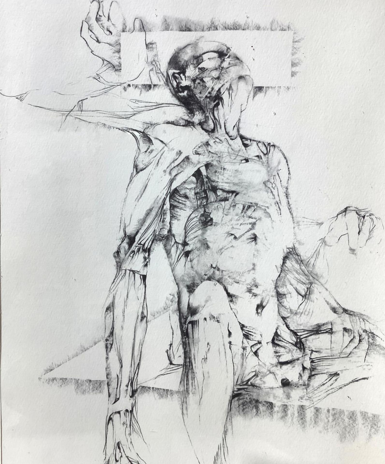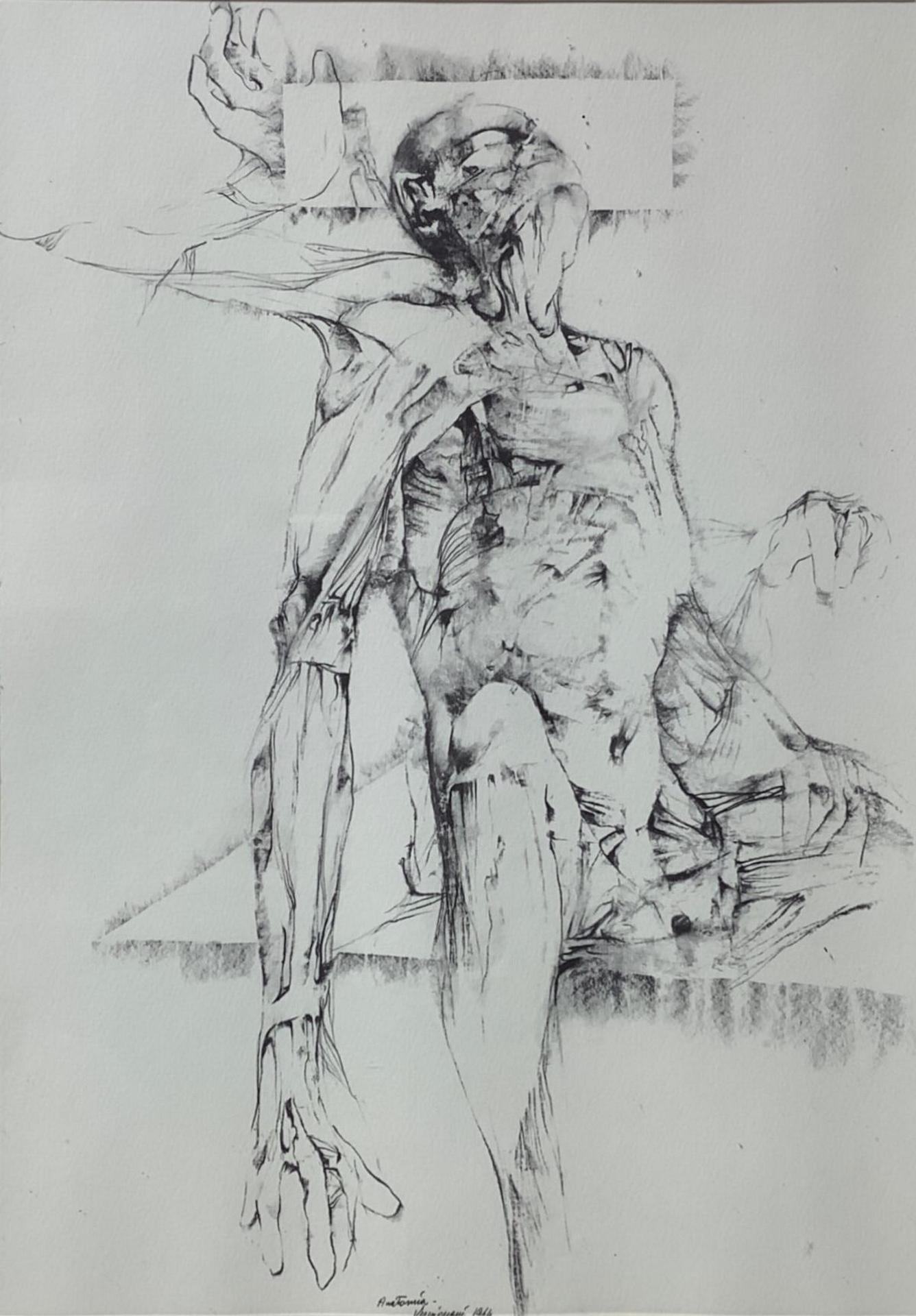 Stampa in bianco e nero “anatomiaâ€_x009d_, firmato in basso al centro Vespignani 1964. Renzo Vespignani ( Roma 1924-2001). Mm 355x240, in cornice cm 52x36