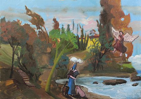 Ravaioli Gregorio Madonnina in riva al mare, 2000 olio su tela, cm 50x70 firmato, datato e intitolato al retro, pubblicato su catalogo Gregorio R. Freetime Club Divisione Arte Cesena